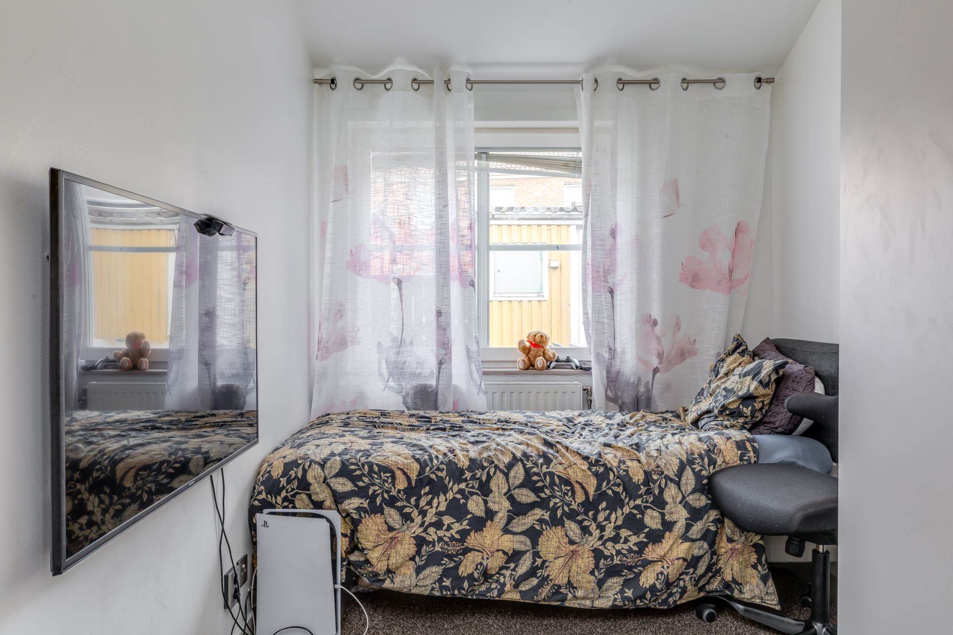 Yteffektivt rum som passar utmärkt som barnrum eller arbetsrum. Fönster för naturligt ljus och plats för säng samt förvaringsmöbel. Enkelt att inreda efter behov. Ligger praktiskt nära hall och badrum.