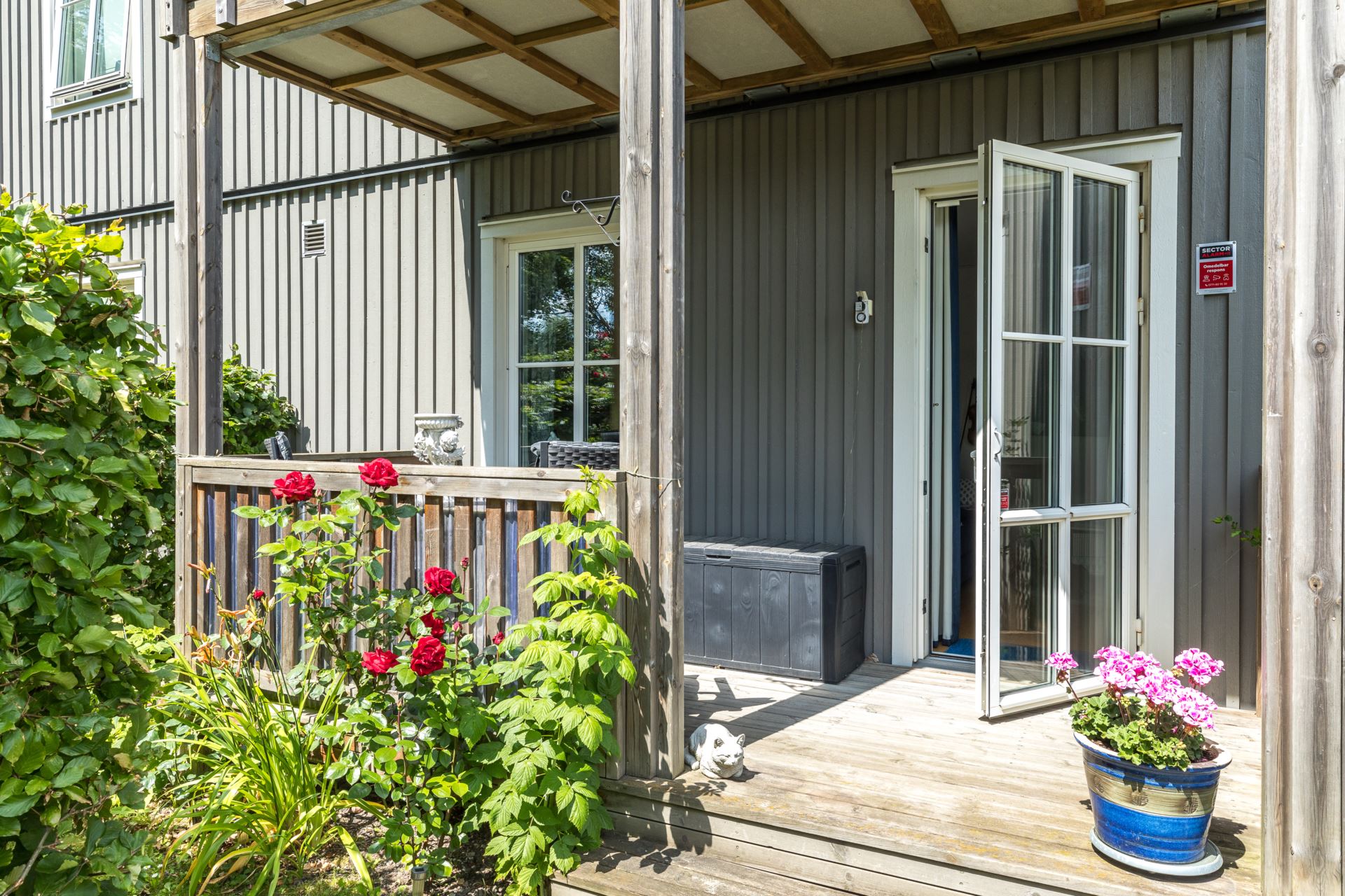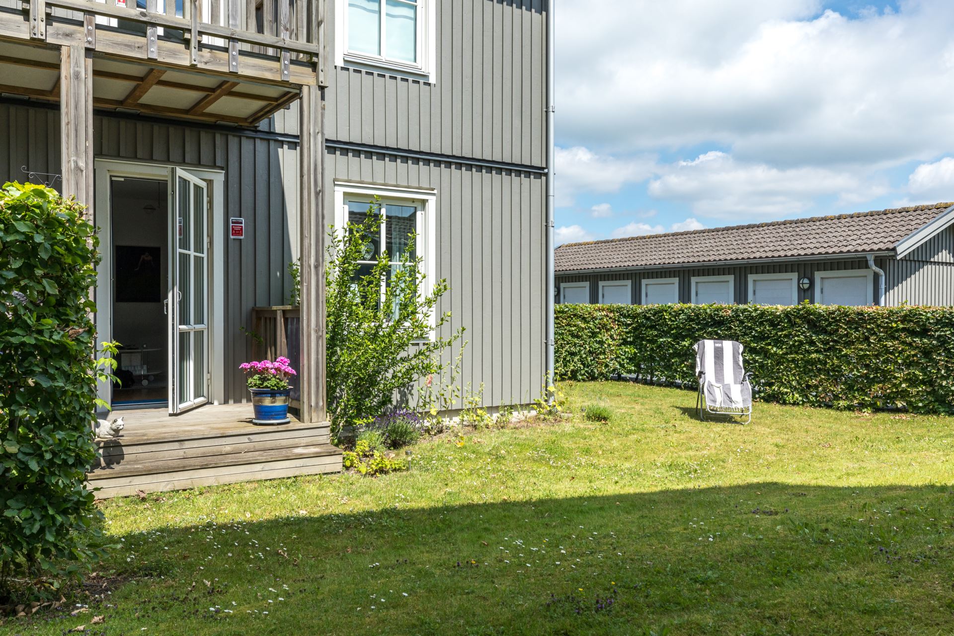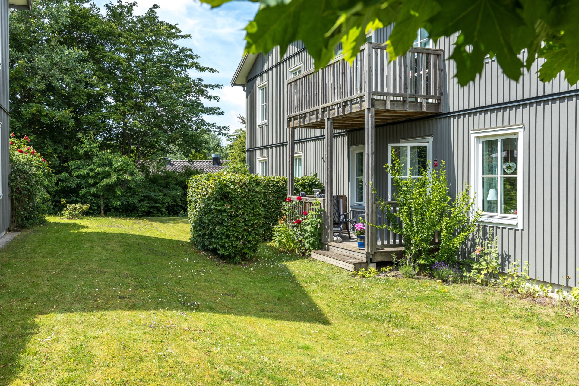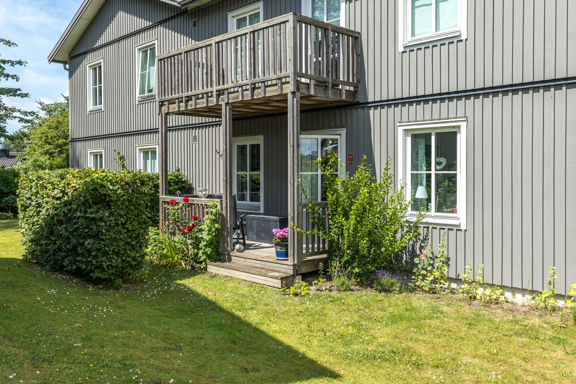 Härlig balkong i sydostläge med direktaccess till trädgård.