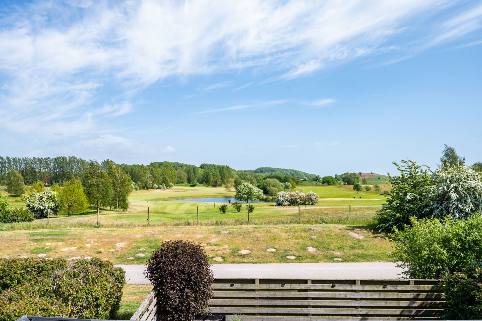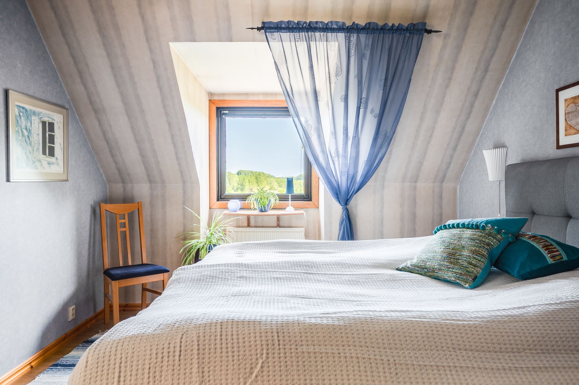 Det andra sovrummet har också utsikt mot trädgård och golfbana och passar utmärkt som barnrum, kontor eller gästrum. Rummet är lättmöblerat och har en behaglig atmosfär tack vare det naturnära läget.