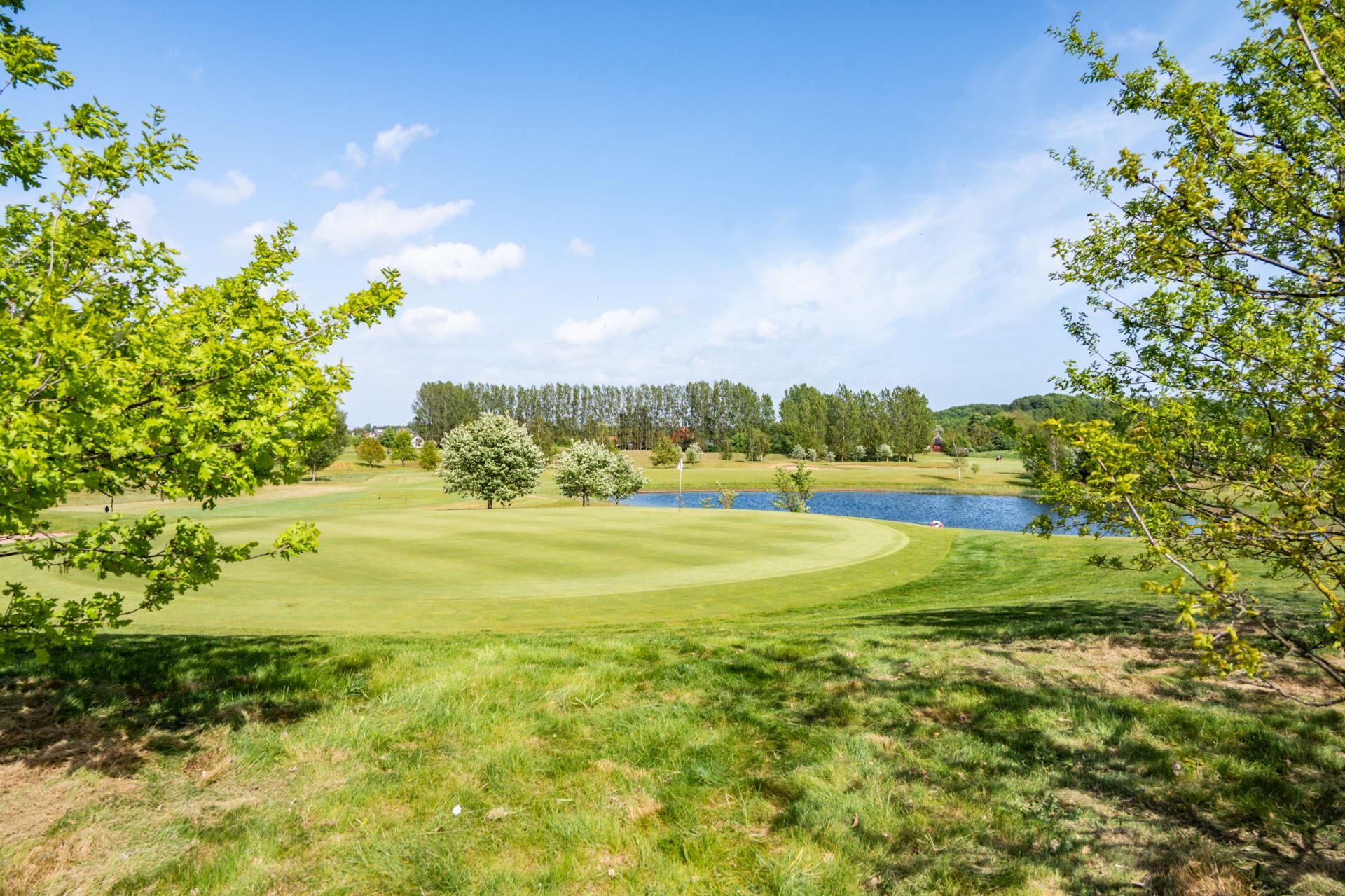 Rymligt sovrum med fönster som vetter mot trädgården och den rogivande utsikten över golfbanan. Här finns gott om plats för dubbelsäng och förvaring. Ett lugnt och privat rum som ger en avslappnande start och avslut på dagen.