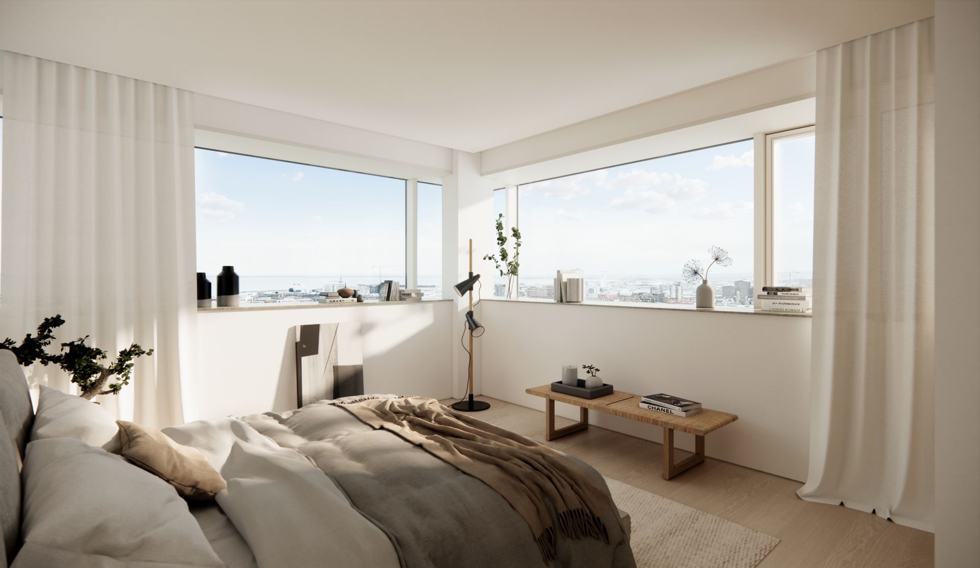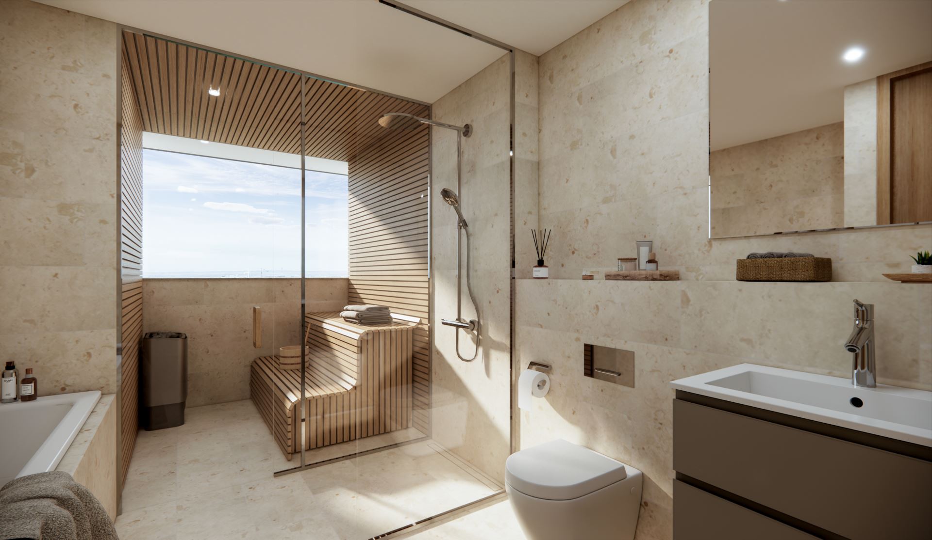 Bostäderna erbjuder dessutom en synnerligen imponerande utsikt över både stadens silhuett och det glittrande havet. Här kan du njuta av solnedgången varje kväll från din egen terrass eller från de stora