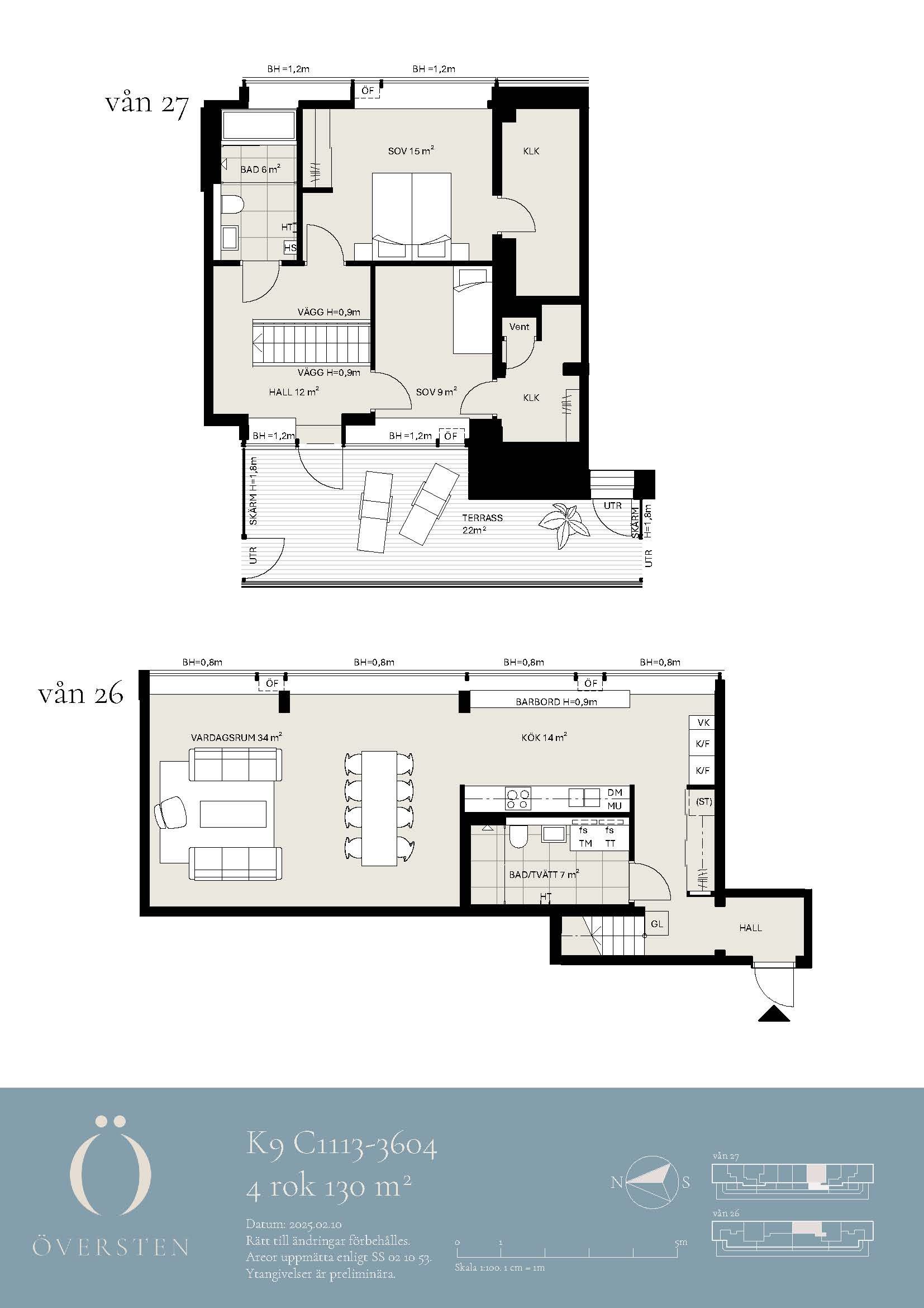 plats både för sociala tillfällen och avkoppling. Nedre planet är placerat på husets gavel med fönster i tre väderstreck. Ett platsbyggt barbord vetter mot en magnifik utsikt och för att göra vardagen ännu smidigare finns ett välutrustat badrum i helkaklat utförande, komplett med både tvättmaskin och torktumlare. På övre plan fortsätter finesserna med ytterligare ett helkaklat badrum, ett allrum/hall som kan anpassas efter dina behov och två rymliga sovrum. Varje sovrum är utrustat med antingen garderober, klädkammare eller ett dressingroom, vilket garanterar att du har gott om förvaringsutrymme. Lägenheten erbjuder dessutom tillgång till privata takterrass med