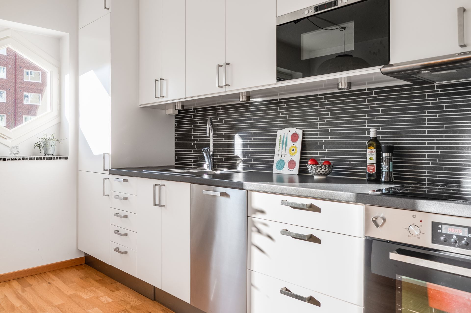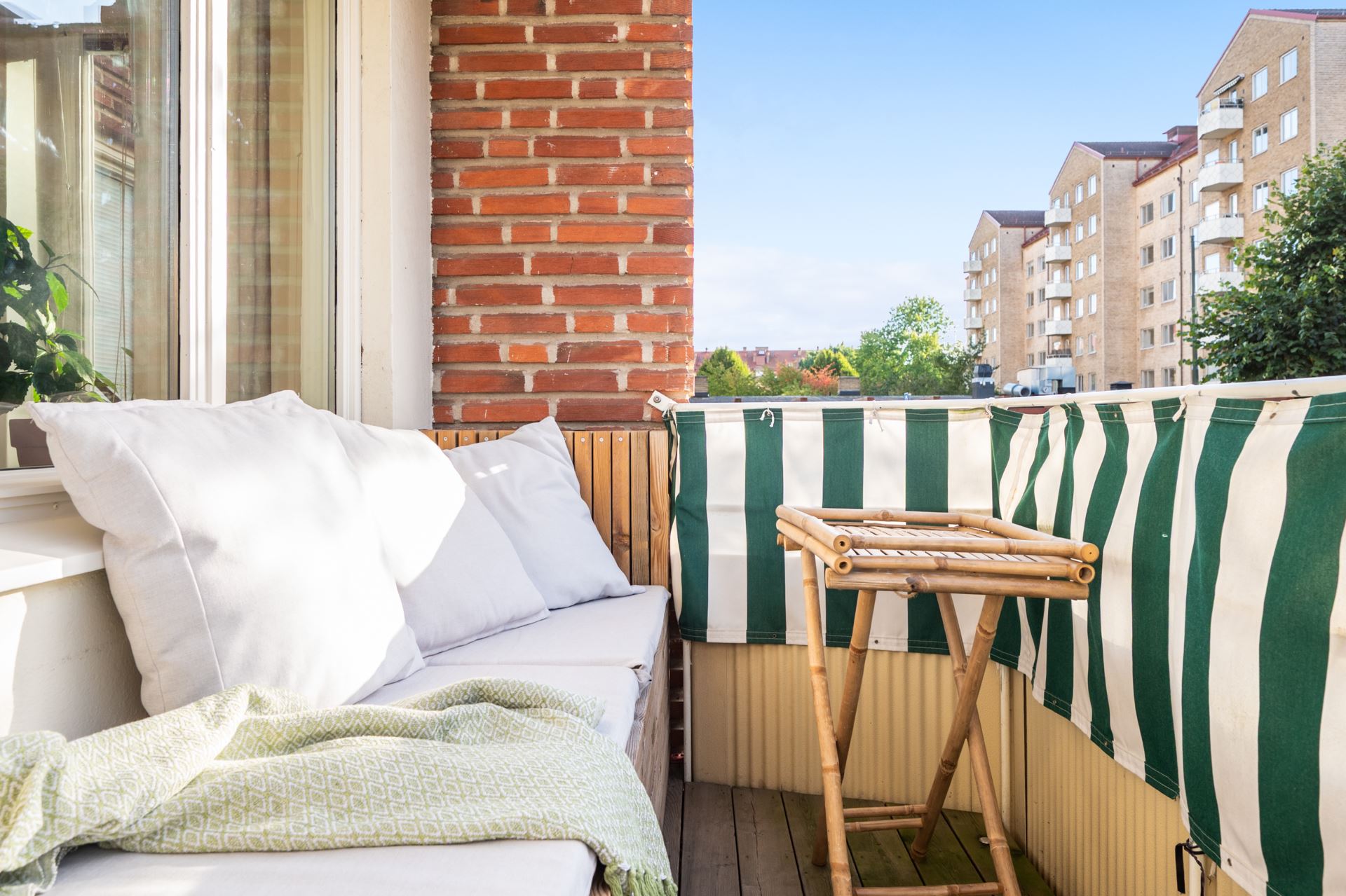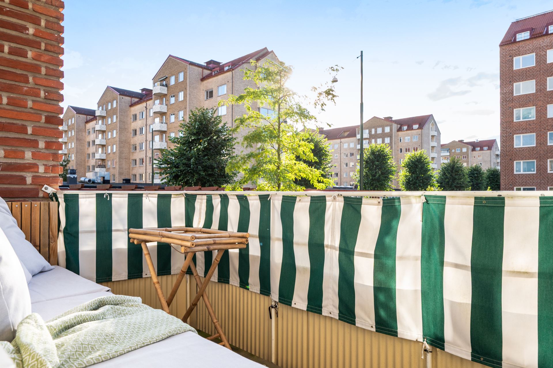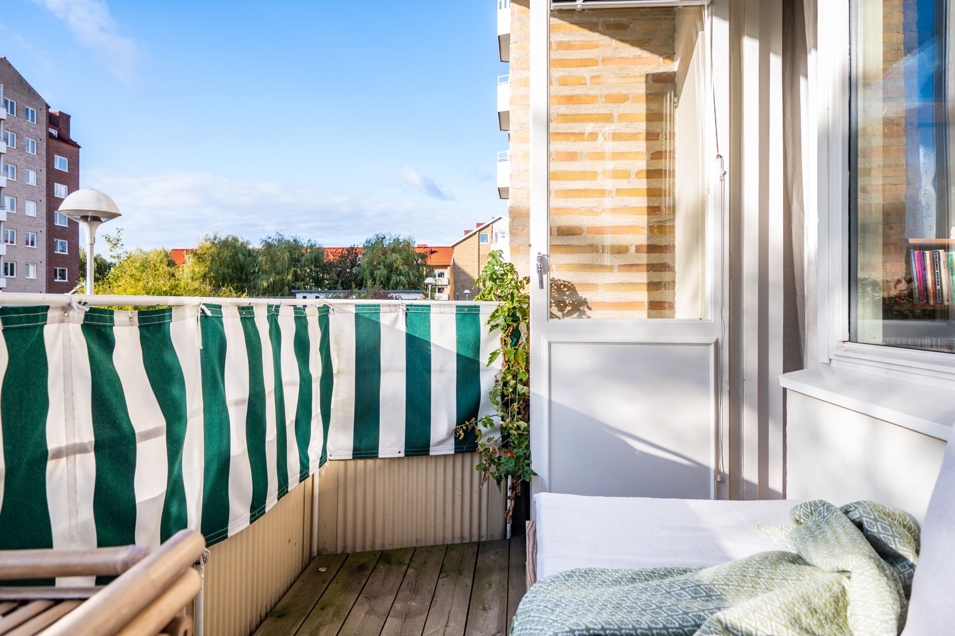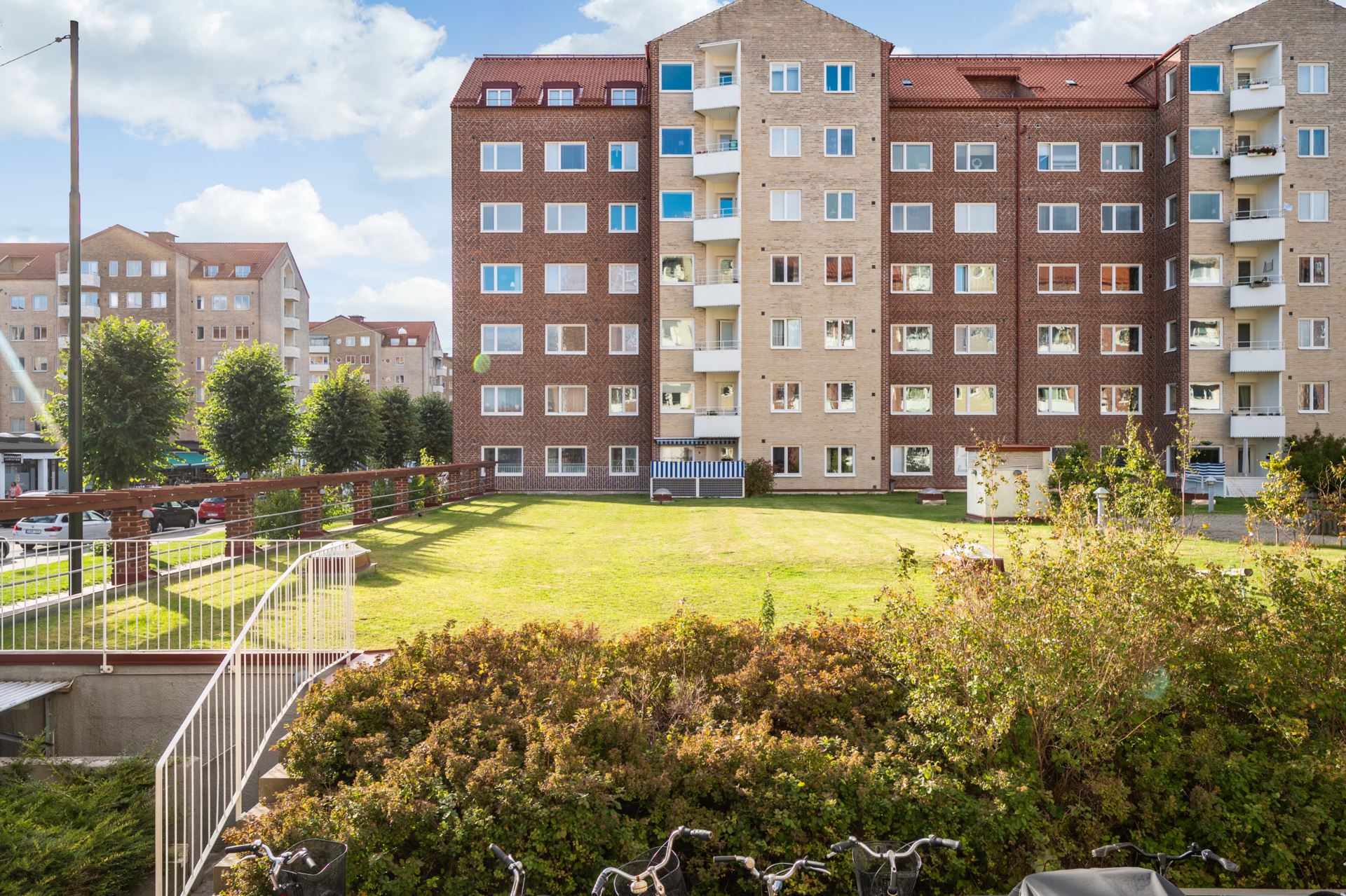 Enhetligt parkettgolv, målade väggar, helkaklat badrum, snyggt kök samt balkong i västerläge med eftermiddags - och kvällssol. Detta är några attribut som präglar detta trivsamma hem med väldisponerade kvadratmeter. Perfekt beläget på husets gavel som skapar optimalt ljusflöde och en hög halvtrappa upp som skyddar mot insyn från föreningens trevliga innergård. Lägg till en välmående bostadsrättsförening, utmärkta kommunikationsmöjligheter samt närservice. Populärt område omgivet av gröna parker, affärer och inte minst gångavstånd til havet. Missa inte chansen!