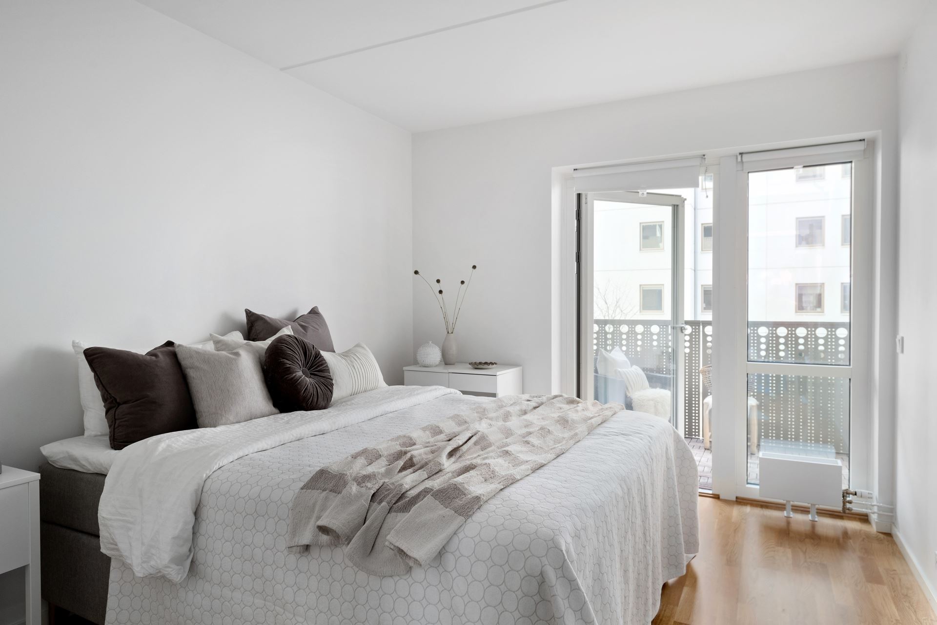Lägenheten erbjuder tre sovrum i bra storlekar och nås via hallen som är lugnt belägna mot föreningens gårdssida. Samtliga sovrum har goda förvaringsmöjligheter och ger utrymme för säng, sängbord och möblering efter önskemål. Från master-bedroom nås lägenhetens rymliga balkong. Balkongen är en förlängning av våningen ut i det fria. Ett underbart extrarum om sommaren där frukosten, fördrinken eller middagen kan intas.