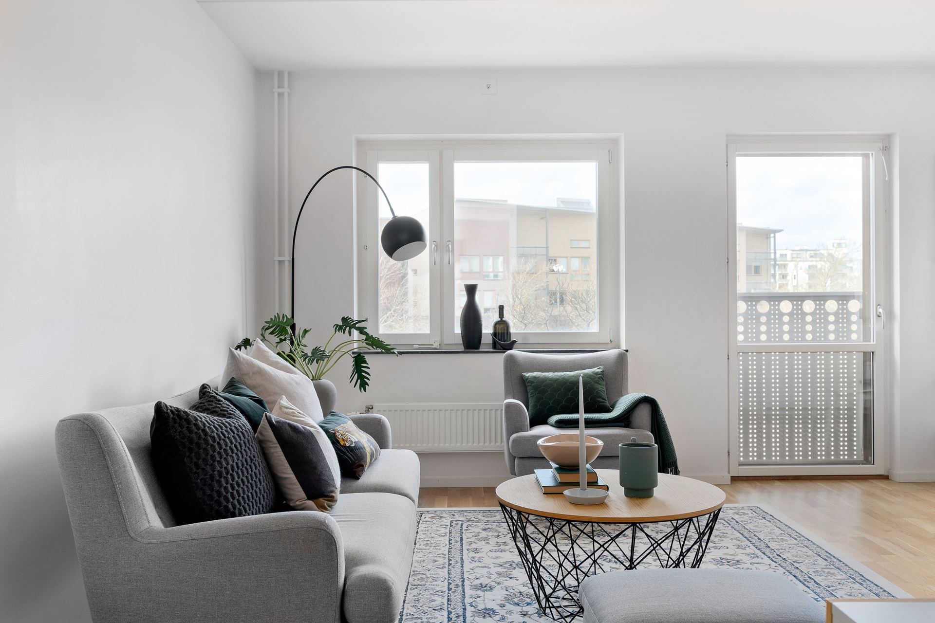 Kökets utformning och den öppna planlösningen ger inte bara bra arbetsytor utan även ett socialt samspel med vardagsrummet. Bra med plats för mysiga filmkvällar eller middag med familj och vänner. Ett lätt möblerat sällskapsrum med plats för soffa, fåtöljer och yta för mysig läs- eller arbetshörna med massor av naturligt ljus. Här finner vi även en fransk balkong med trevlig utsikt över turning torso!