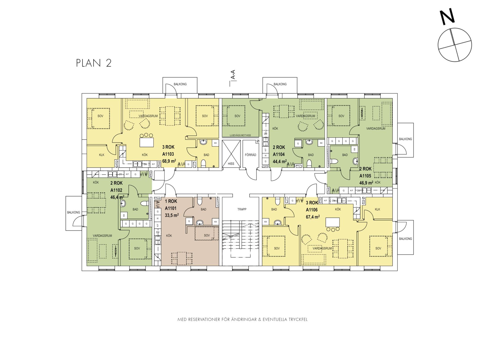 Andra väggfärger finns som tillval i samtliga rum.