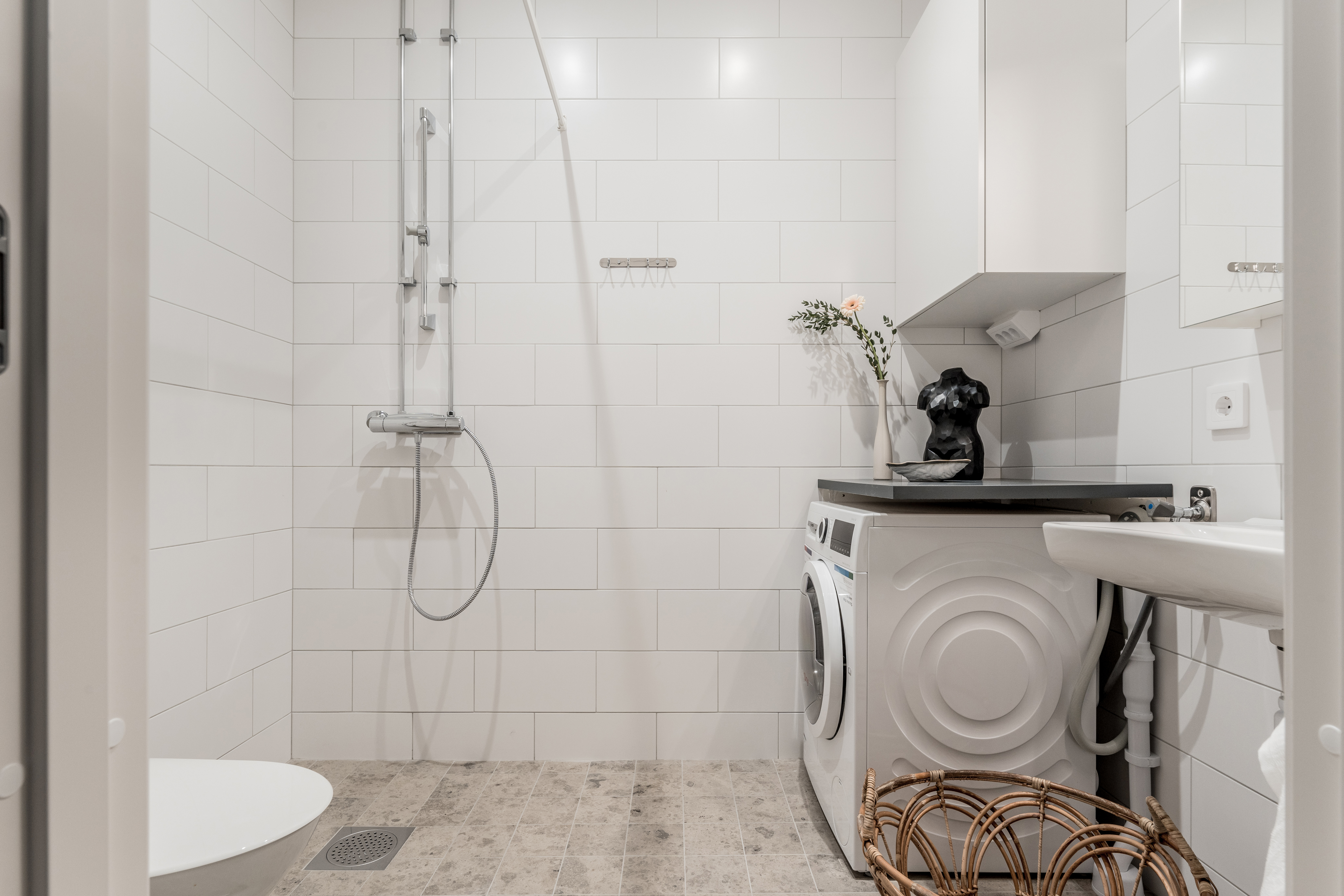 Badrummen utförs helkaklade.