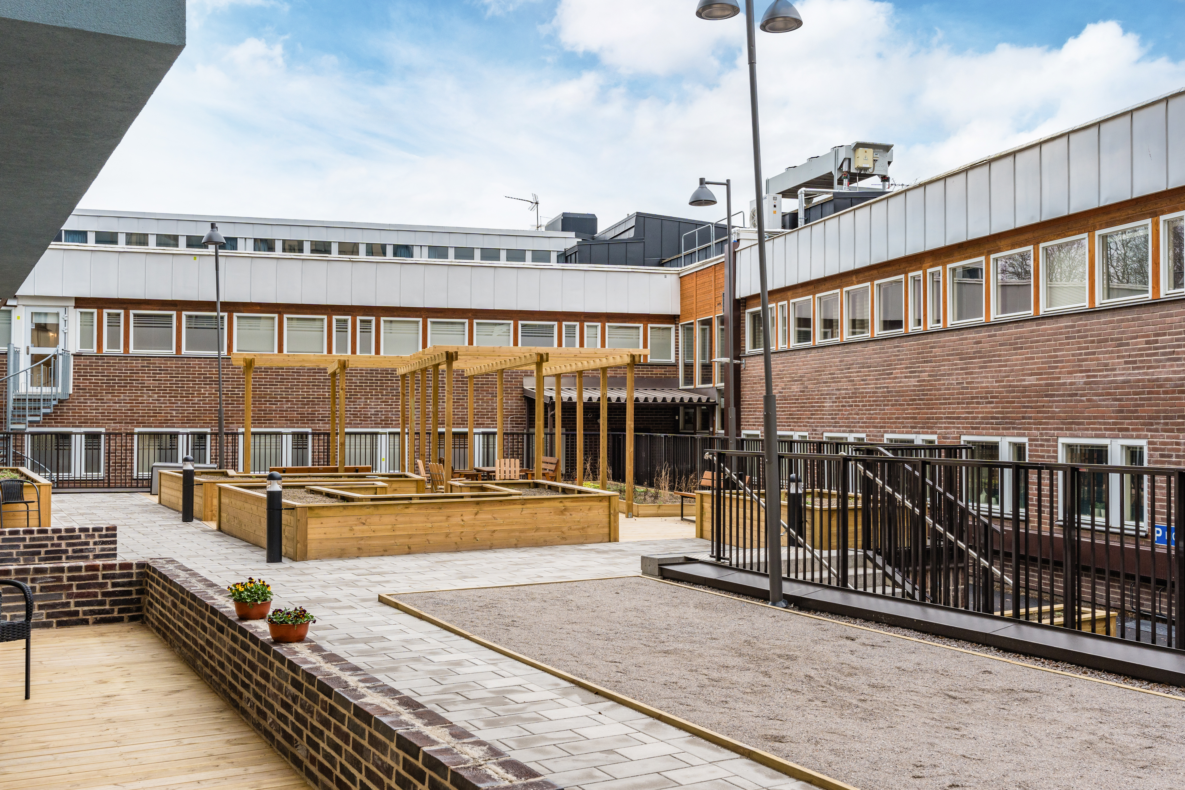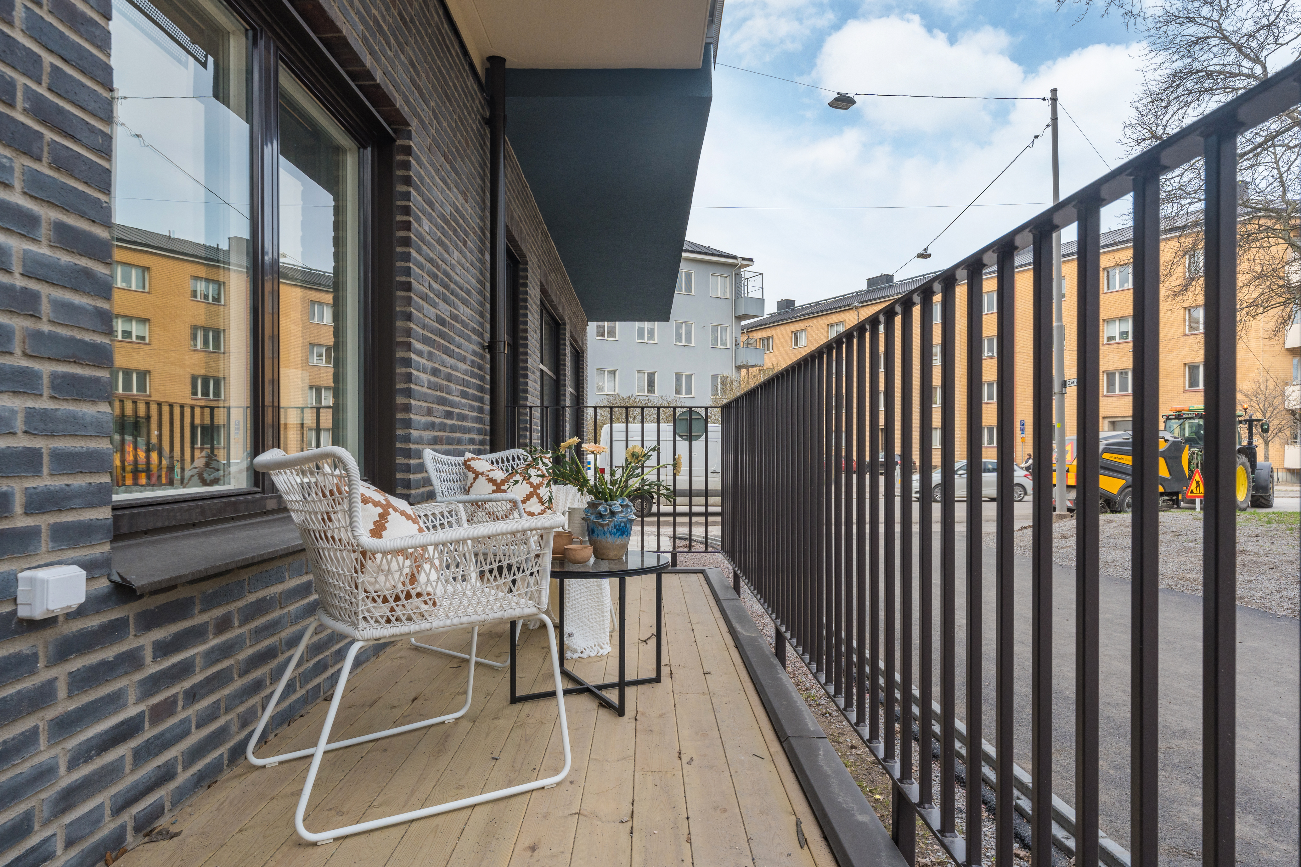 De flesta lägenheter har balkong eller egen uteplats.