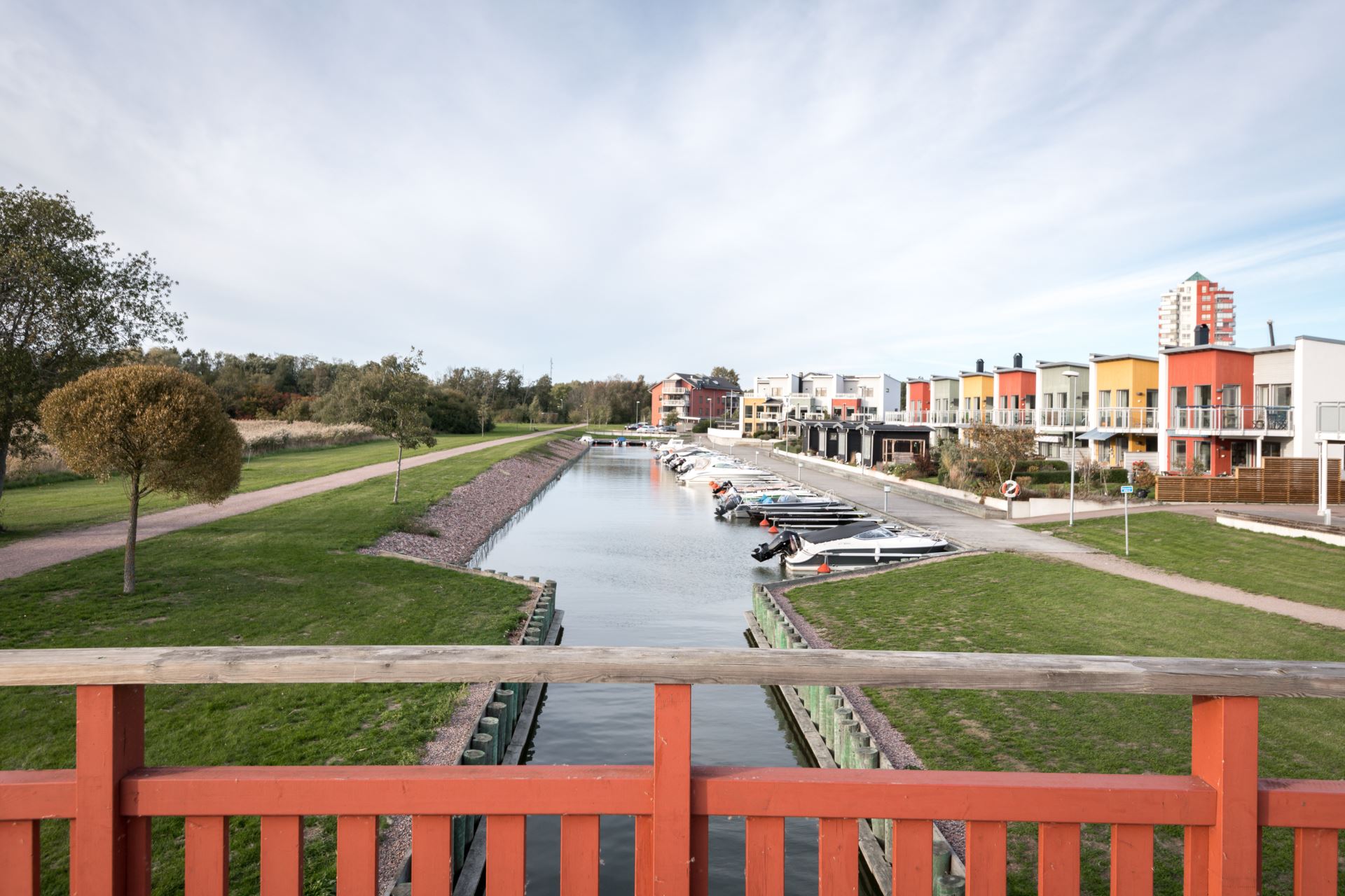 En vacker strandpromenad sträcker sig från Brandholmen förbi kanotstadion till hamnen, där caféer, restauranger och båtliv skapar en livlig atmosfär under sommaren. Promenaden fortsätter hela vägen in till stadens centrum på cirka 25 minuter. Förskola finns i området, och den närmaste grundskolan, Rosenkullaskolan, erbjuder undervisning från förskoleklass till årskurs 6.