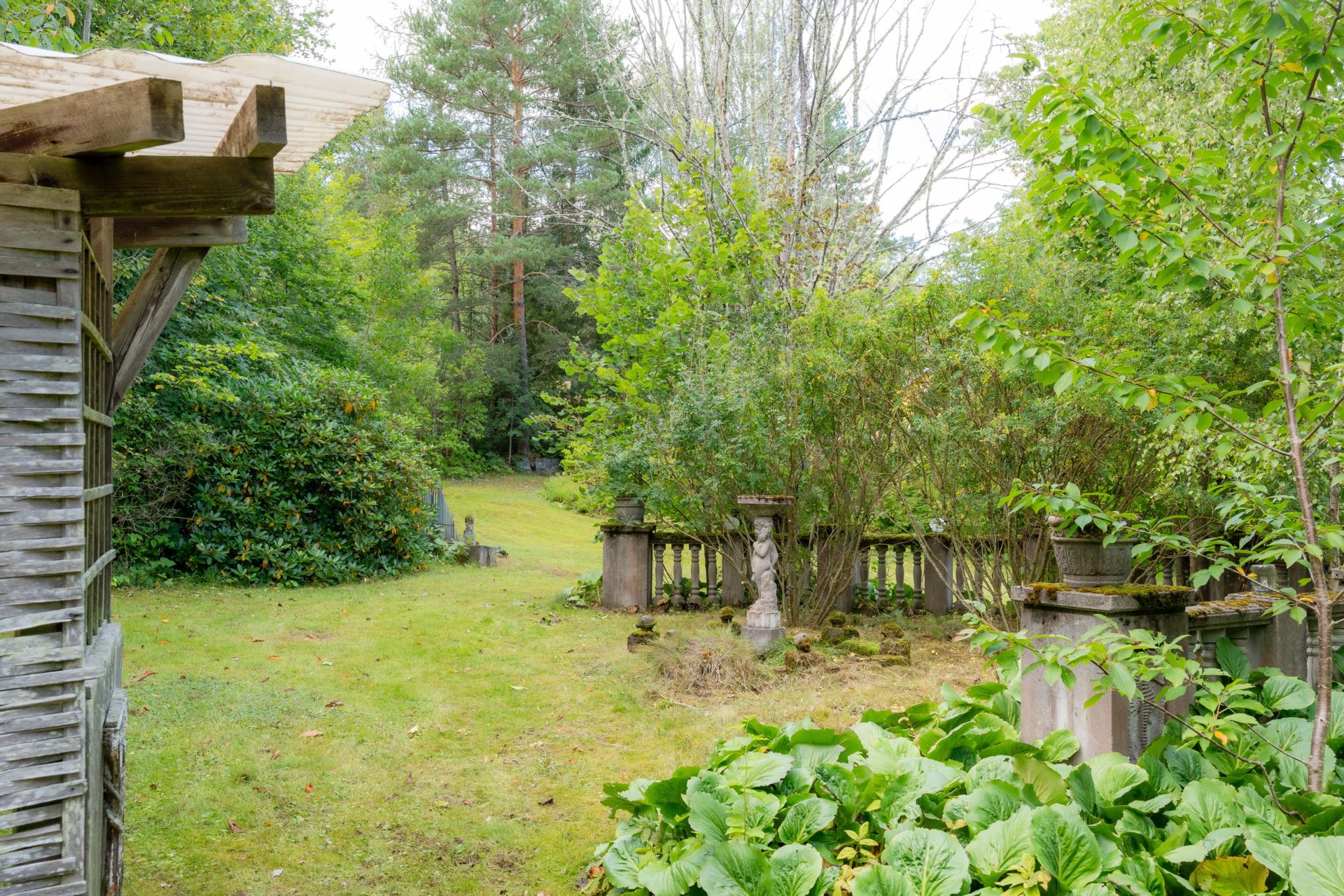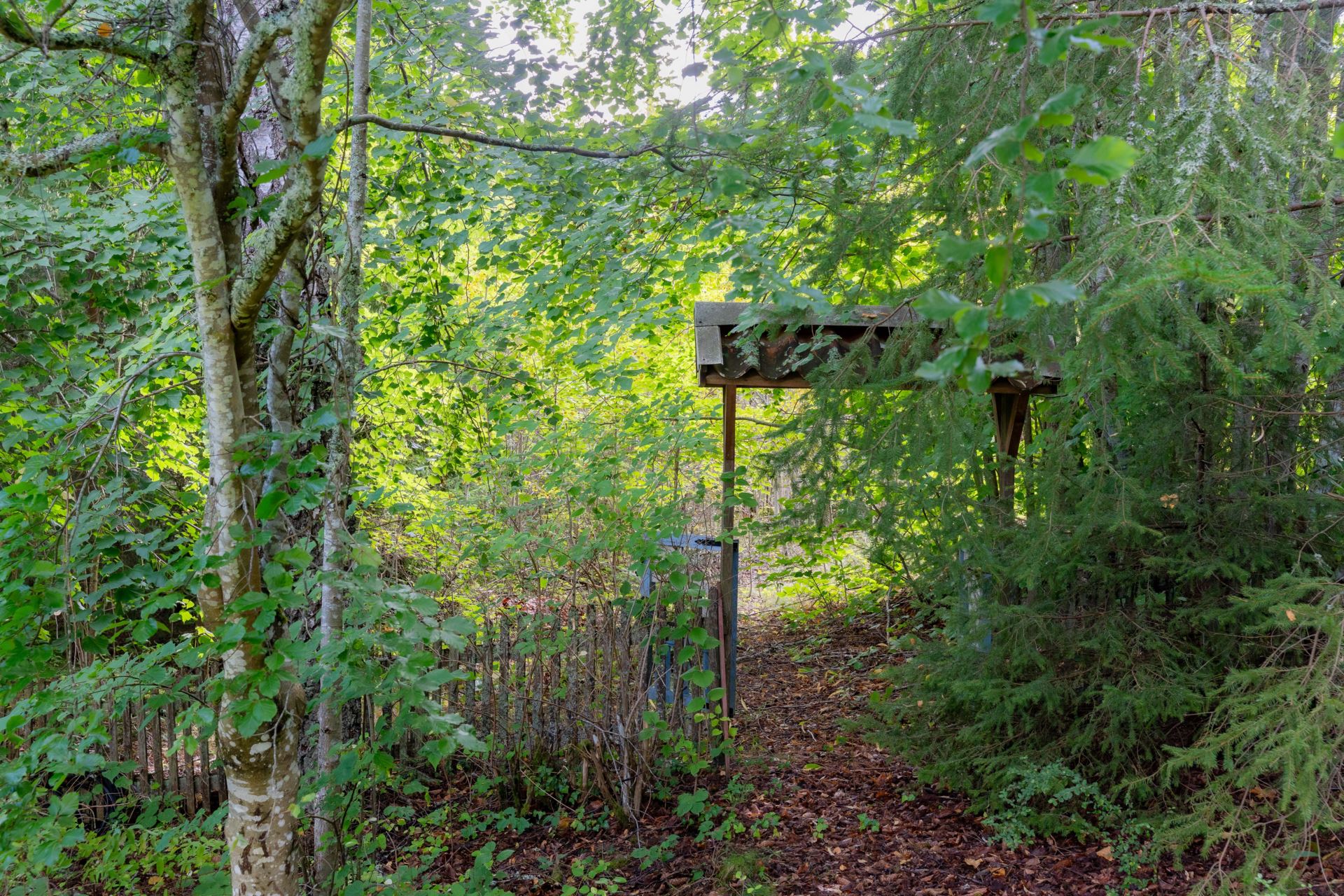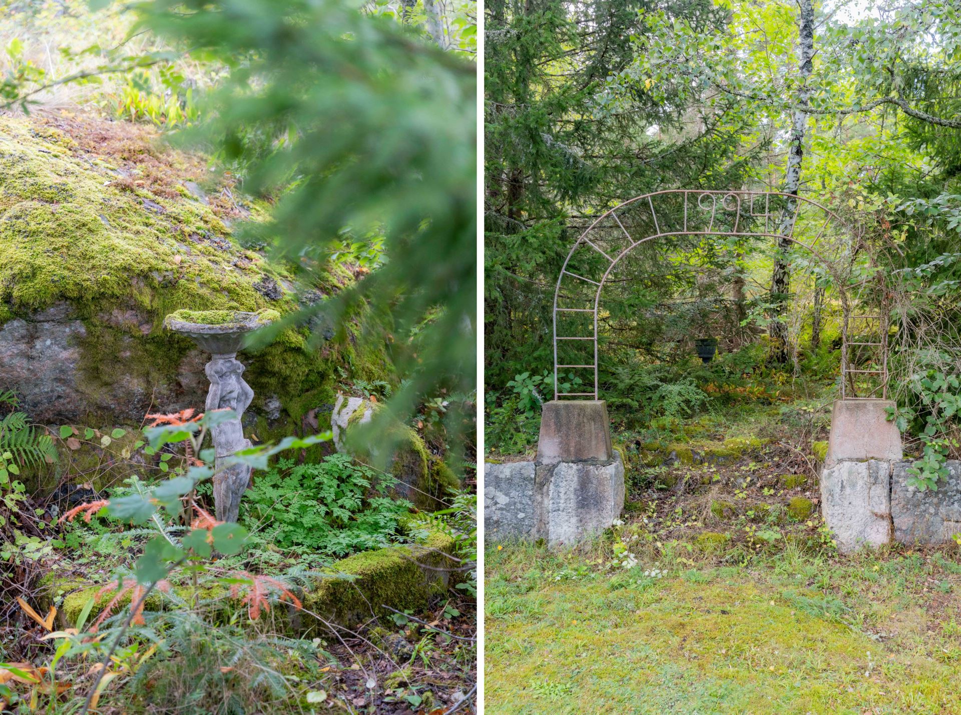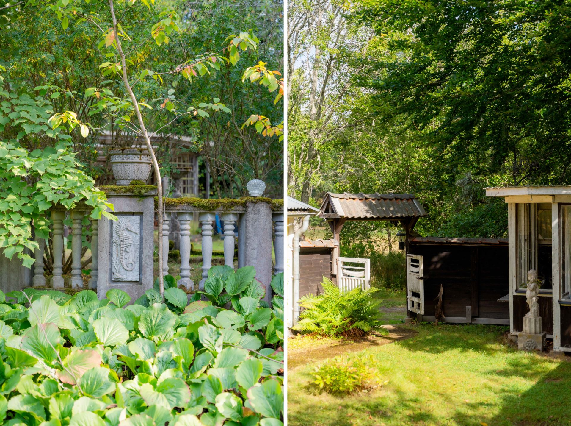 Vacker trädgårdstomt med flertalet konstinstallationer