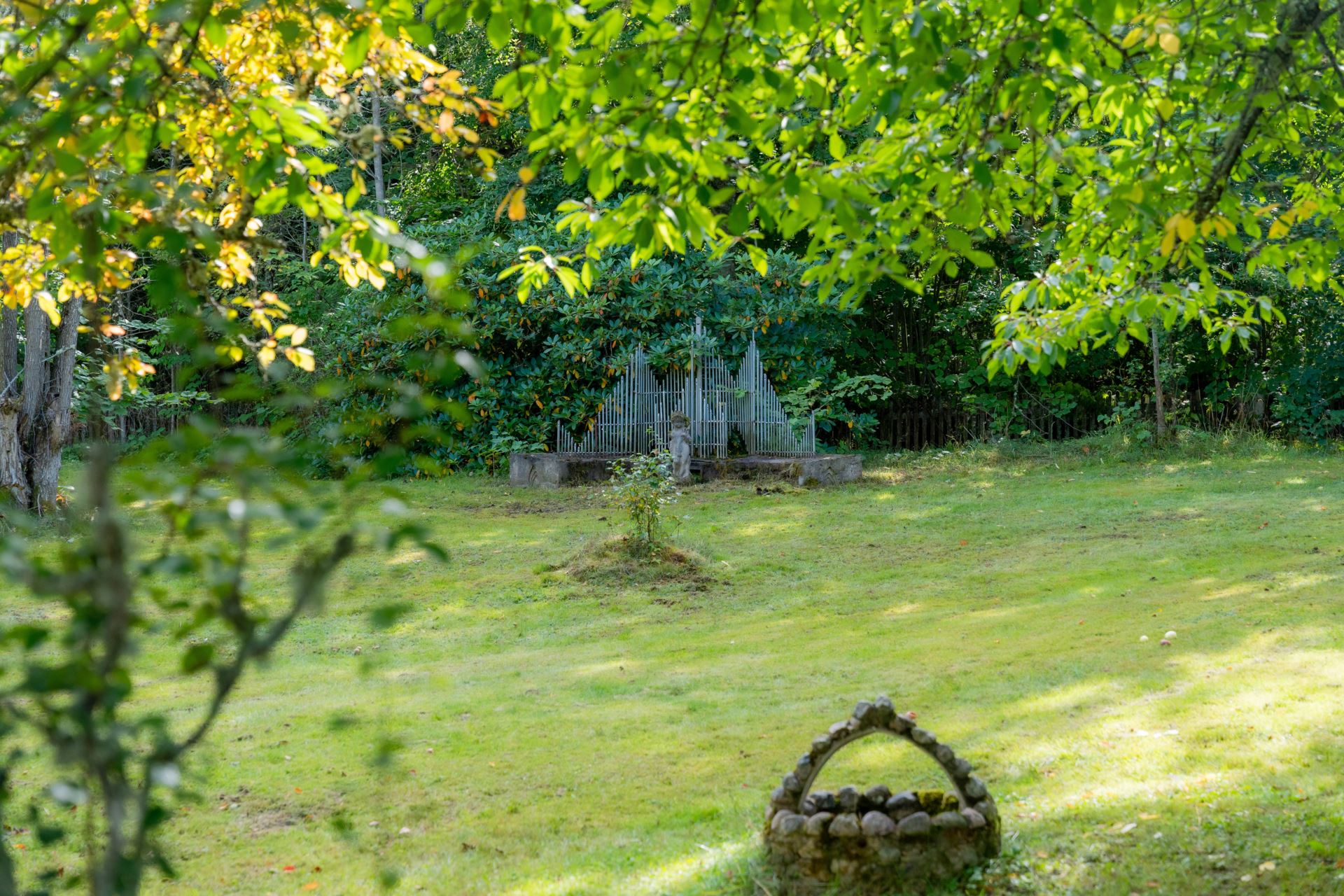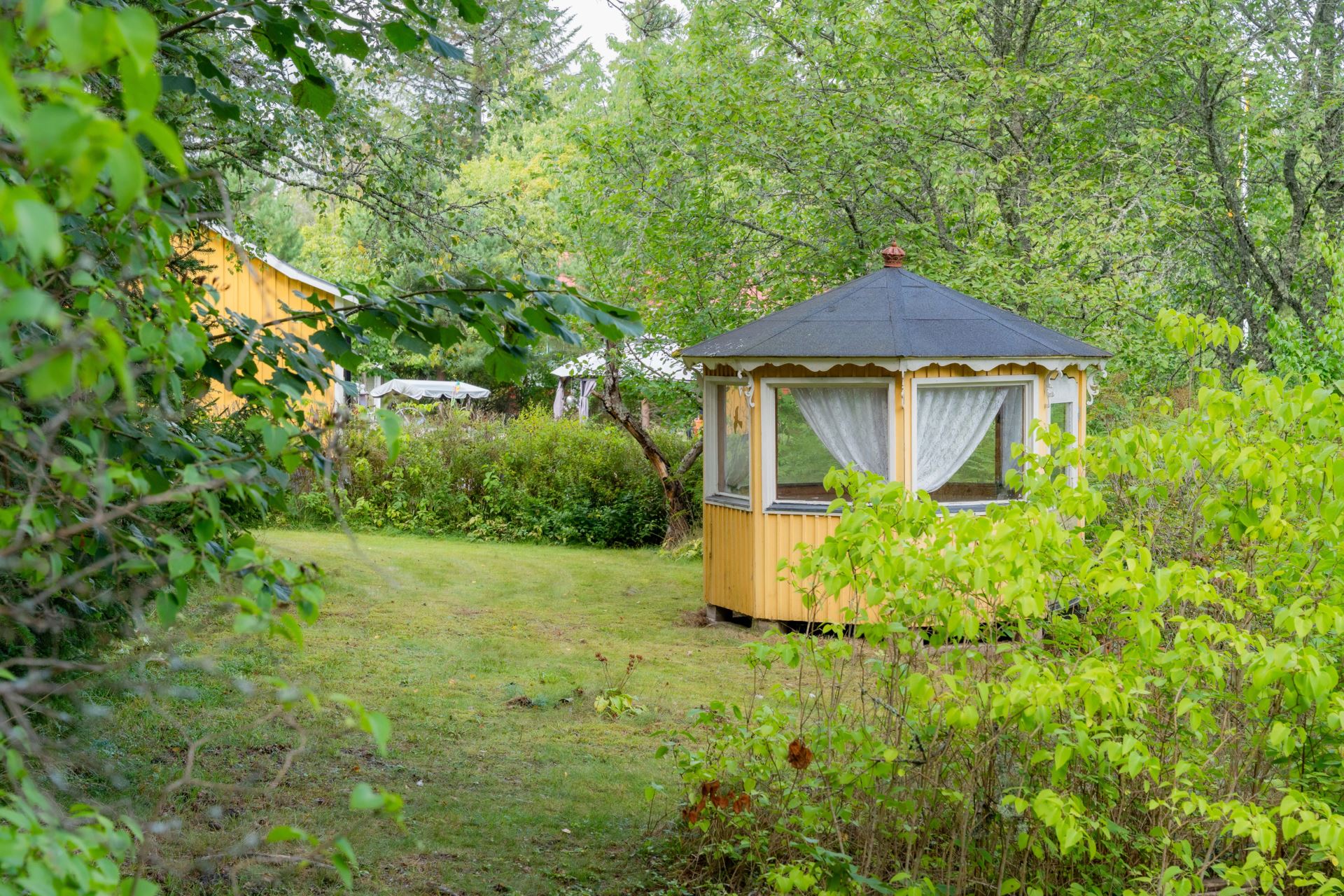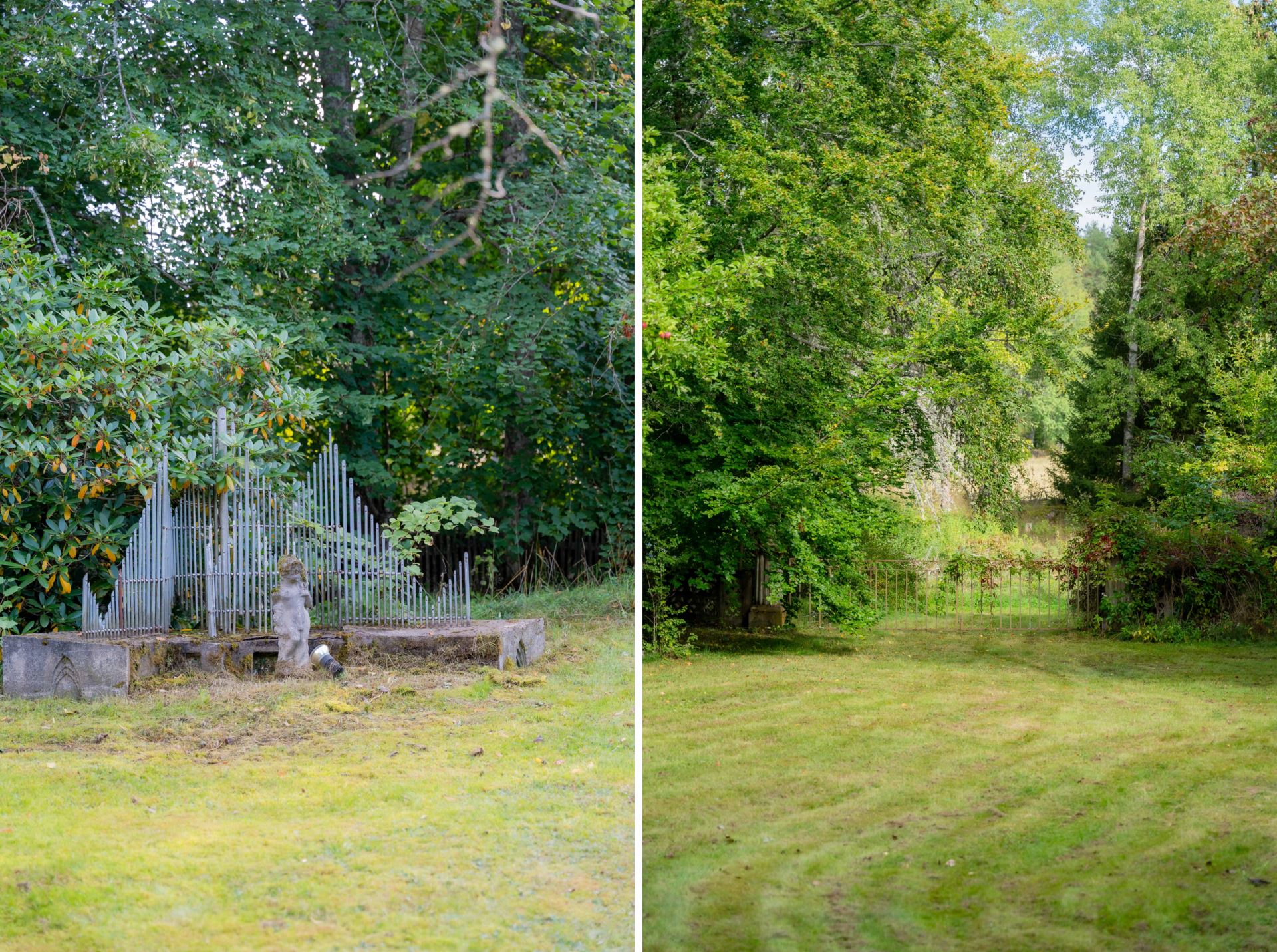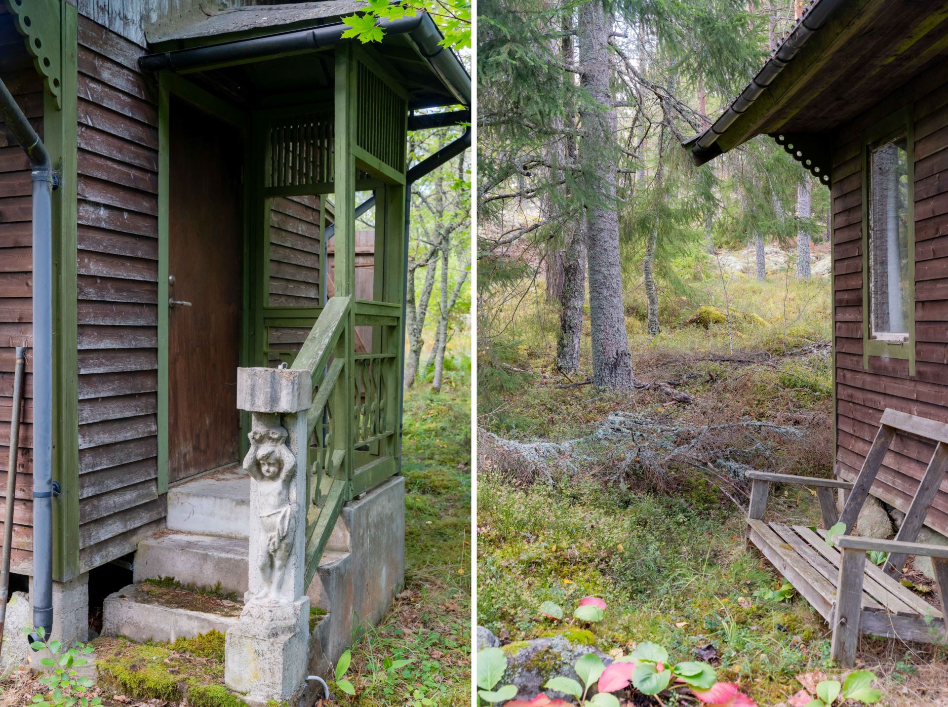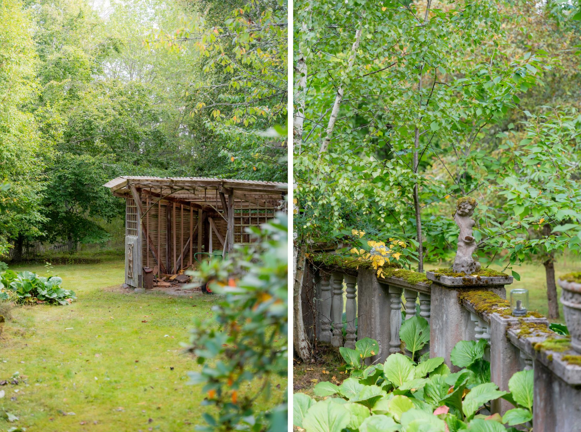 Vacker trädgårdstomt med flertalet konstinstallationer