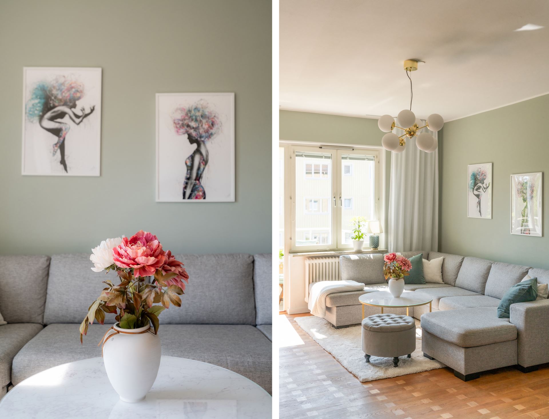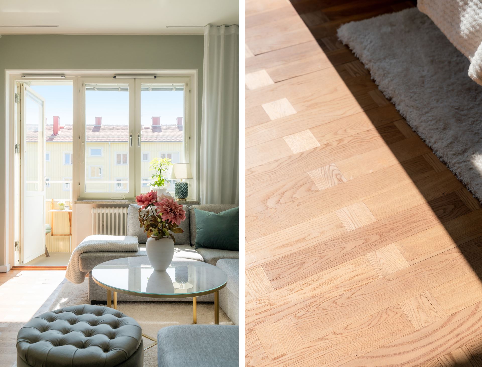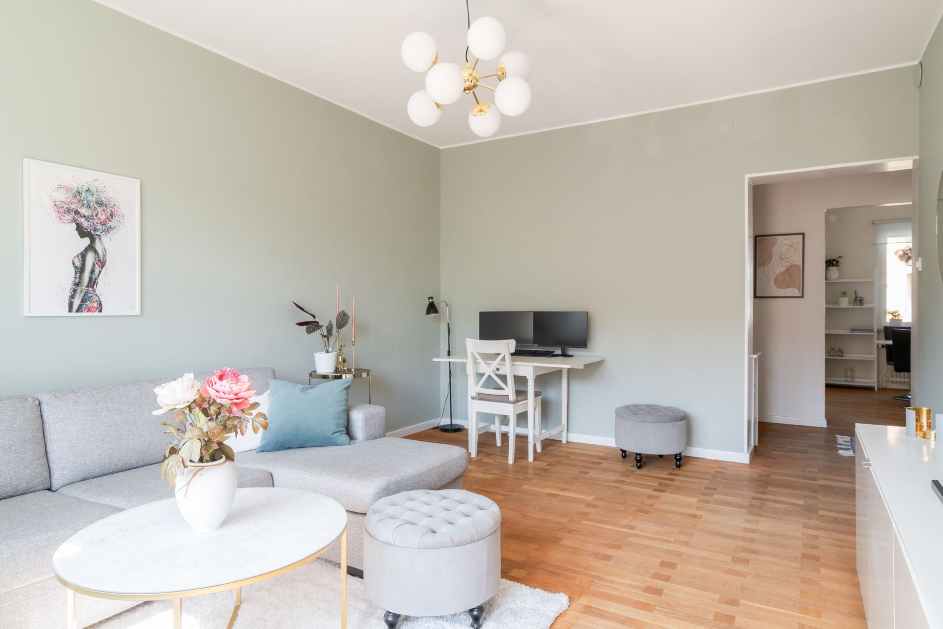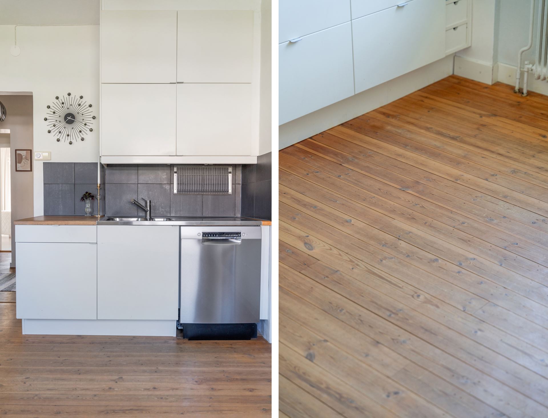 Golv: Ljus laminat (original trägolv finns under)
