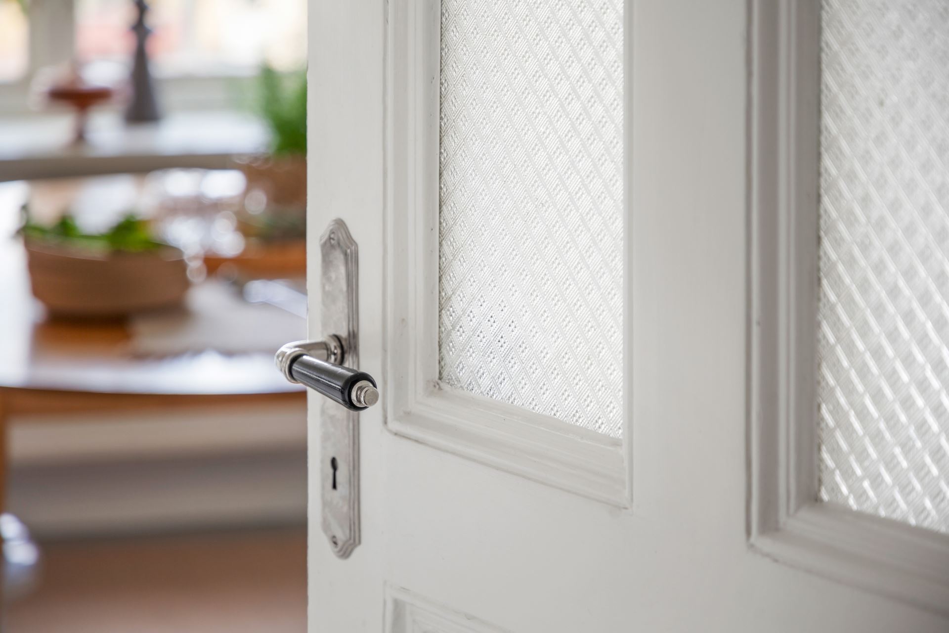 Detaljer: Dubbel entrédörr med cotswoldglas.