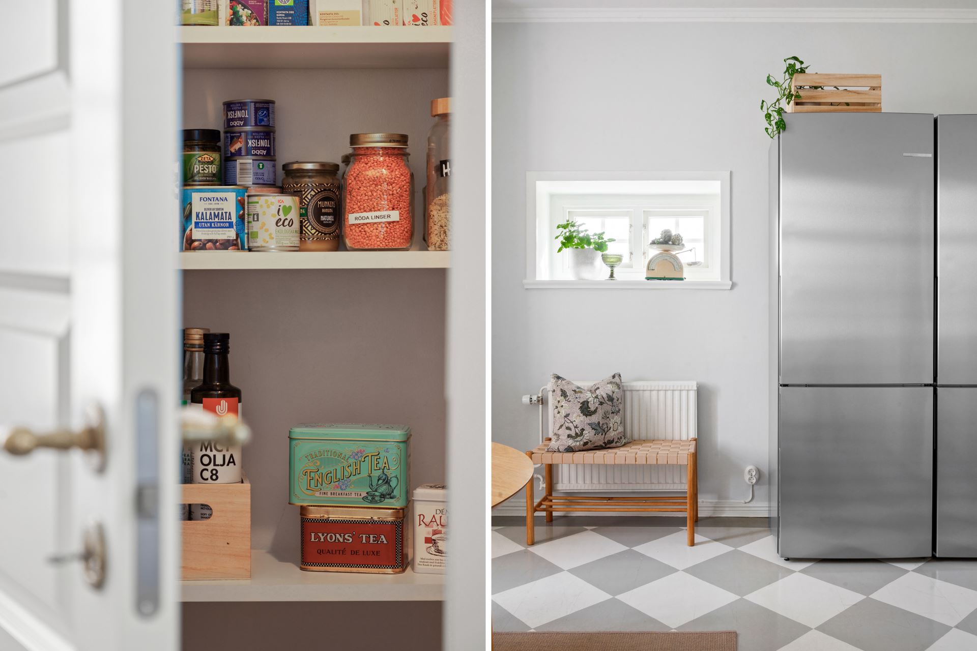 Detaljer: Vackert och praktiskt platsbyggt skafferi.