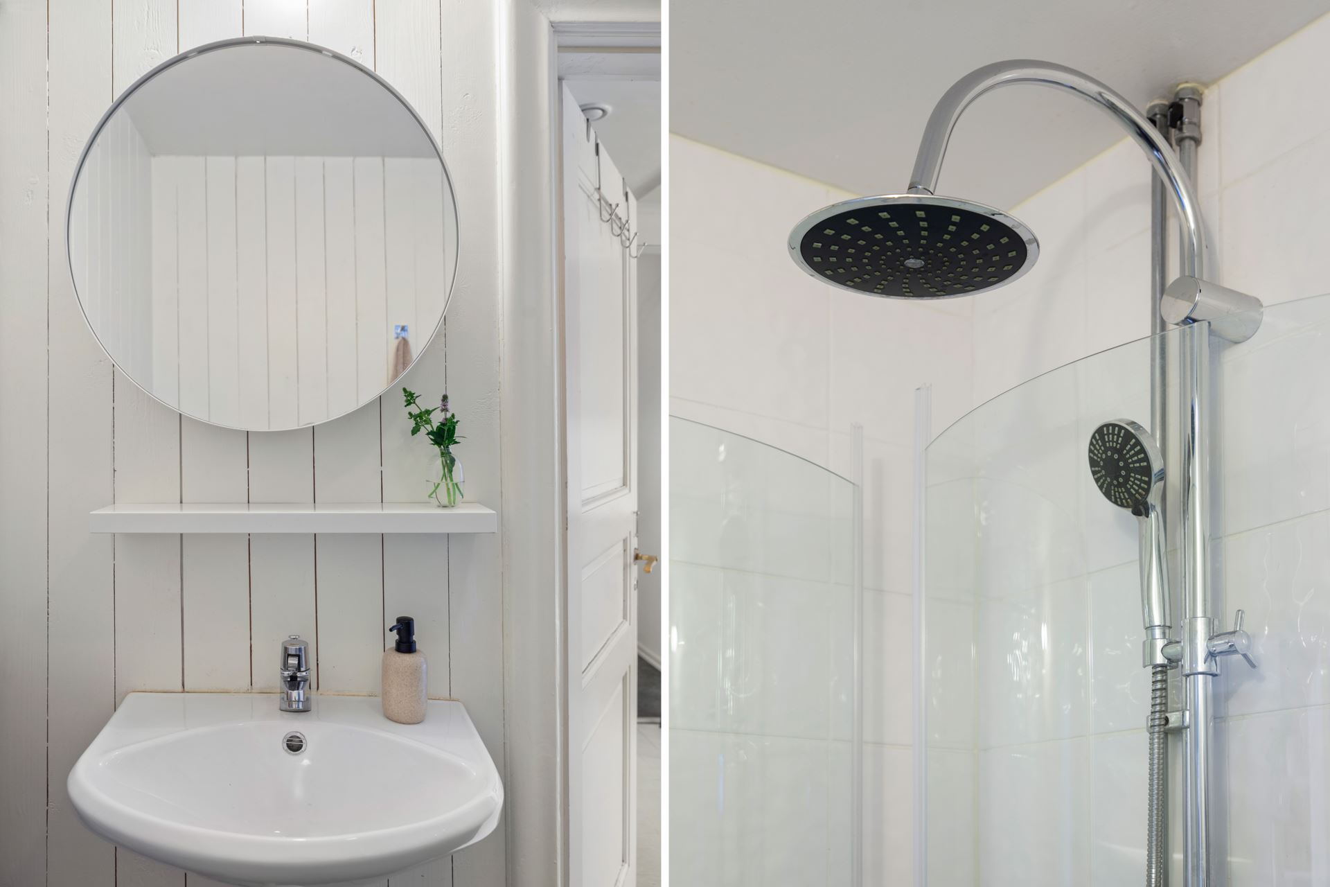 Inredning: Wc, dusch, handfat med spegel