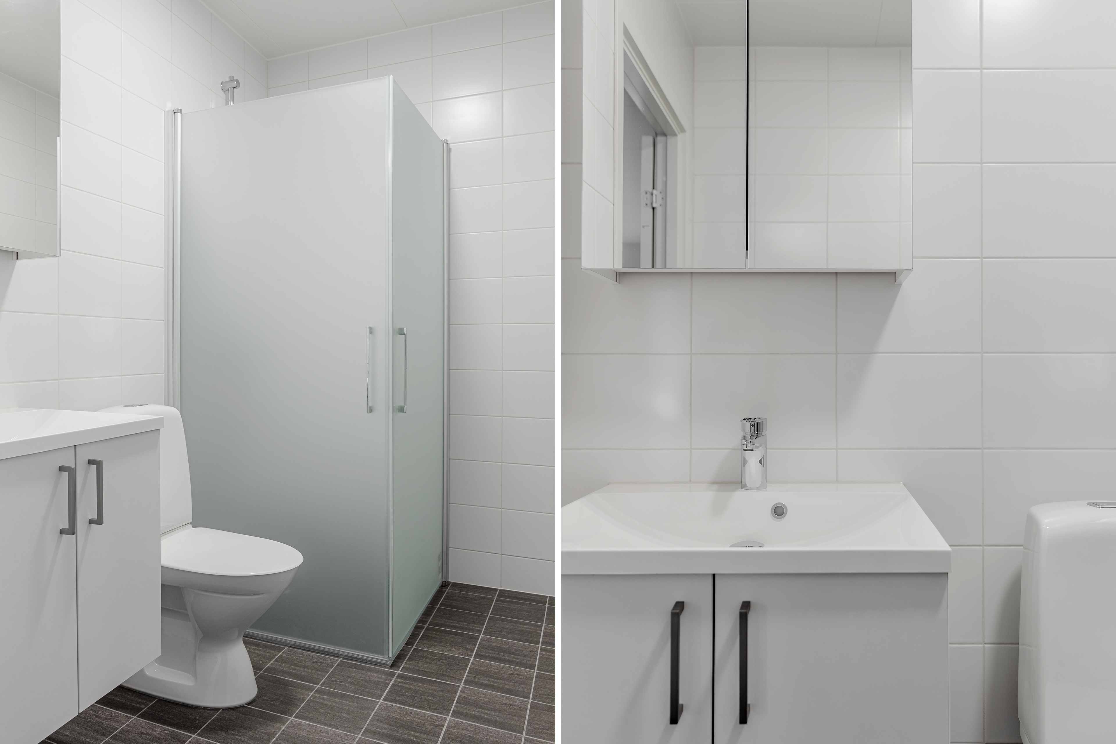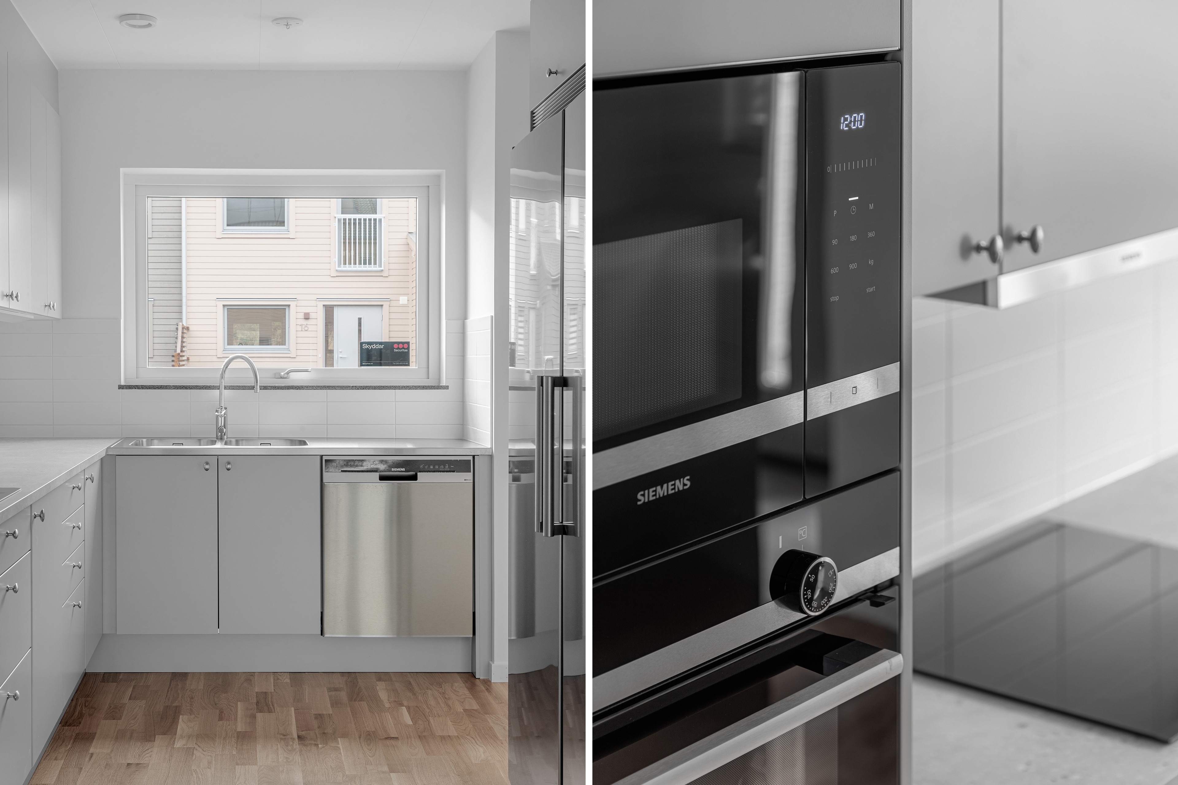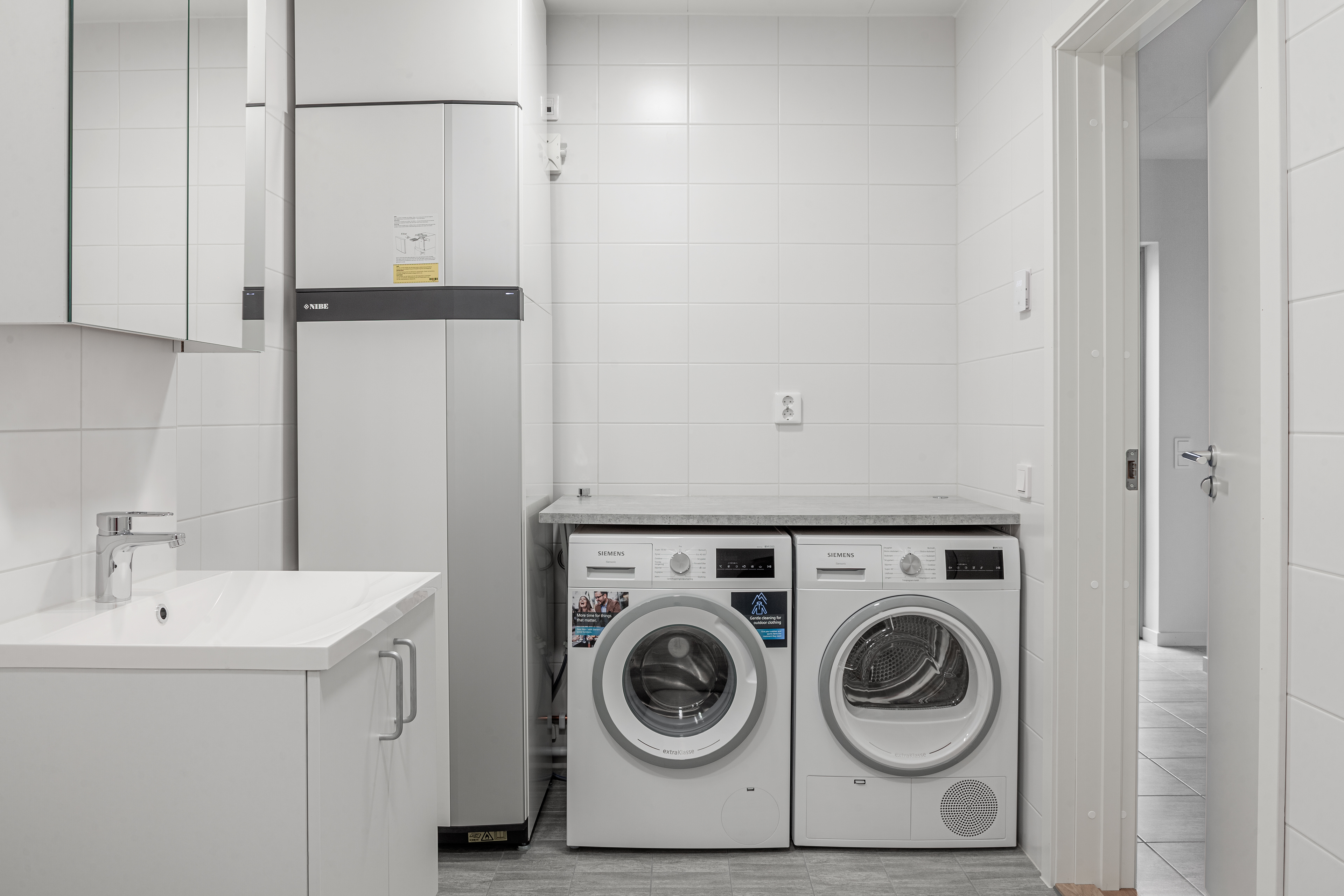På entréplanet möts du av en ljus och öppen planlösning som förbinder kök och vardagsrum – de stora fönsterpartierna suddar ut gränsen mellan inne och ute och släpper in ett härligt naturligt ljus. Härifrån når du också den mysiga altanen, perfekt för middagar i kvällssolen. Planlösningen erbjuder ett praktiskt kapprum med gott om förvaring samt ett stilrent badrum med badkar, tvättmaskin och torktumlare.