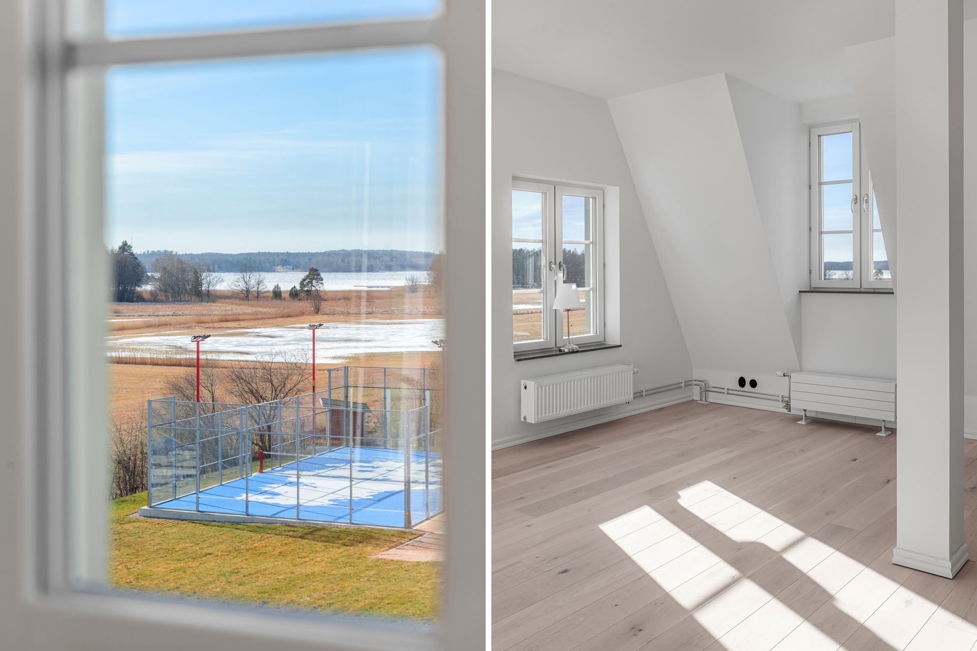Cykelförråd, lägenhetsförråd, gym, pool, padelbana, parkliknande tomt samt mark, bastu och brygga vid Marsviken.
