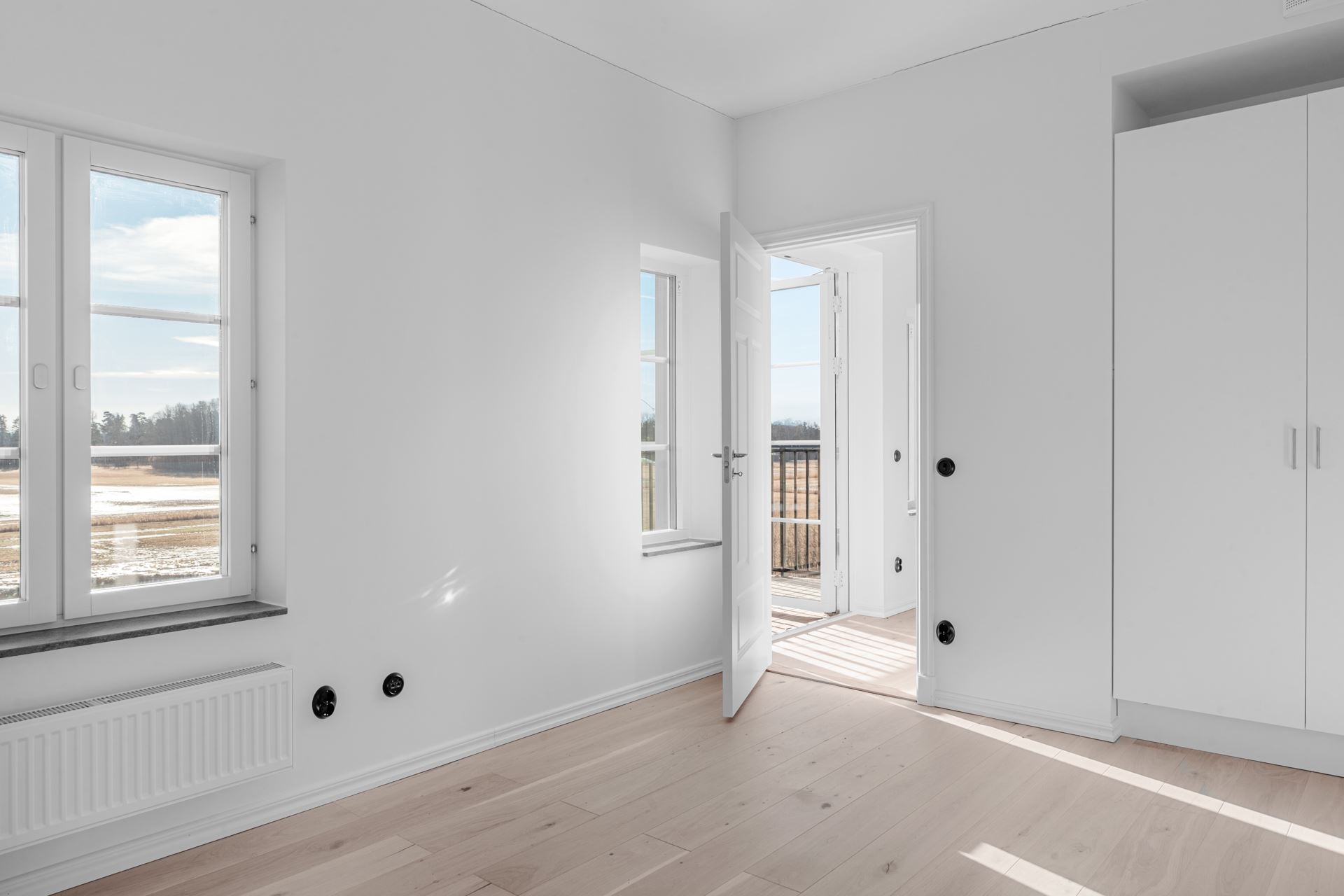 Till lägenheten hör två balkonger i olka värdersteck á 7kvm vardera med trädäck.