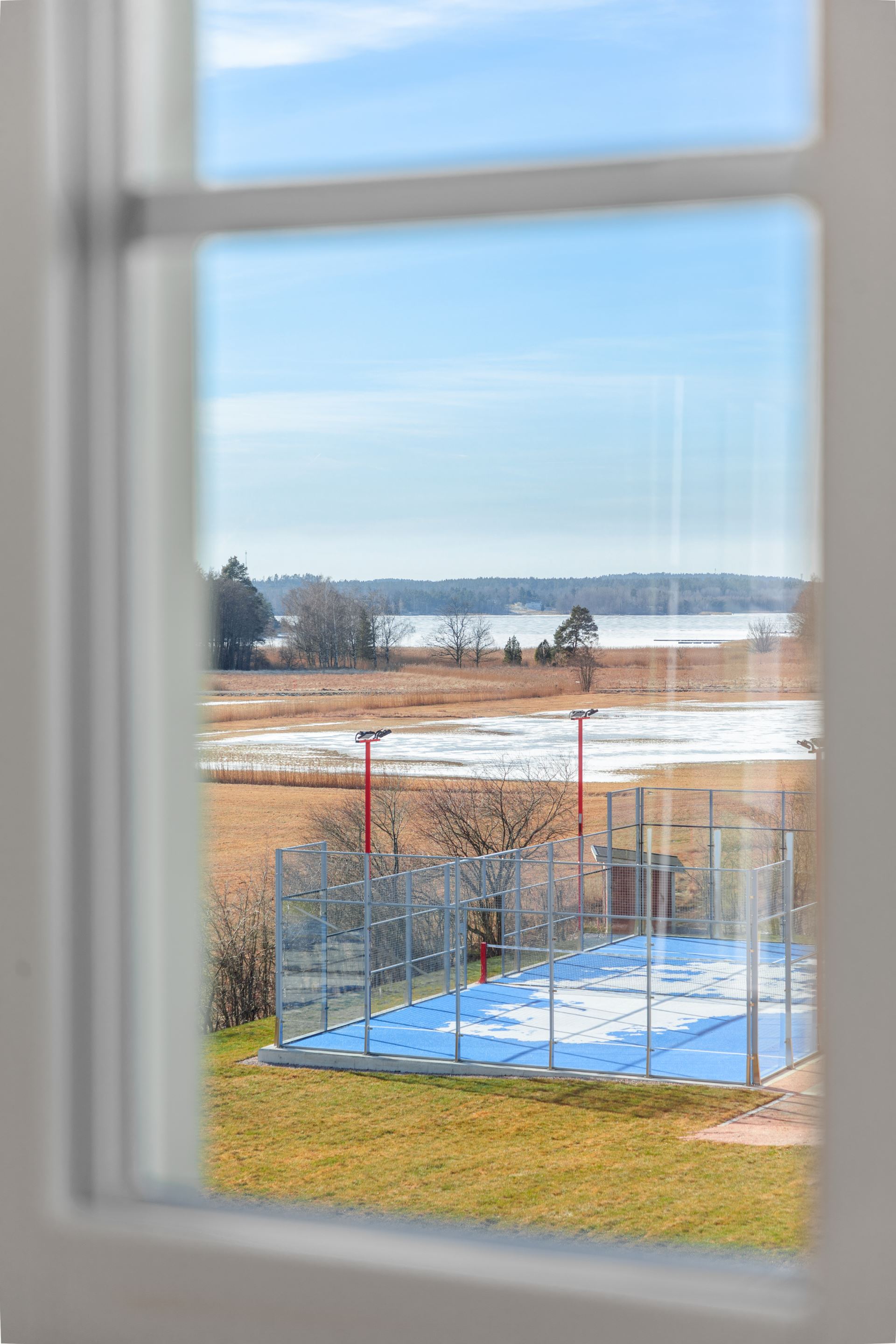 Cykelförråd, lägenhetsförråd, gym, pool, padelbana, parkliknande tomt samt mark, bastu och brygga vid Marsviken.