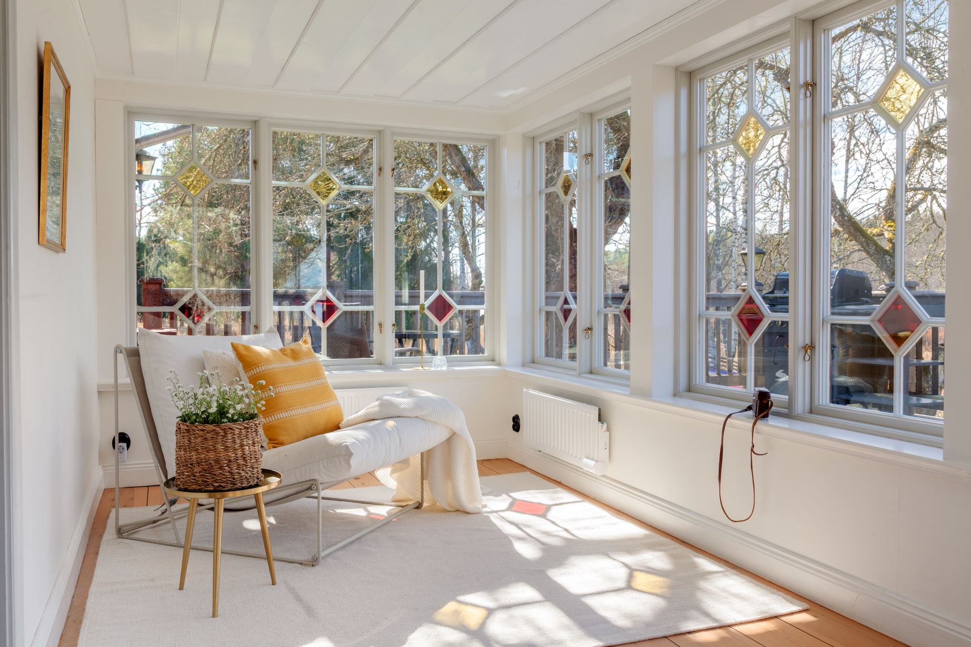 Detaljer: Här kan du njuta av vacker utsikt mot husets brygga och lyssna på fågelkvitter.