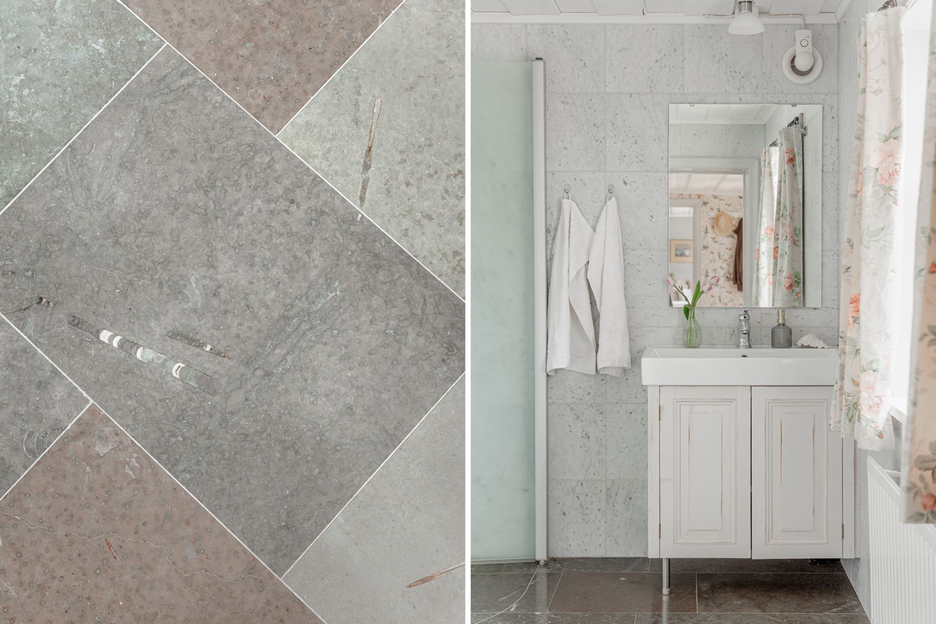 Väggar: Ljus marmor.