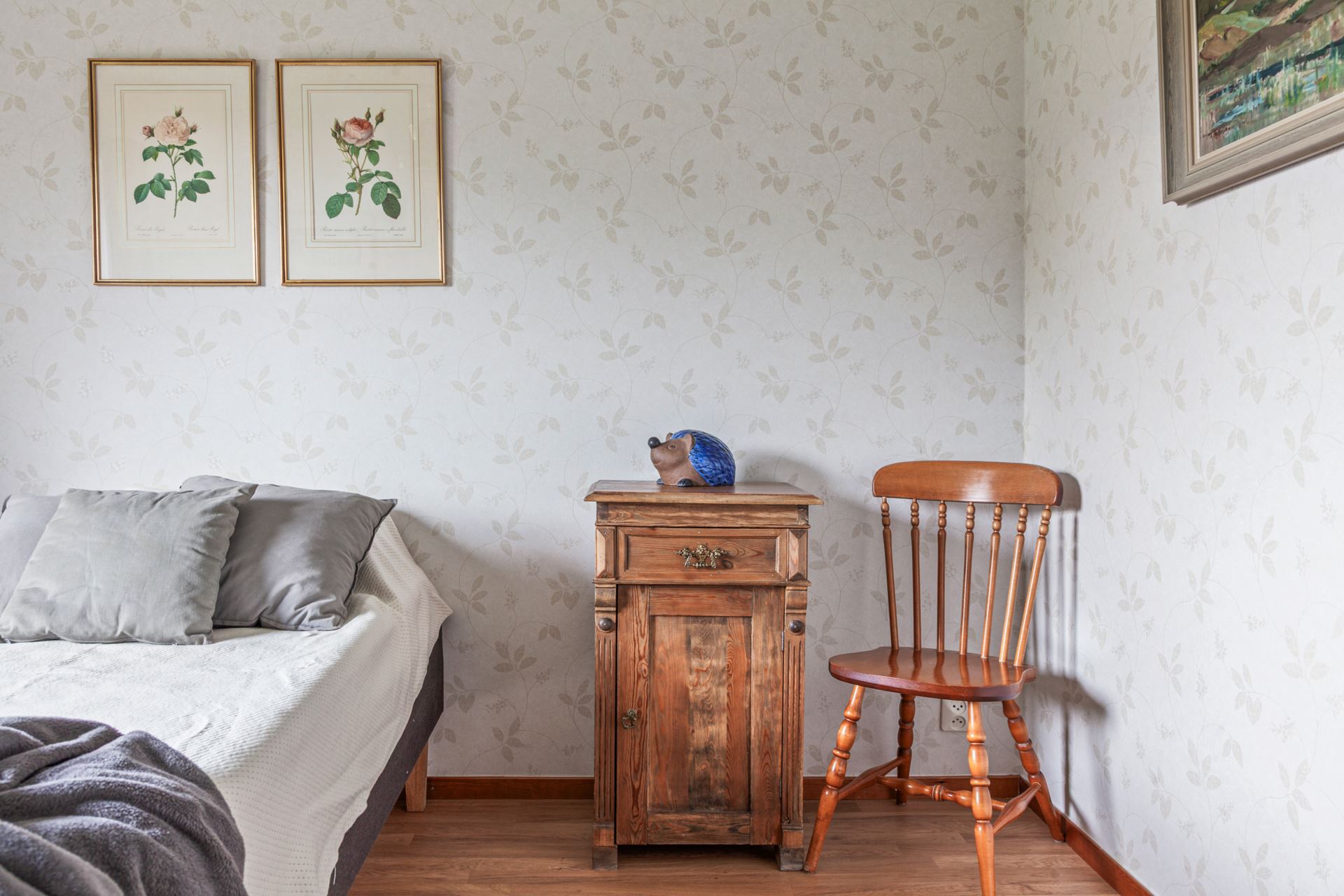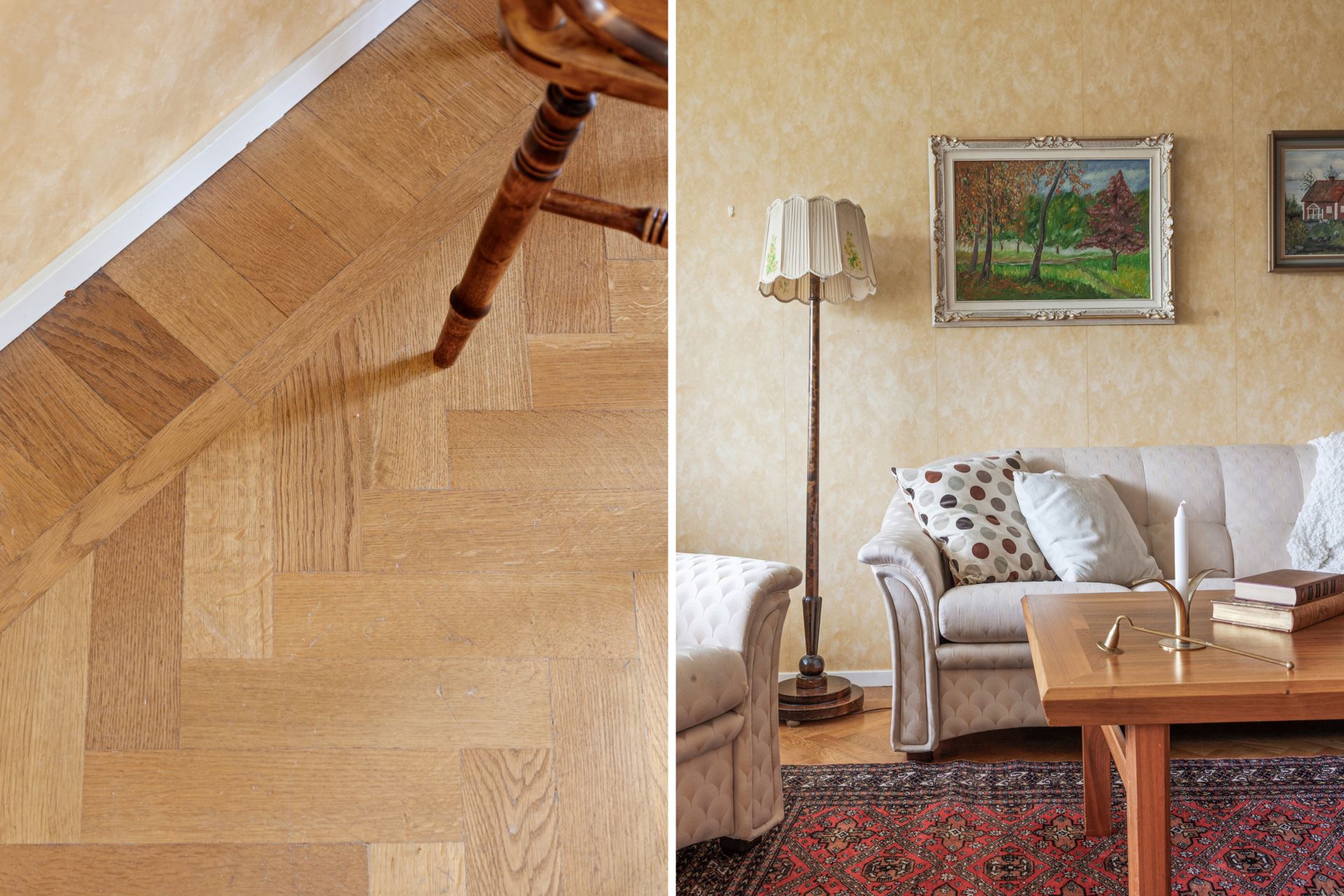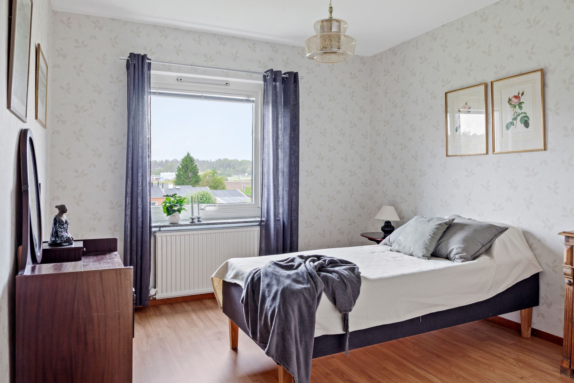 Bostaden bjuder på generösa ljusinsläpp, vacker fiskbensparkett, ett rymligt kök med matplats, mycket förvaring i skåp och skafferi samt rostfri diskbänk. Det helkaklade badrummet ger ett fräscht intryck och den stora hallen erbjuder fem platsbyggda garderober som ger gott om förvaringsmöjligheter. Till lägenheten hör även förråd och matkällare.