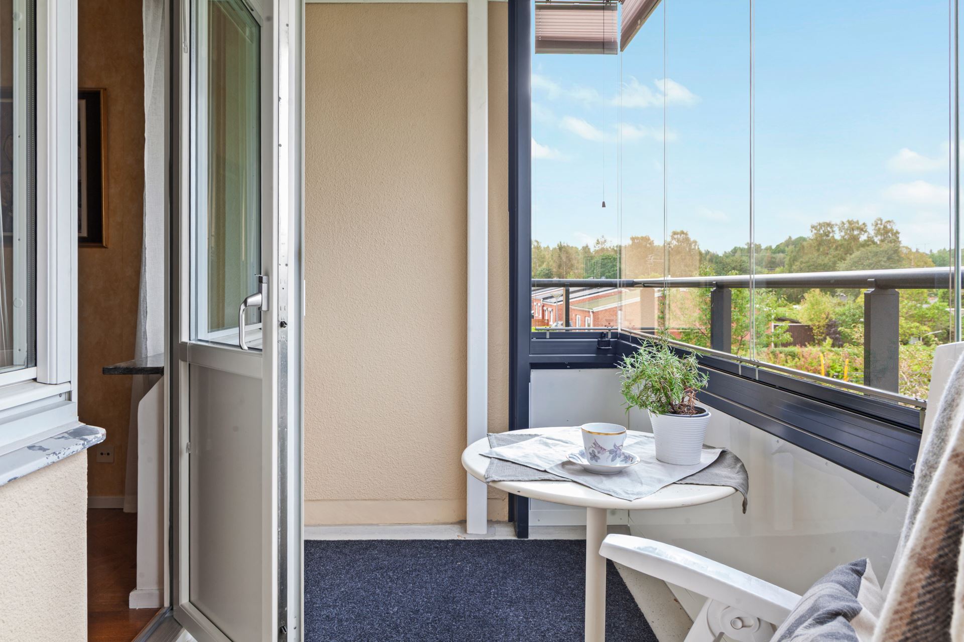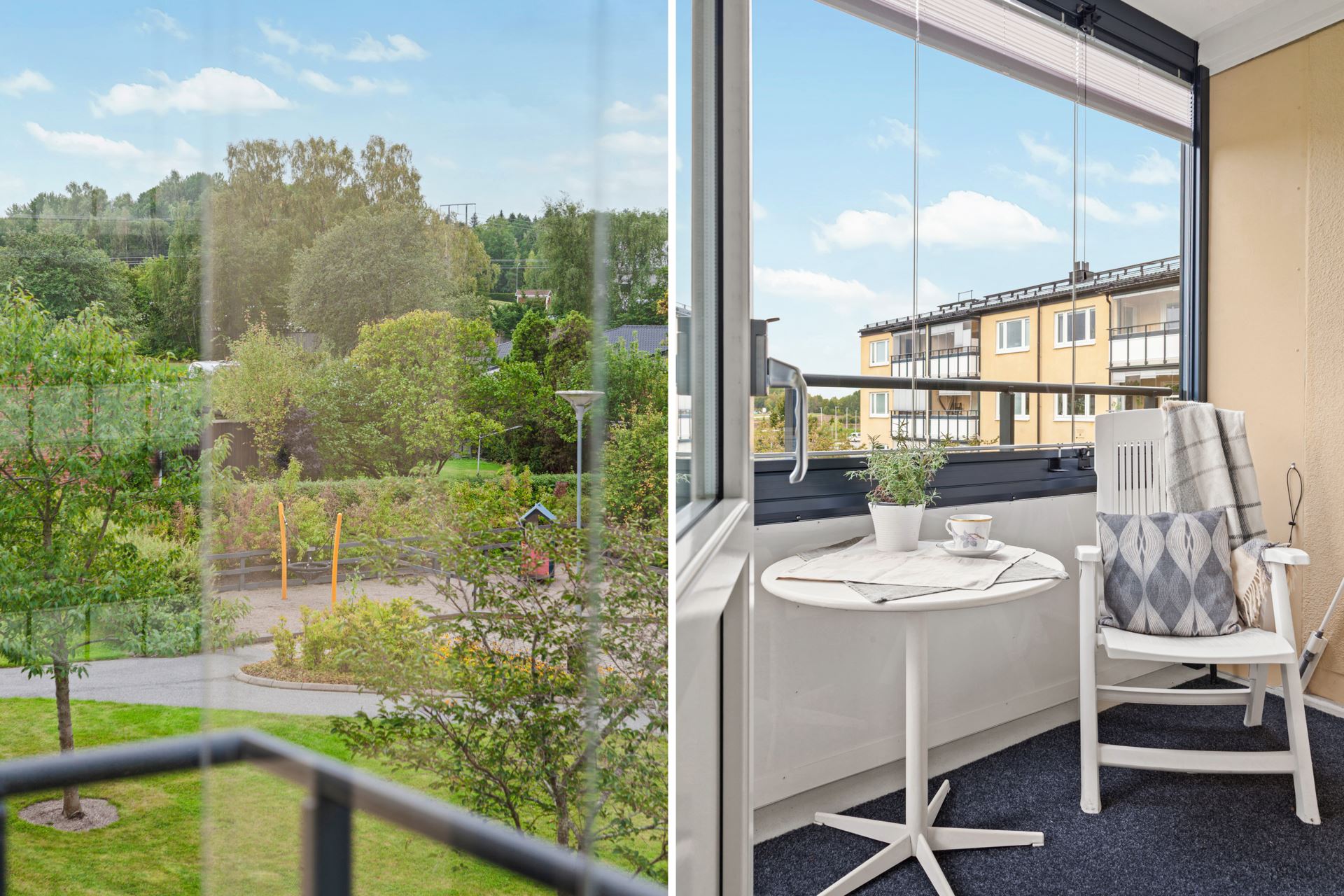 Den stora inglasade balkongen blir som ett extra rum stora delar av året – en perfekt plats för morgonkaffet, middagar i kvällssolen eller avkoppling med en bok. Samtliga fönsterpartier är öppningsbara vilket ger möjlighet till skön genomströmning under varma sommardagar.