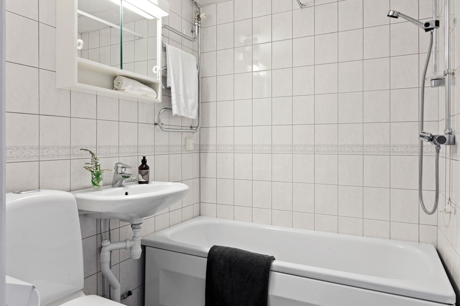 Övrigt: Badkar, handfat med spegelskåp, WC. handdukstork. Finns framdraget för tvättmaskin. Stambytt 2002/2003