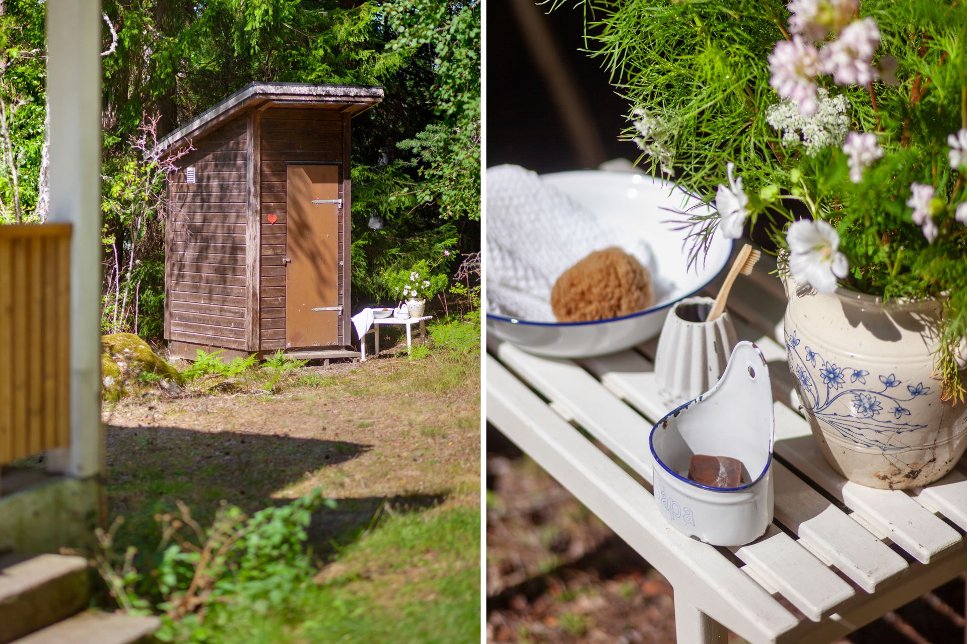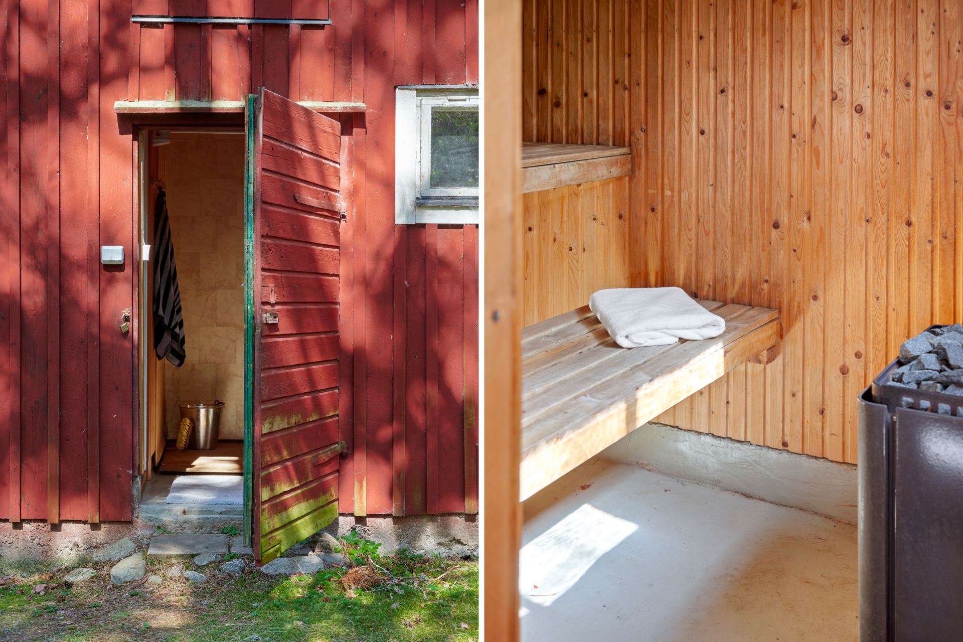 På tomten finns en byggnad med vedeldad bastu, omklädningsrum/förråd samt ett utedass i närheten av boningshuset.