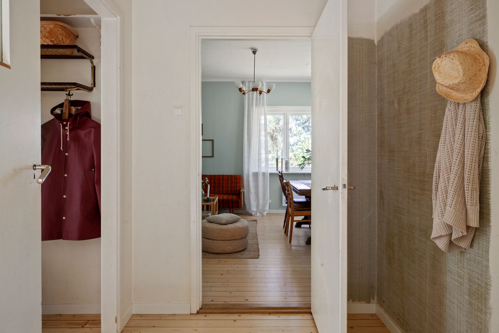 Detaljer: Längre in i hallen finns en nisch för avhängning av ytterkläder.