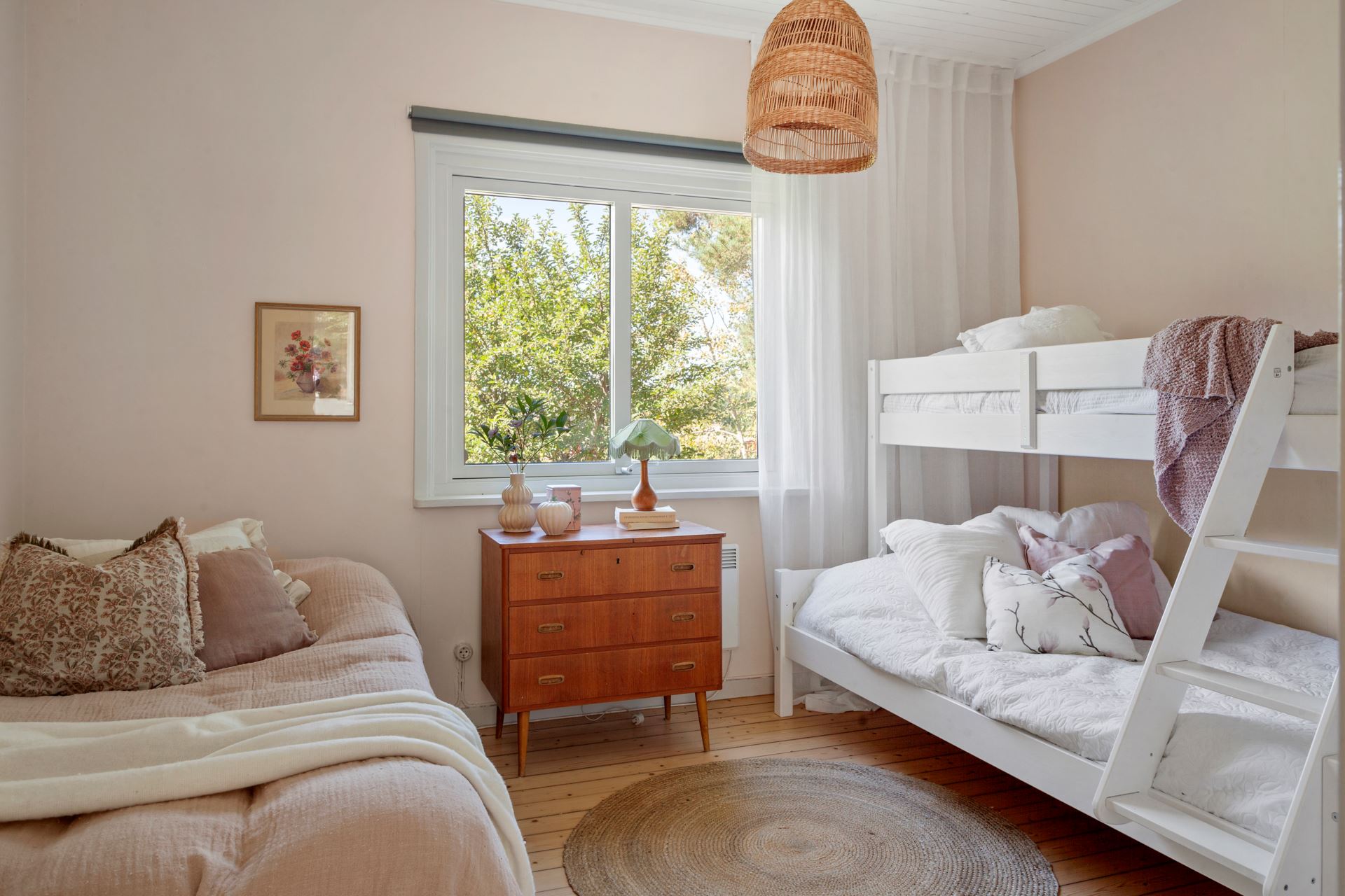 Detaljer: Rymligt sovrum, med plats för dubbelsäng, alternativt en enkelsäng och våningssäng.