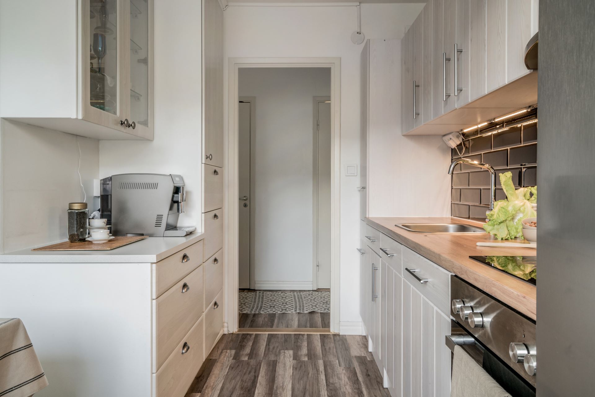 Lägenheten har genomgått en renovering under 2023 med bra standard rakt igenom. Badrummet är snyggt helkaklat, renoverat av Elmi Bygg, och utrustat med stilren duschhörna. Köket är modernt och fullt utrustat med nya vitvaror – också från 2023 – perfekt för dig som älskar att laga mat och samtidigt uppskattar form och funktion. I samband med renoveringen har alla tak och väggar målats i ljusa, harmoniska nyanser och nya, enhetliga golv har lagts i hela bostaden för en genomgående stilren känsla.