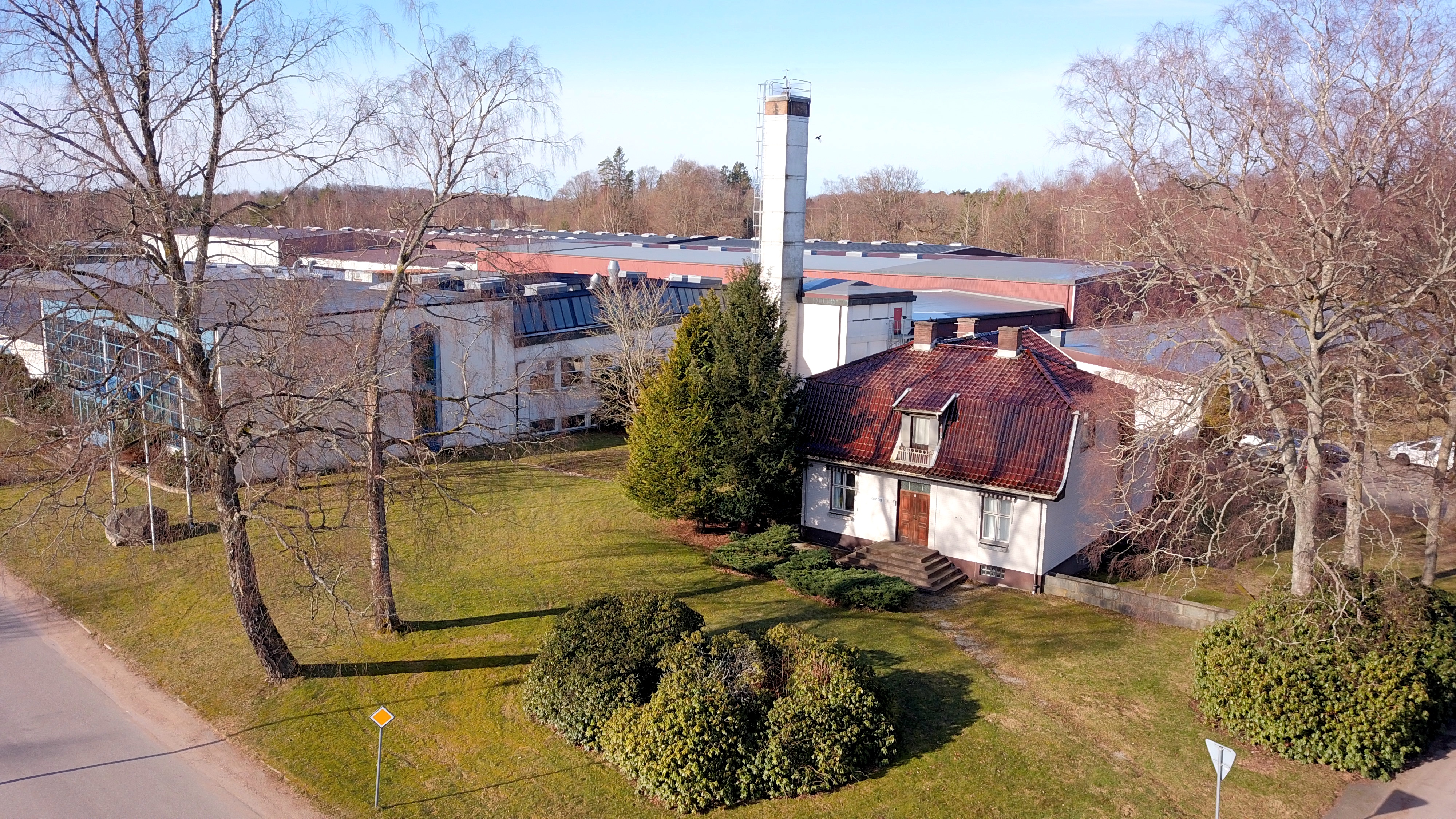 Det finns en stor tomtplan med plats för lastbilar att vända runt. Här kan man även ha uppställningsyta.