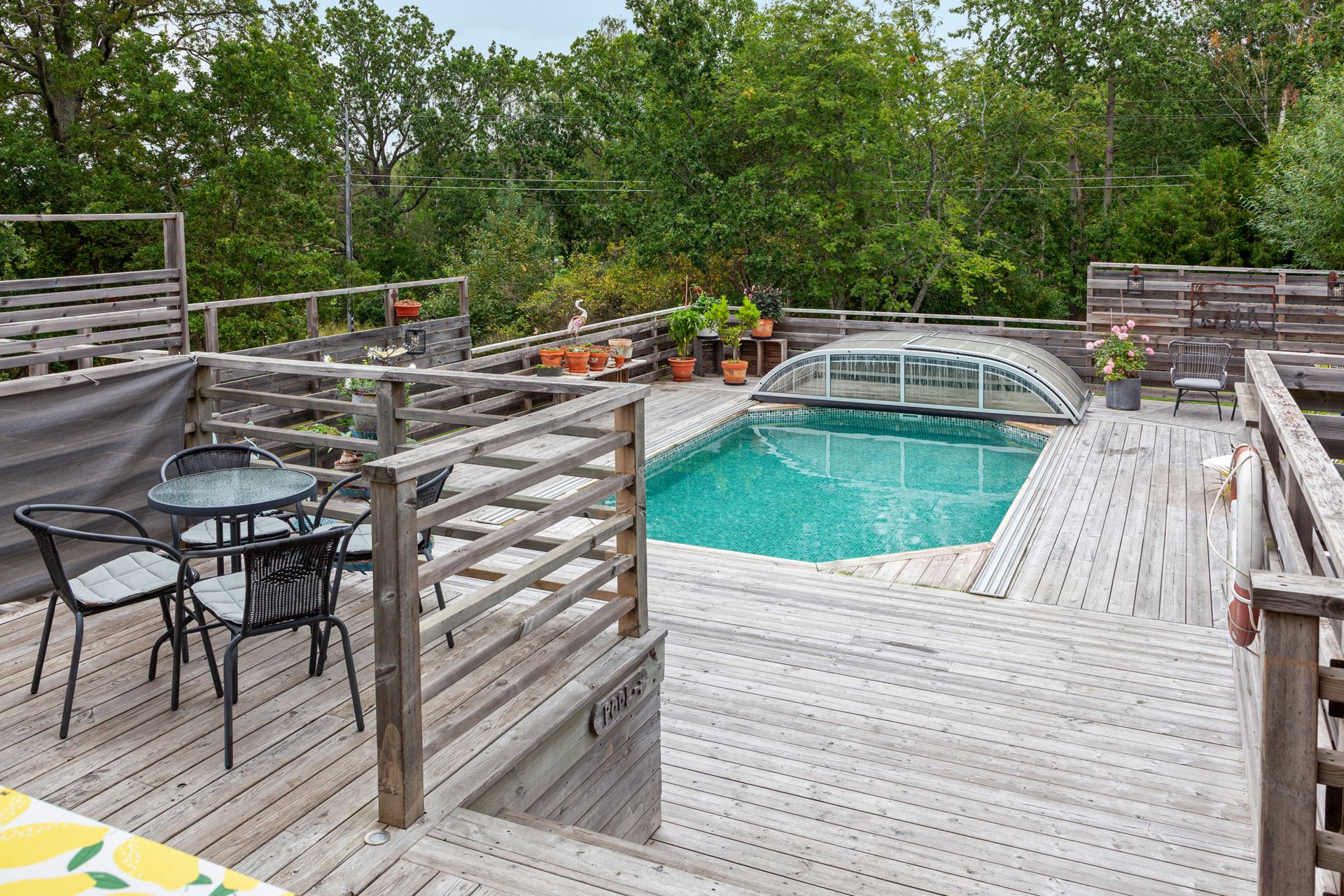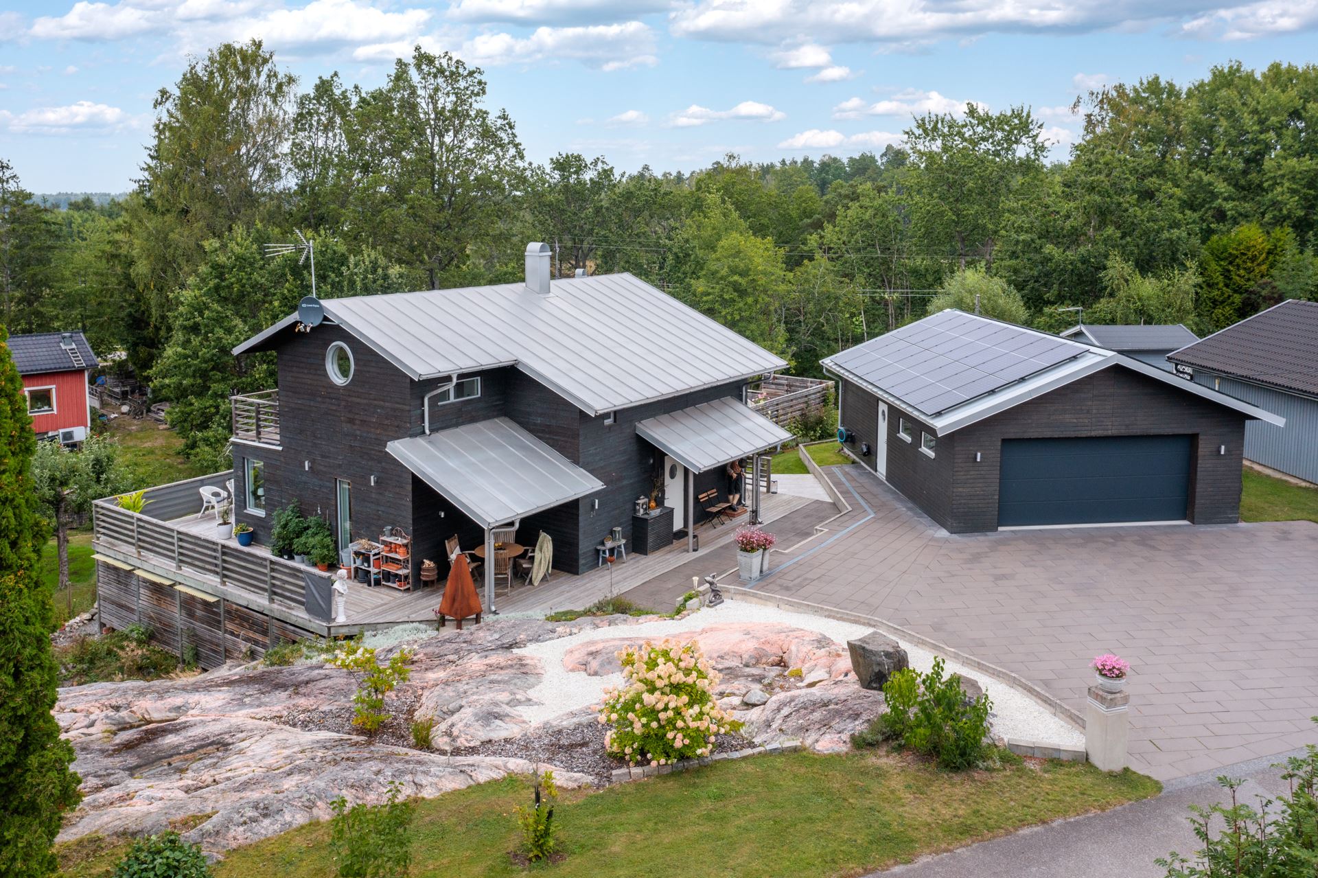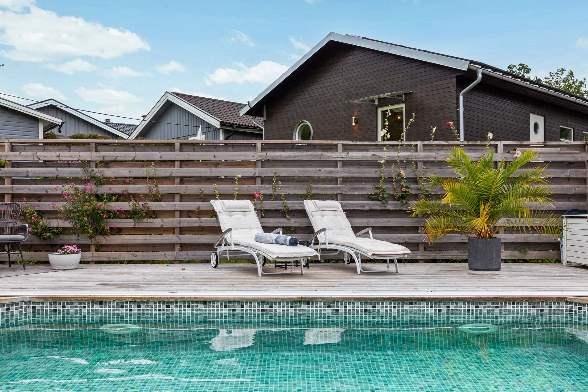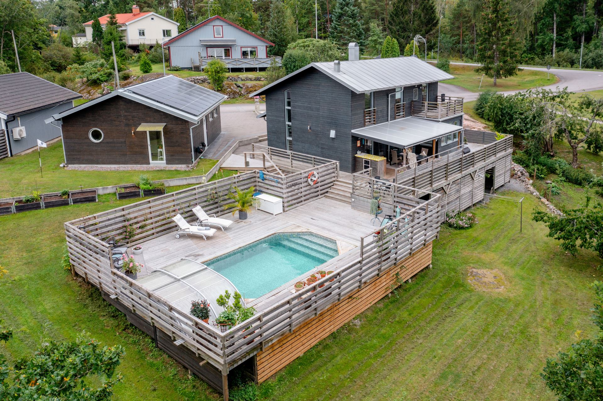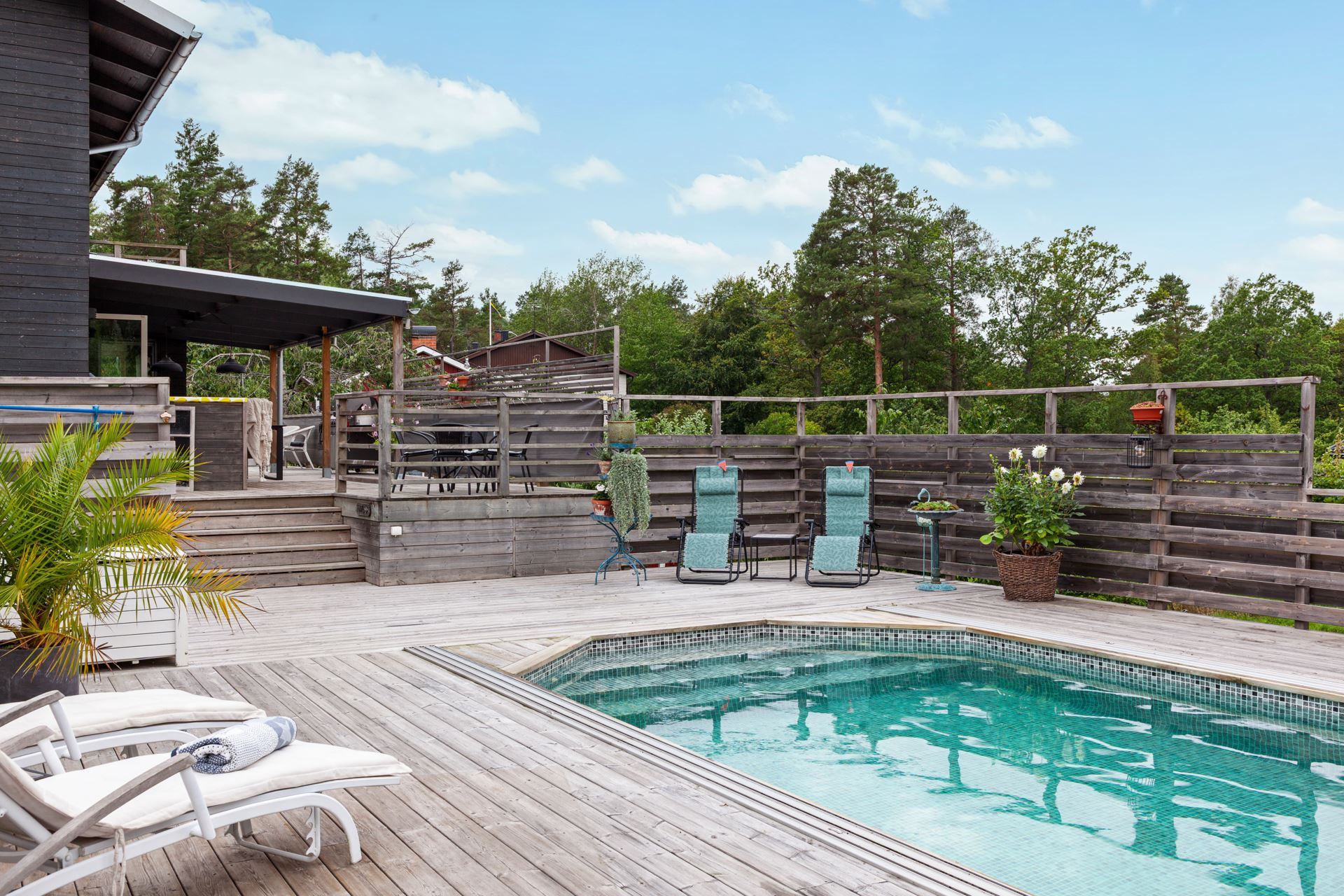 Njut av varma dagar i det separata poolområdet – en plats för avslappning, bad och umgänge. Den stora trädgården är en grön oas med framtaget berg i dagen, blomstrande rabatter och en stor gräsmatta på baksidan – idealisk för lek, spel och sommarfester.