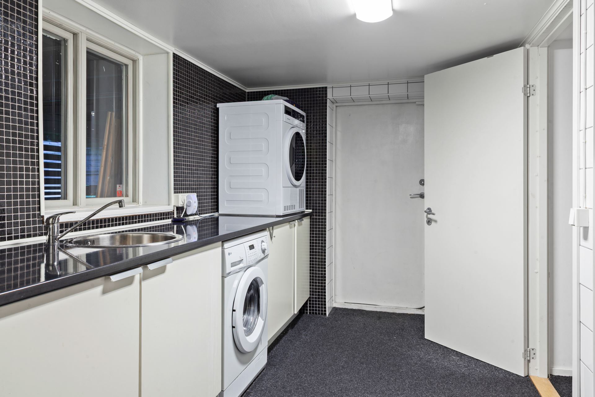 Övrigt: Utgång till trädgård, tvättmaskin LG, torktumlare Grundig, arbetsbänk med tvättho och förvaringsskåp