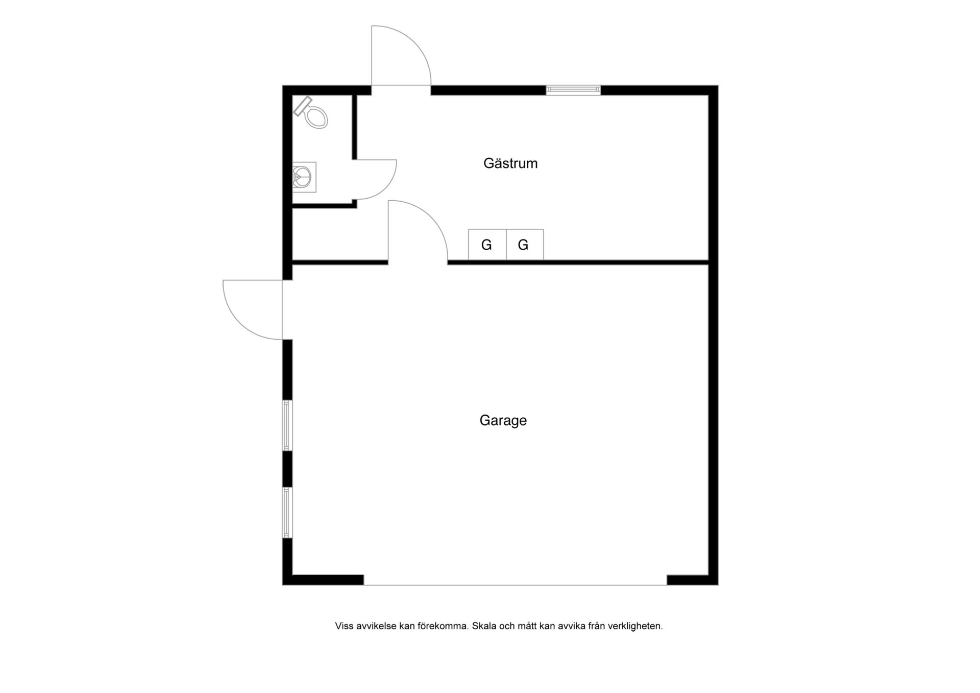 Biytan är garage 41 kvm samt gästrum 20 kvm enligt ny uppmätning