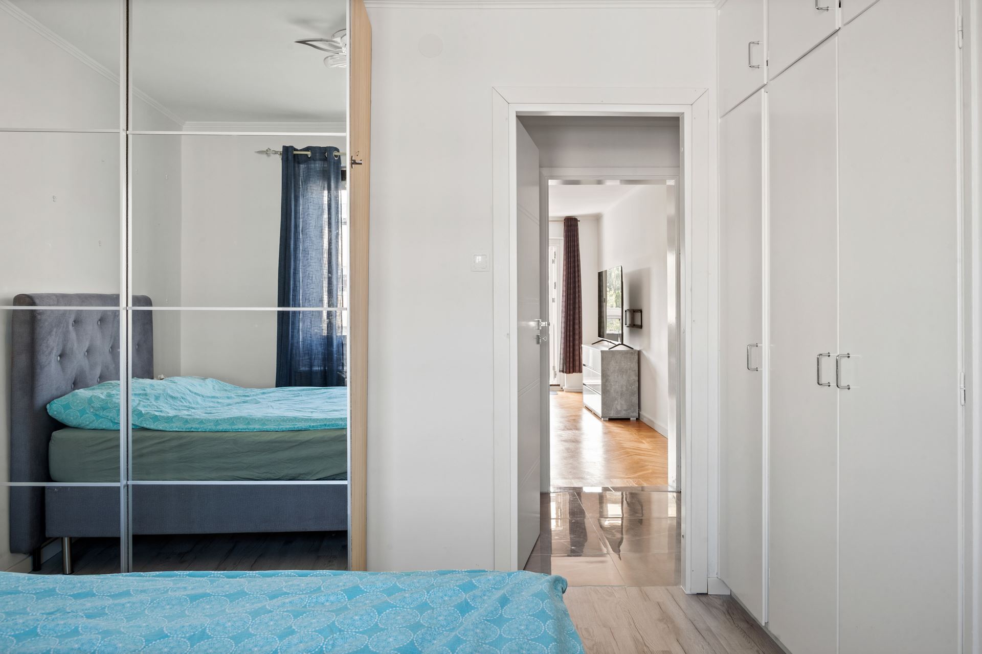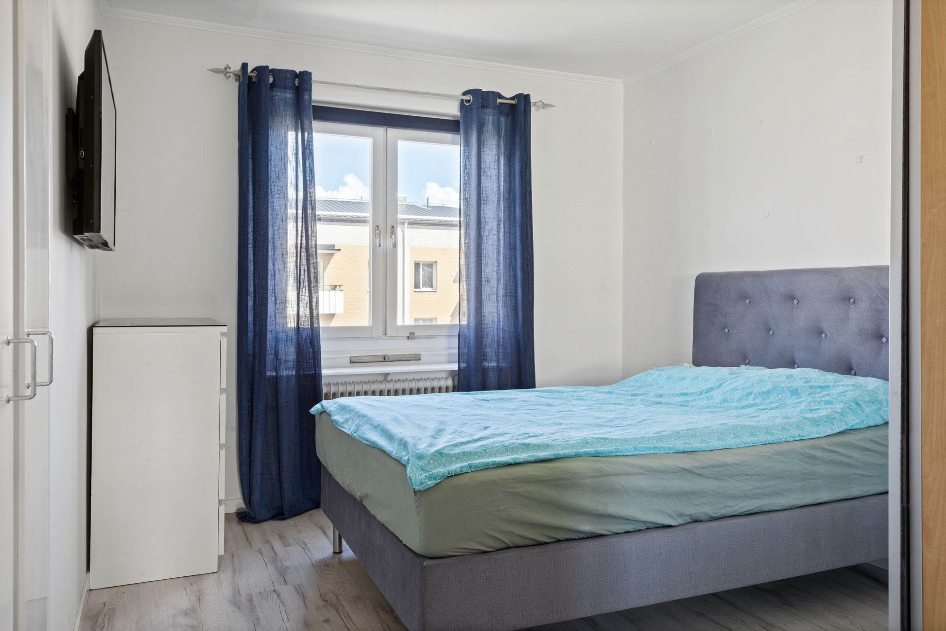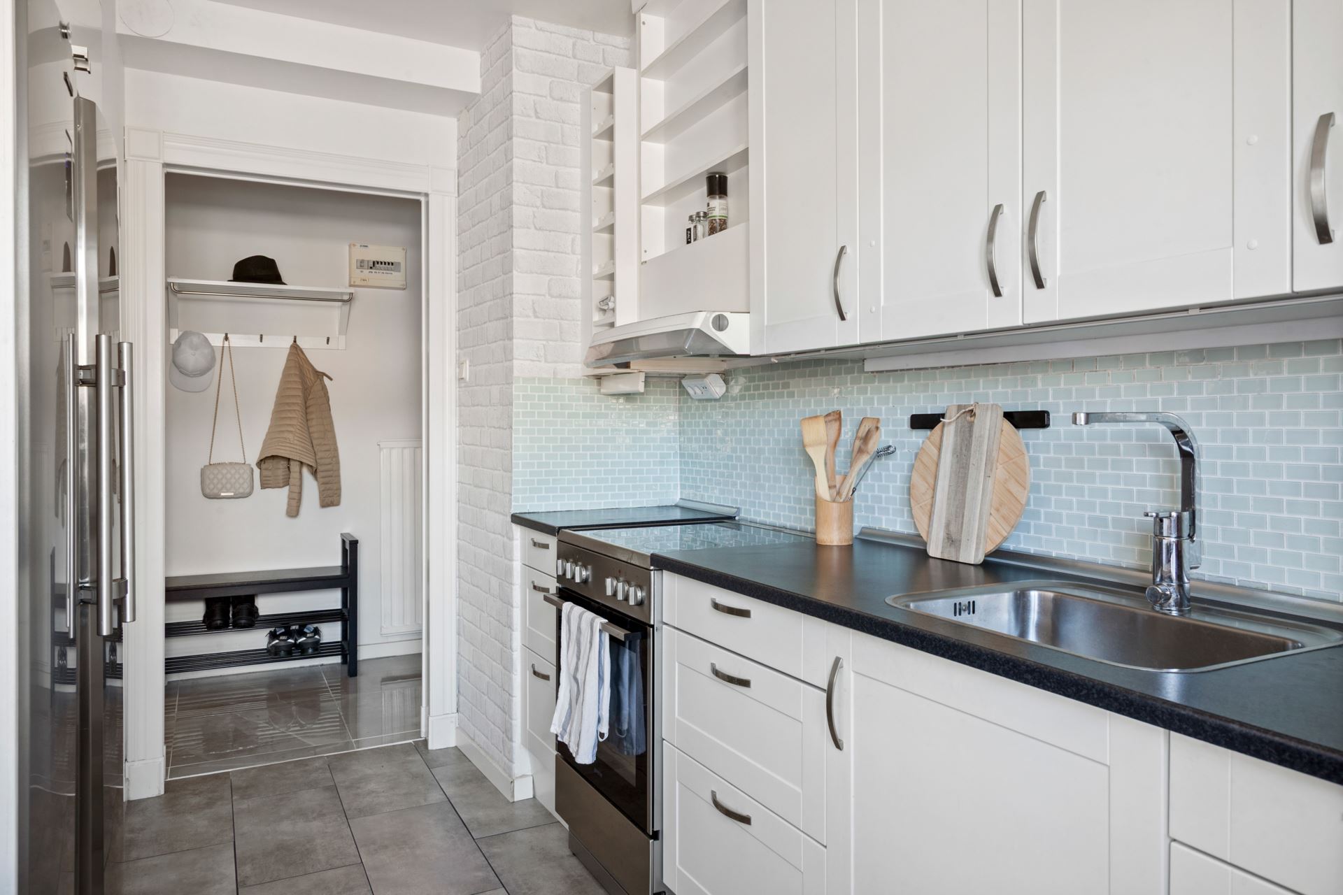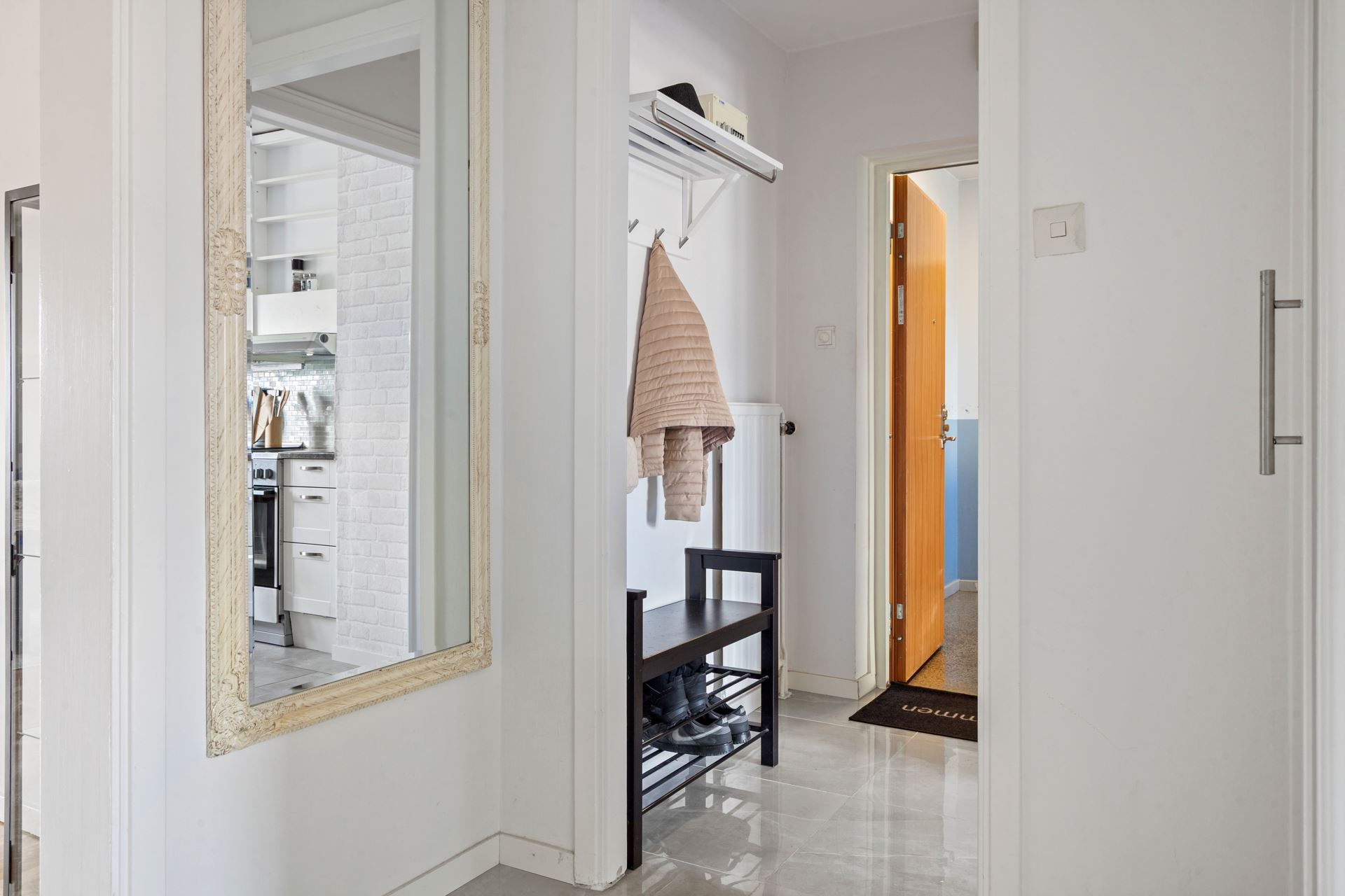 Här möts du av en ljus och hemtrevlig tvårummare som fräschats upp med fina golv och ytskikt. Köket är smart planerat med plats för måltider och umgänge, och i sovrummet finns gott om förvaring med inbyggda garderober samt en ytterligare rymlig garderob med skjutdörrar.