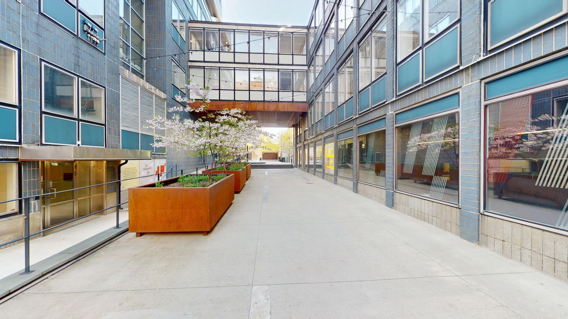 Den totala ytan är 274 kvm och erbjuder idag en öppen planlösning med både ett separat mötesrum och ett kontorsrum. Lokalen är utrustad med WC, pentry och ett tillhörande lunchrum. På entréplan finns en restaurang samt hisshall med direkt tillgång till kontorsvåningen.