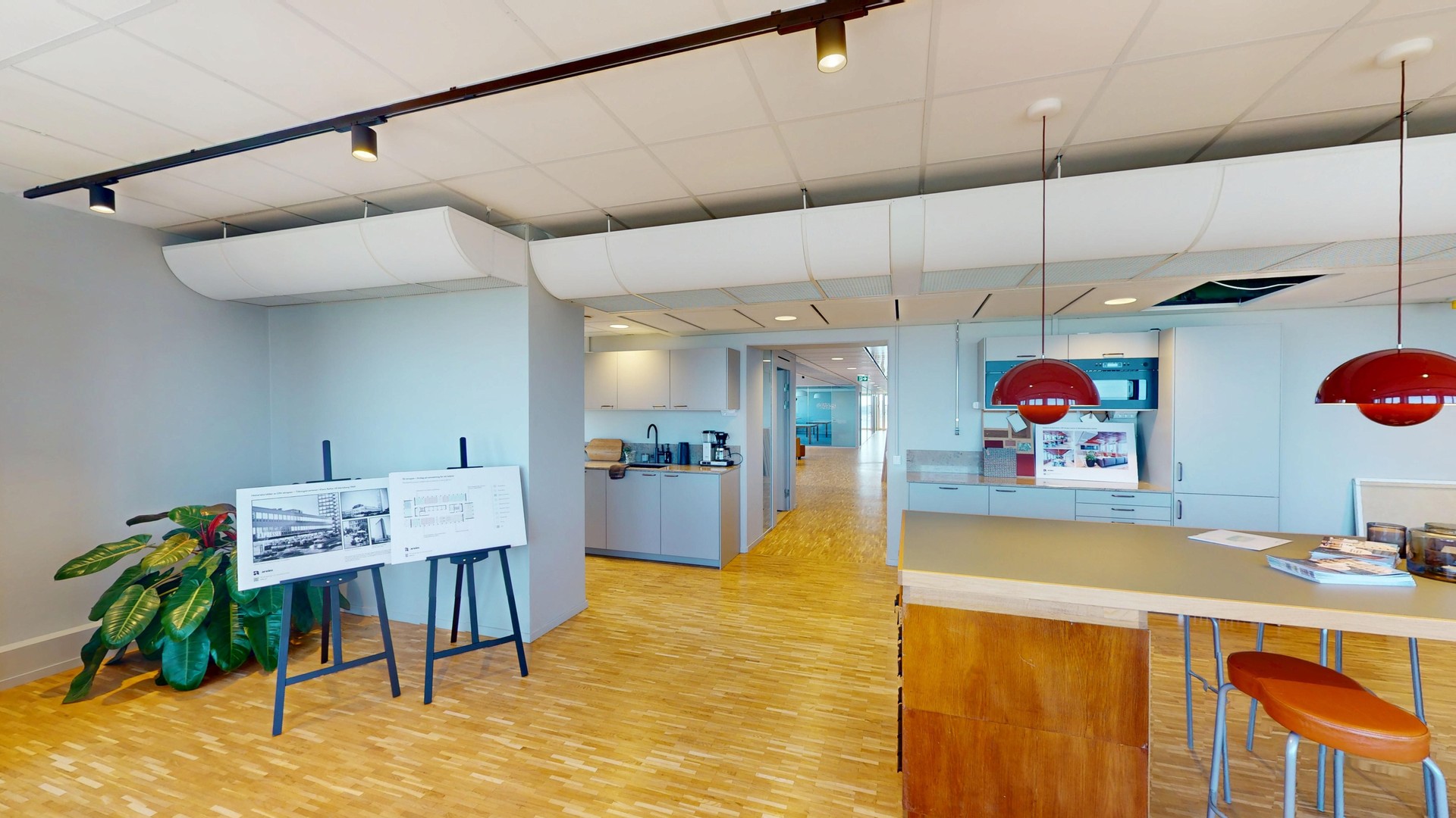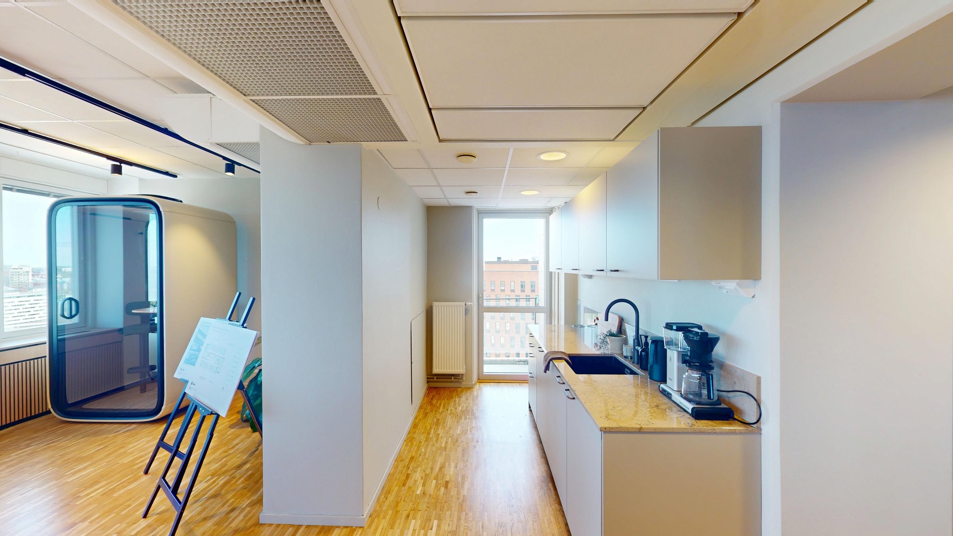 Den totala ytan är 487 kvm och erbjuder idag en öppen planlösning med plats för ett flertal arbetsplatser, separata kontorsrum, mötesrum telefonbås samt en lounge-del. Lokalen är utrustad med WC, pentry, lunchrum och tillhörande balkong. På entréplan finns en restaurang samt hisshall med direkt tillgång till kontorsvåningen.