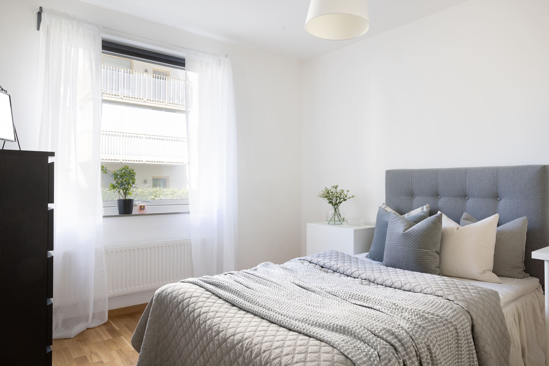 Rakt fram finns ytterligare ett sovrum av god storlek, med fristående garderob för enkel förvaring.
