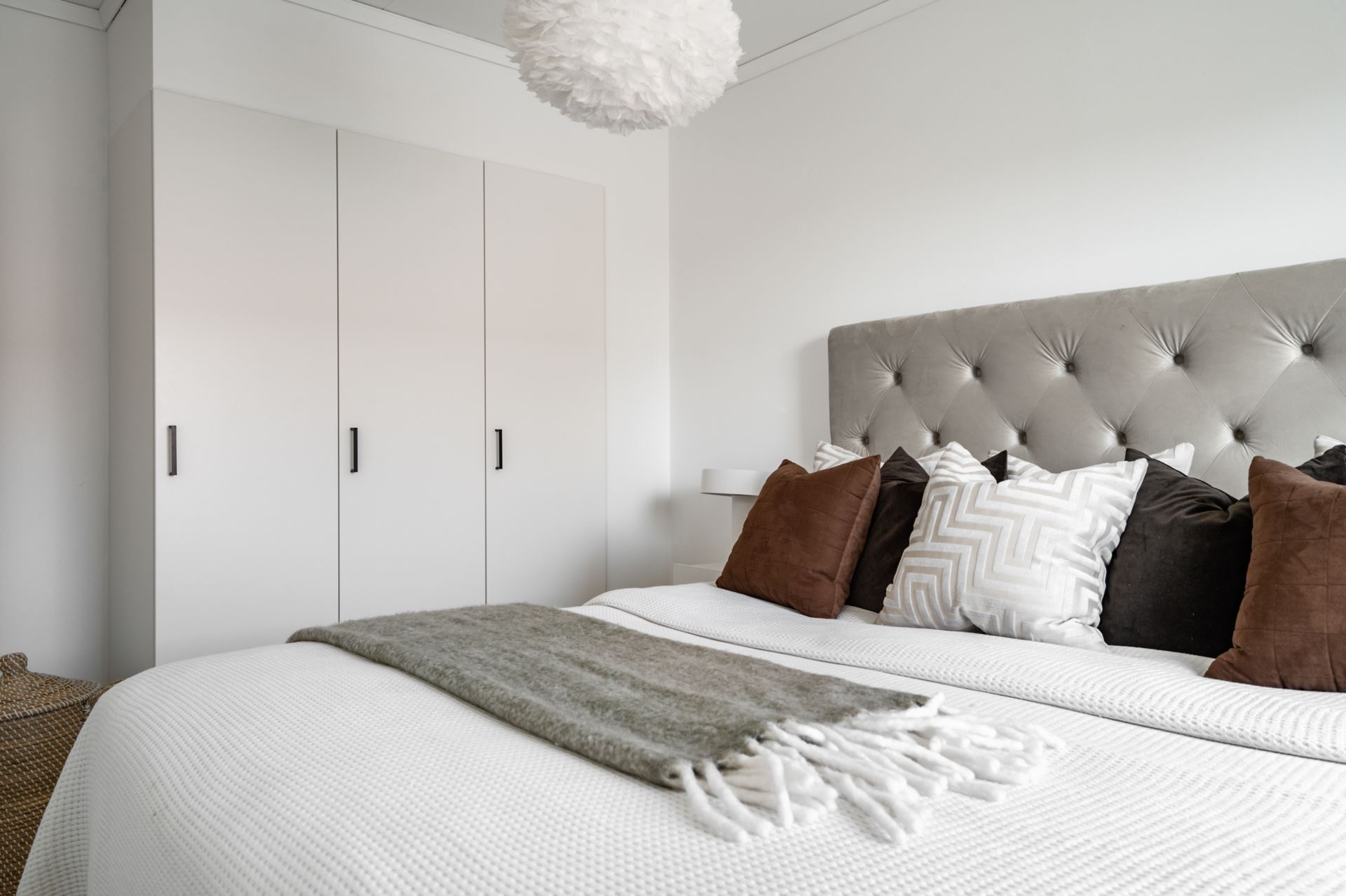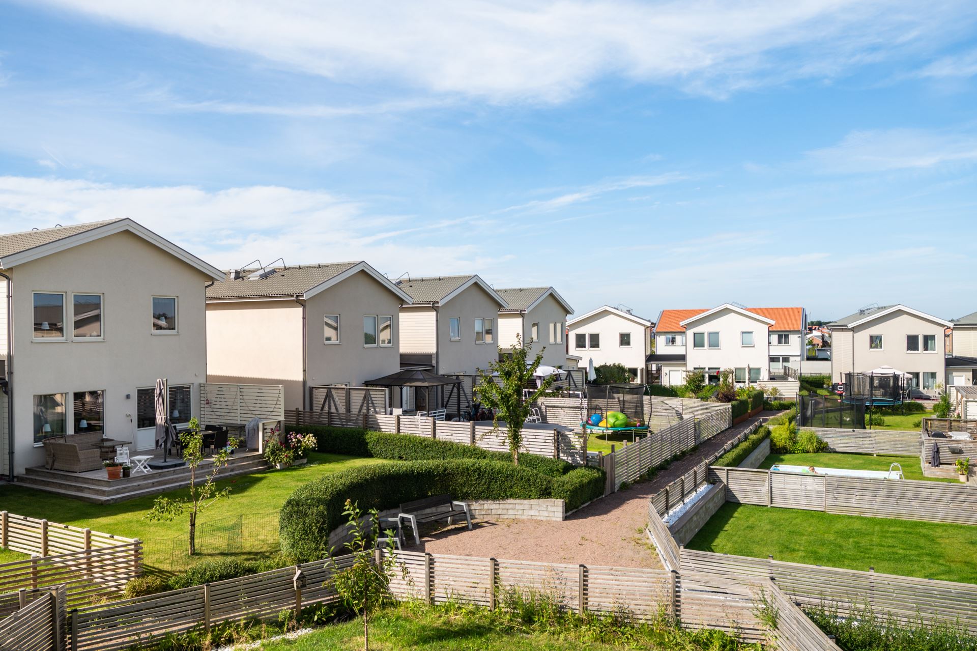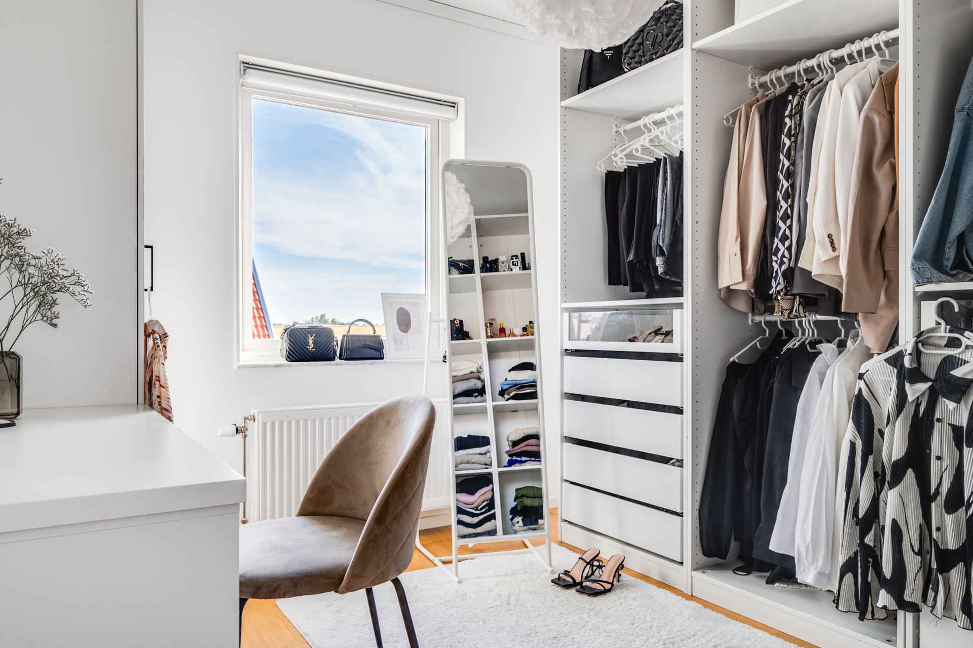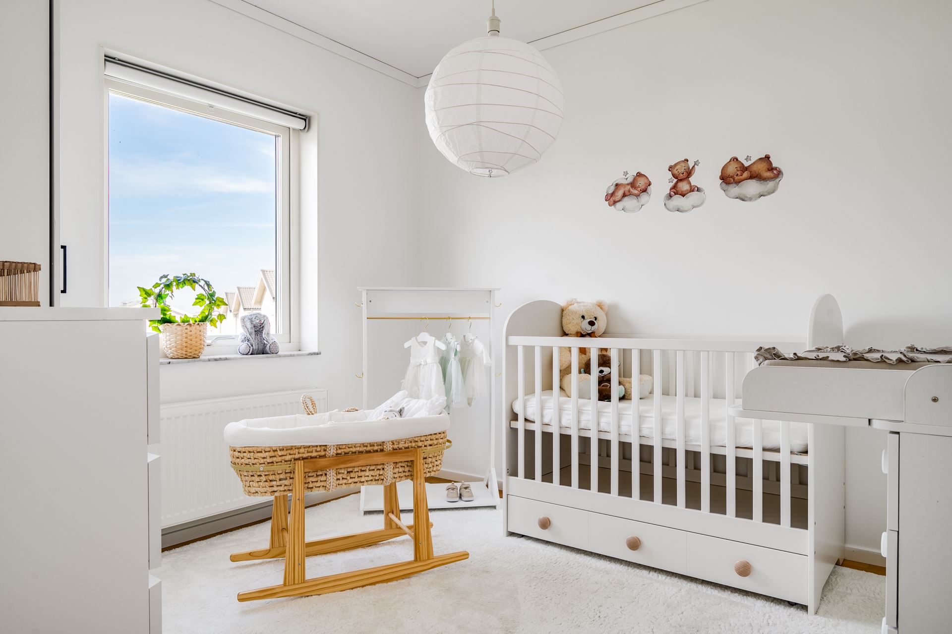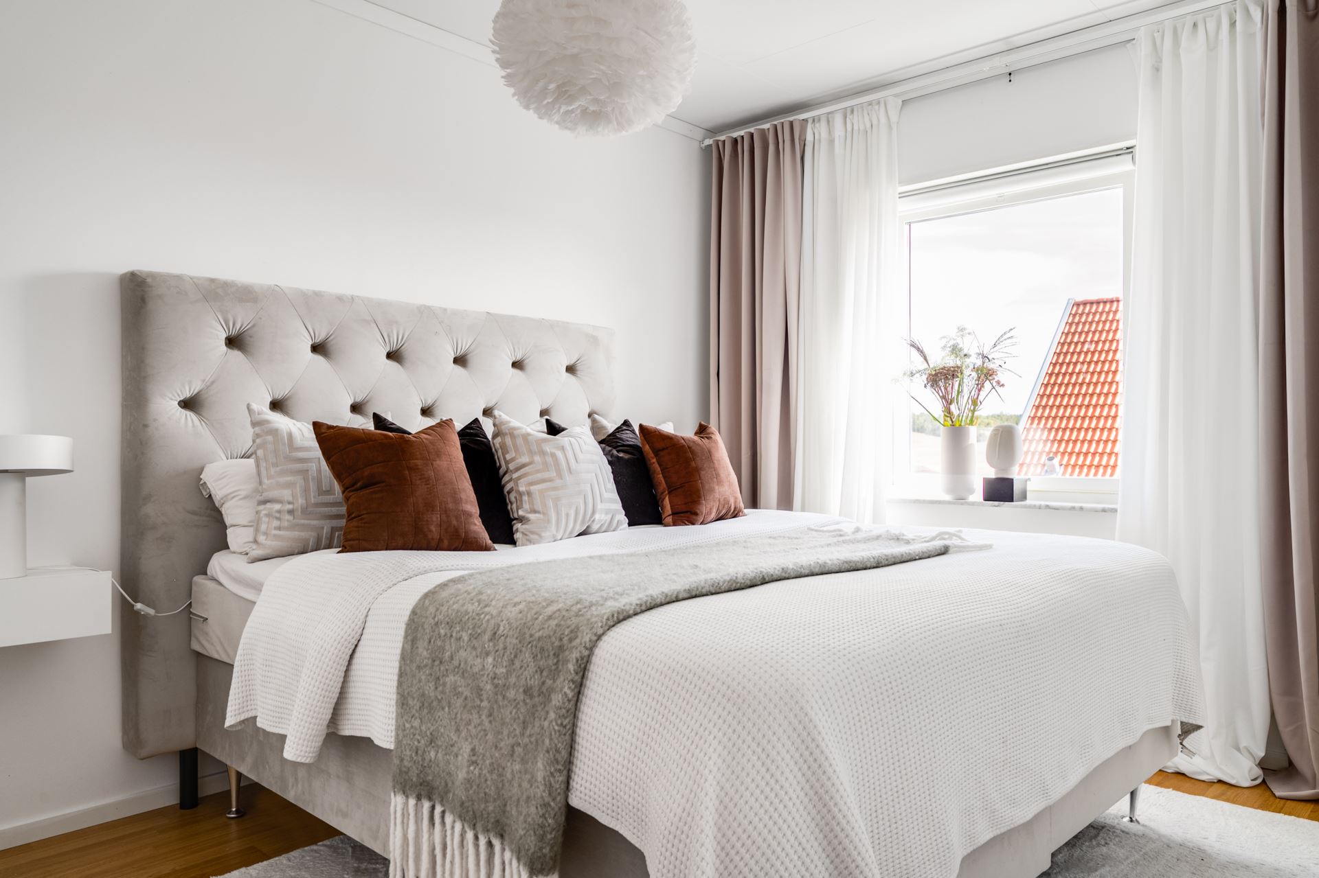 På ovanvåningen erbjuds tre sovrum i bra storlekar. Samtliga sovrum har goda förvaringsmöjligheter i garderob från vedum, och ger utrymme för säng, sängbord och möblering efter önskemål. Här finns ett rymligt master bedroom som ger rikligt med ljusinsläpp som och två av sovrummen är lite mindre i storlek och passar perfekt som barnrum eller varför inte kontorsrum.