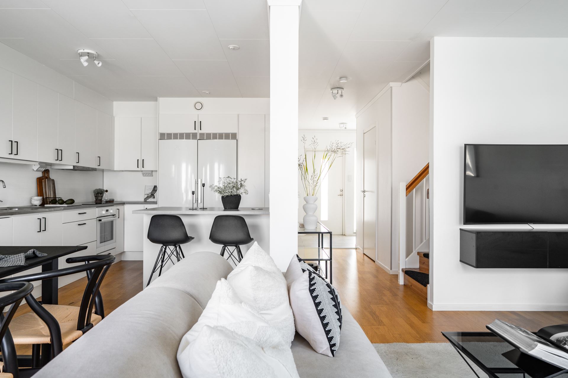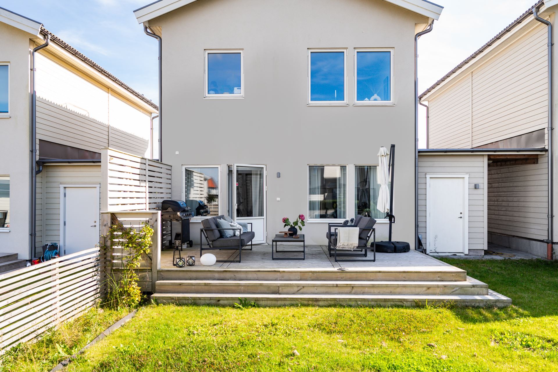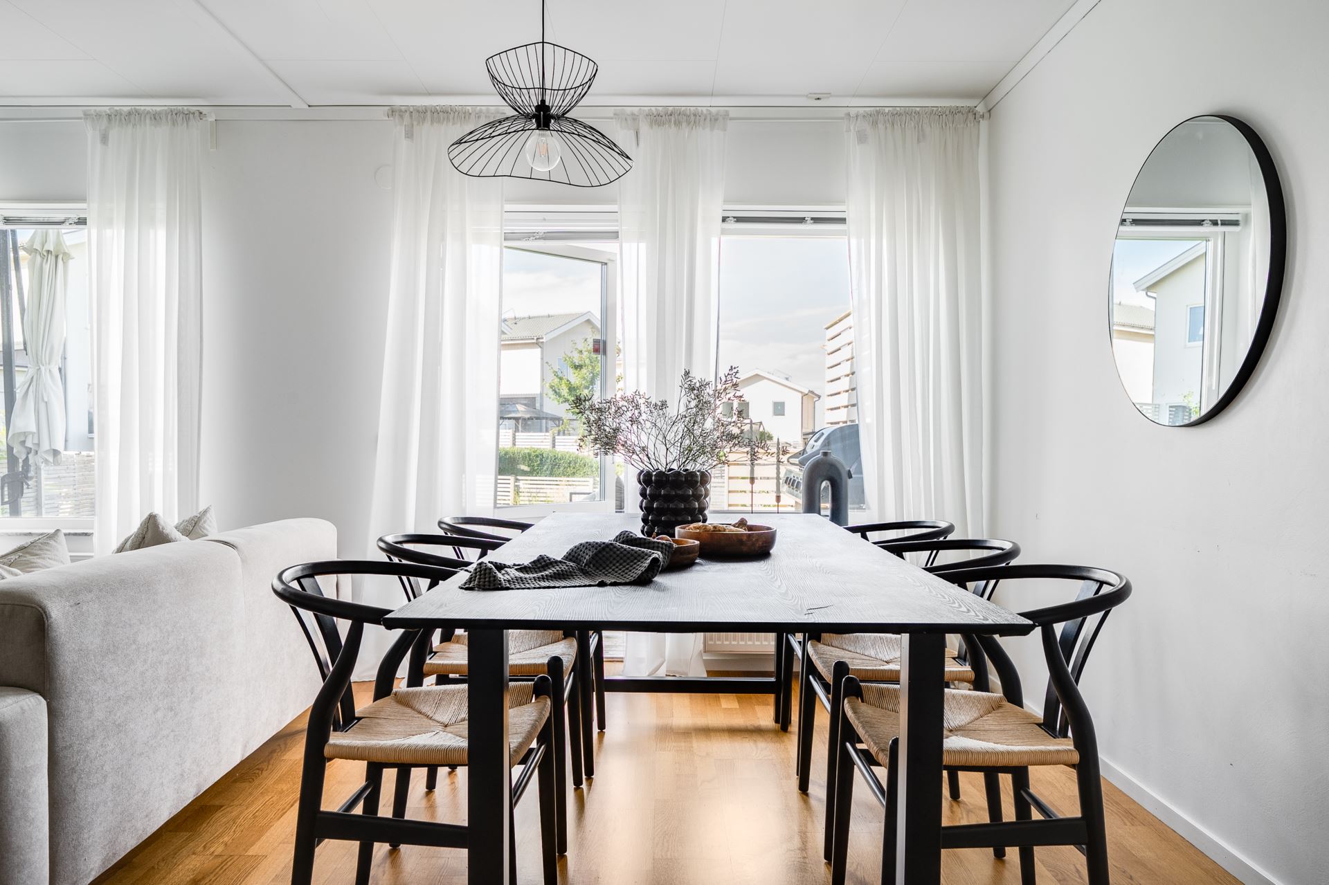 Nu väntar detta bostadsrättshus i två välplanerade plan på nya ägare att charma. Huset, som är byggt 2019, är beläget i barnvänligt område med alla bekvämligheter man kan önska. Husets första våning bjuder på en trevlig, social planlösning mellan kök och vardagsrum, vilket skapar plats för umgänge och samvaro med familj och vänner. Vidare genom vardagsrummet tar vi oss ut till den trälagda uteplatsen som ger plats till både loungegrupp och matplats.