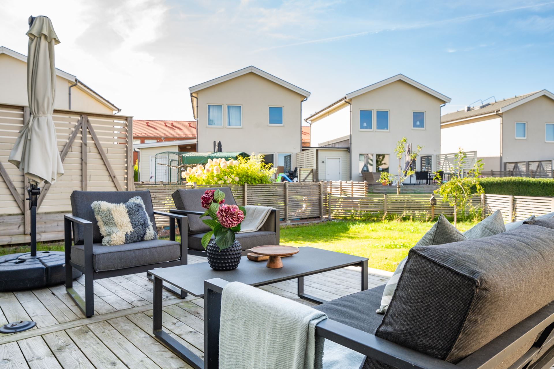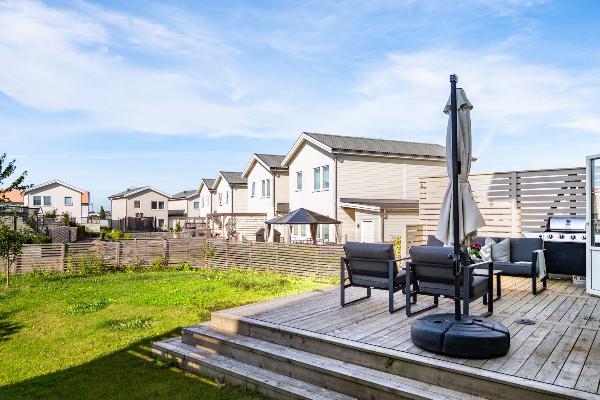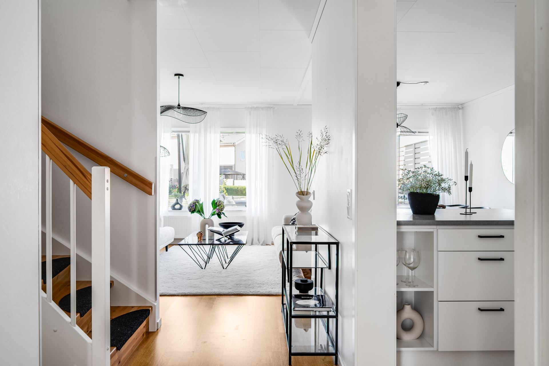 Nu väntar detta bostadsrättshus i två välplanerade plan på nya ägare att charma. Huset, som är byggt 2019, är beläget i barnvänligt område med alla bekvämligheter man kan önska. Husets första våning bjuder på en trevlig, social planlösning mellan kök och vardagsrum, vilket skapar plats för umgänge och samvaro med familj och vänner. Vidare genom vardagsrummet tar vi oss ut till den trälagda uteplatsen som ger plats till både loungegrupp och matplats.
