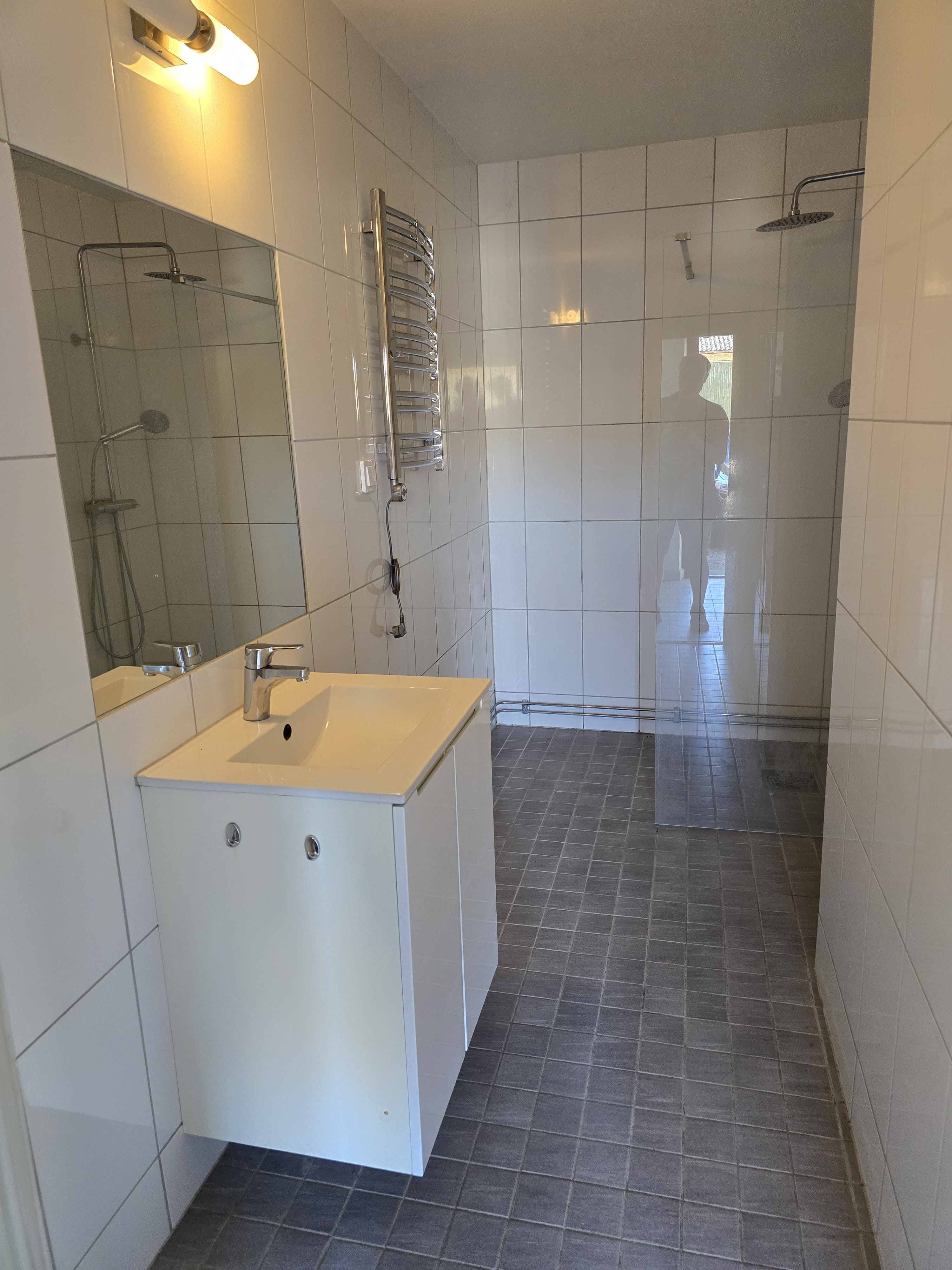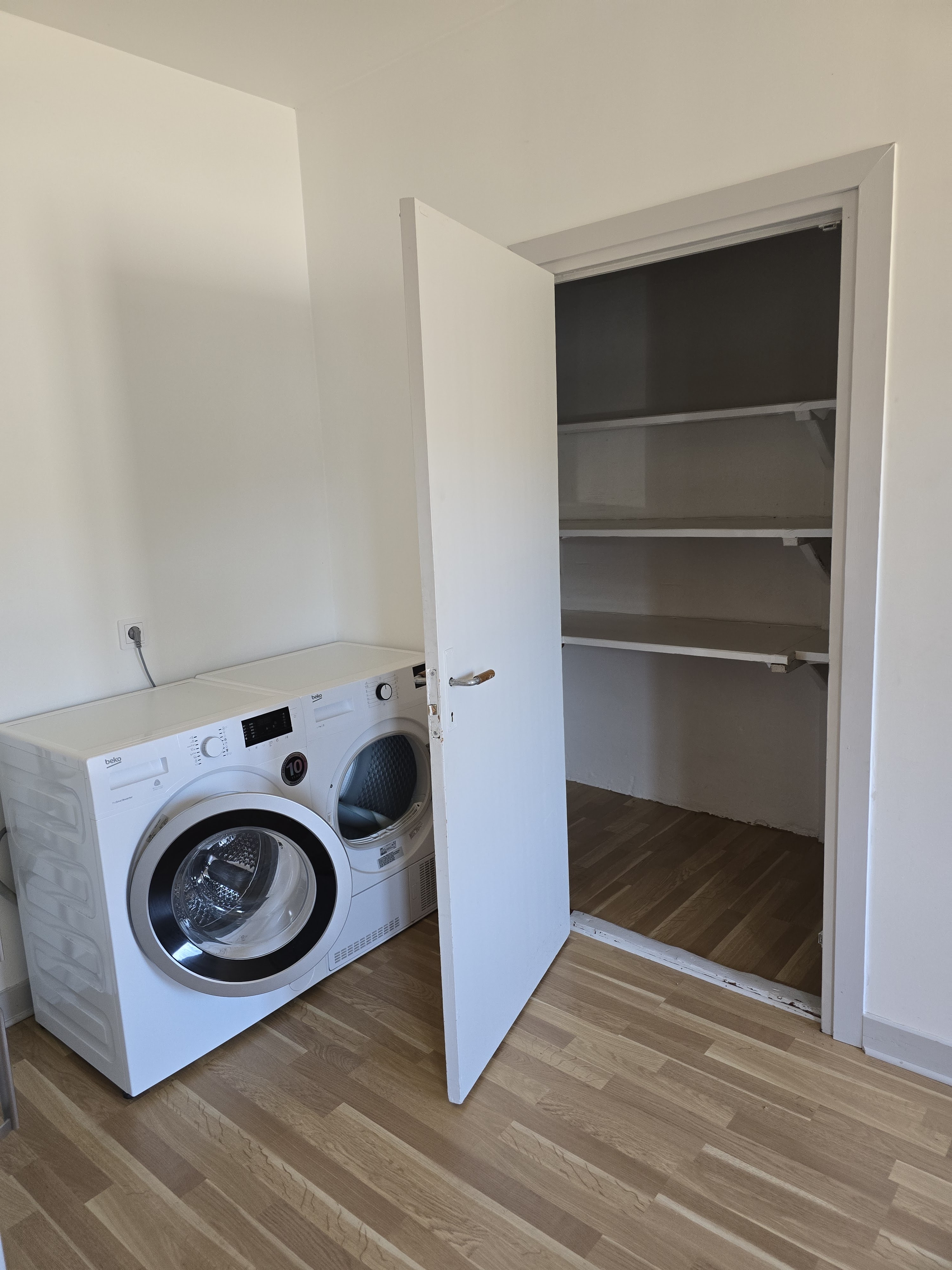 Lägenheten är ljus, tämligen nyrenoverad och har egen uteplats. Den är utrustad med tvättmaskin, torktumlare, spis, kylskåp och bredband. Uthyrs omöblerad och finns tillgänglig för omgående inflytt.