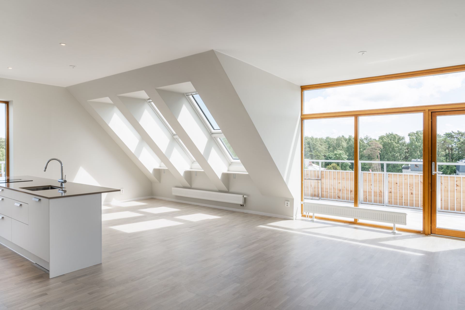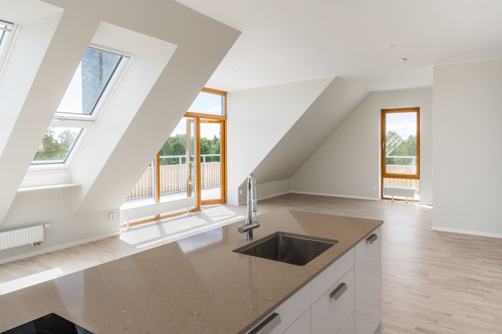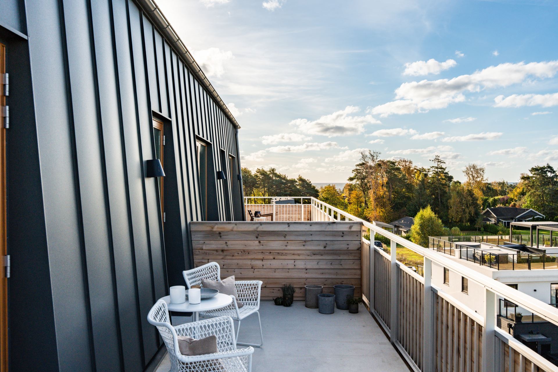 - Penthouseplanet inrymmer fyra unikt designade takvåningar med nästan 3 meters takhöjd och balkonger som löper runt hela lägenheten, vilket skapar en fantastisk utemiljö med oslagbar utsikt.