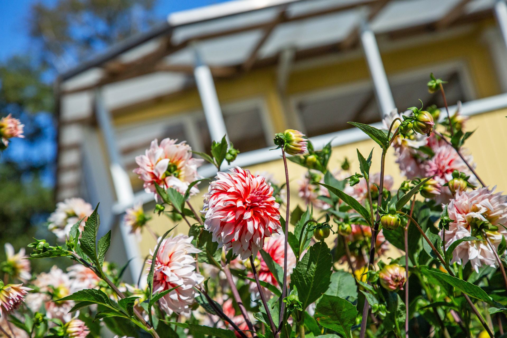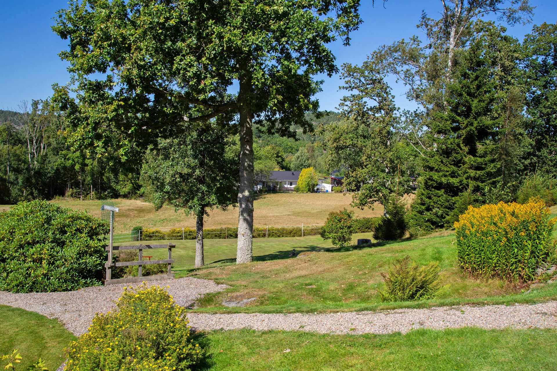 Väl omhändertagen tomt med stort grönområde och odlingsytor.