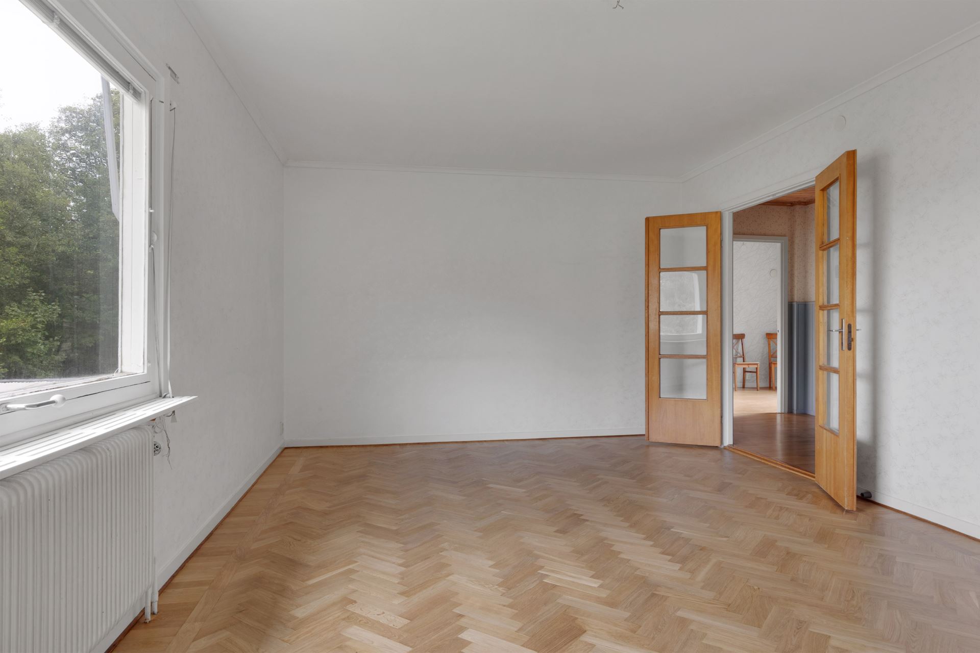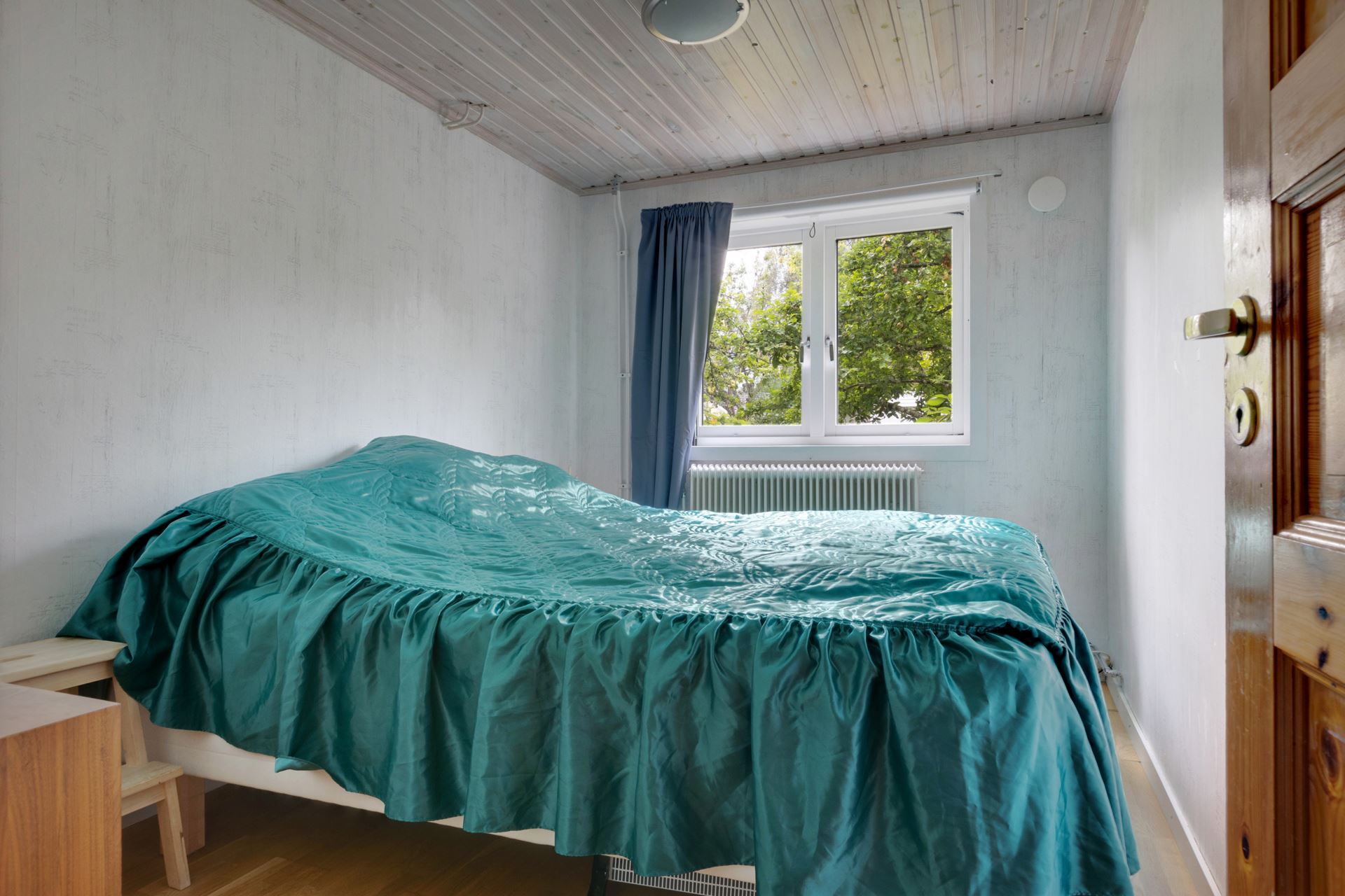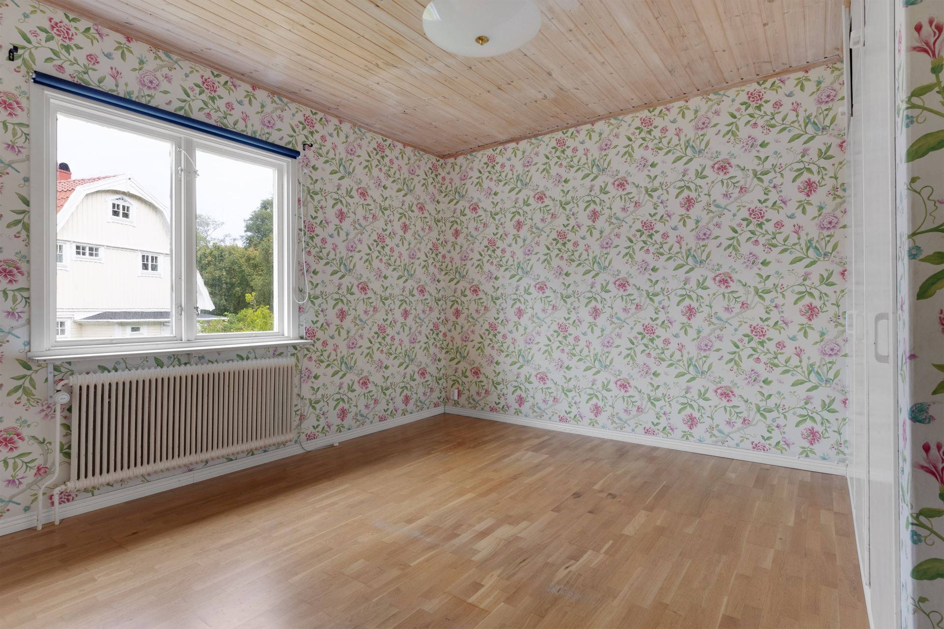 Bredvid vardagsrummet ligger bostadens andra sovrum. Med en blommig tapet samt parkettgolv så skapar det en lättsam atmosfär i rummet. Här finns även garderober längst ena sidan av väggen. Rummet kan omvandlas utefter behov såsom ett kontor, barnrum eller annan sällskapsyta.