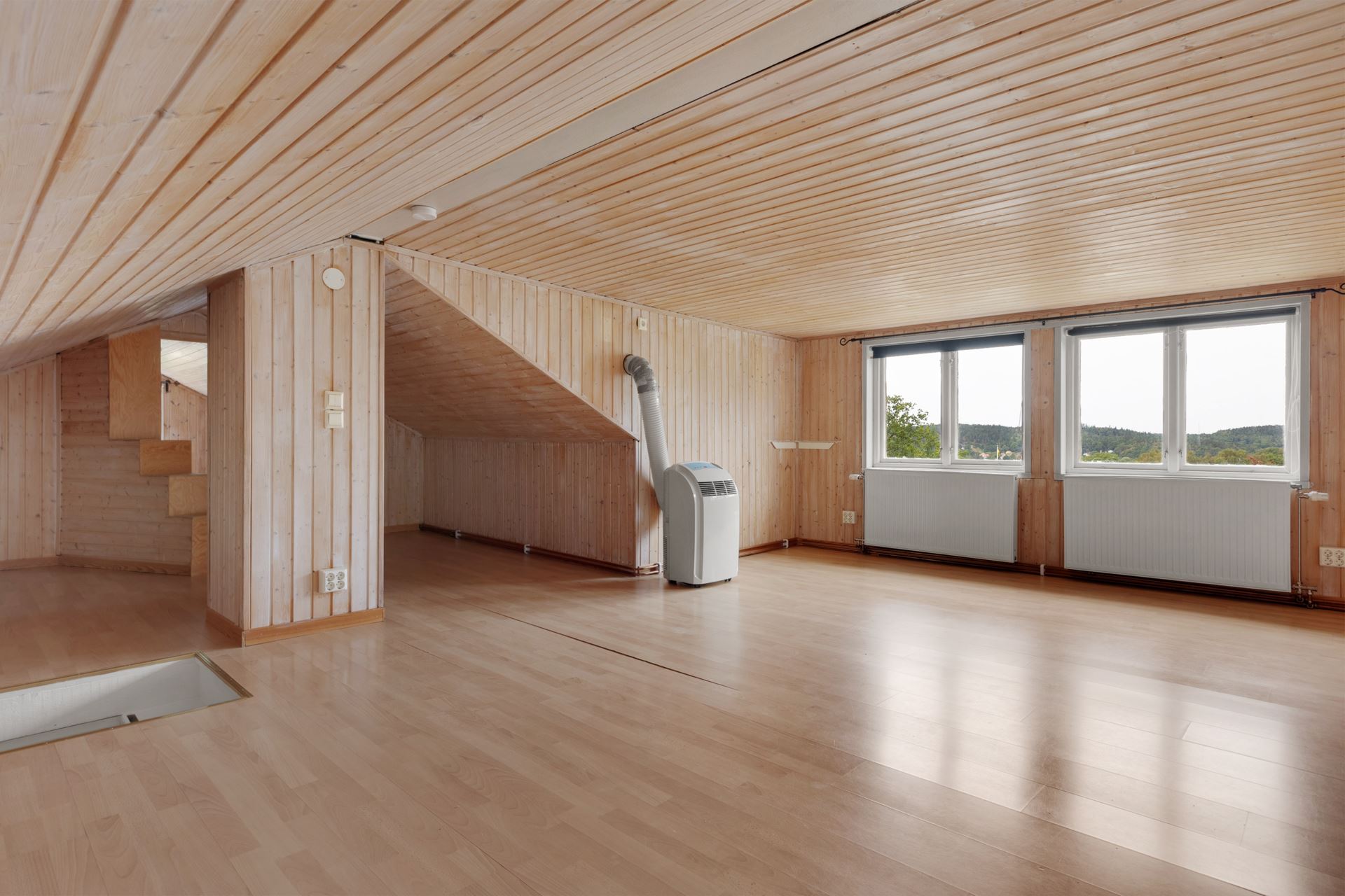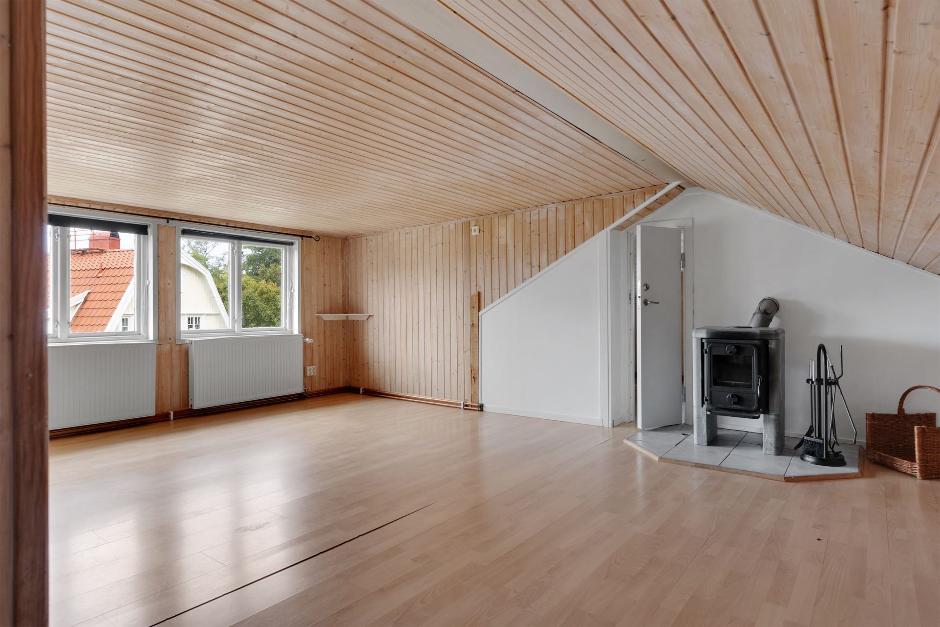 Vinden är inredd och räknas inte med i boytan då den har en takhöjd under 190 cm, däremot är utrymmet uppmätt till ca 66 kvadratmeter.