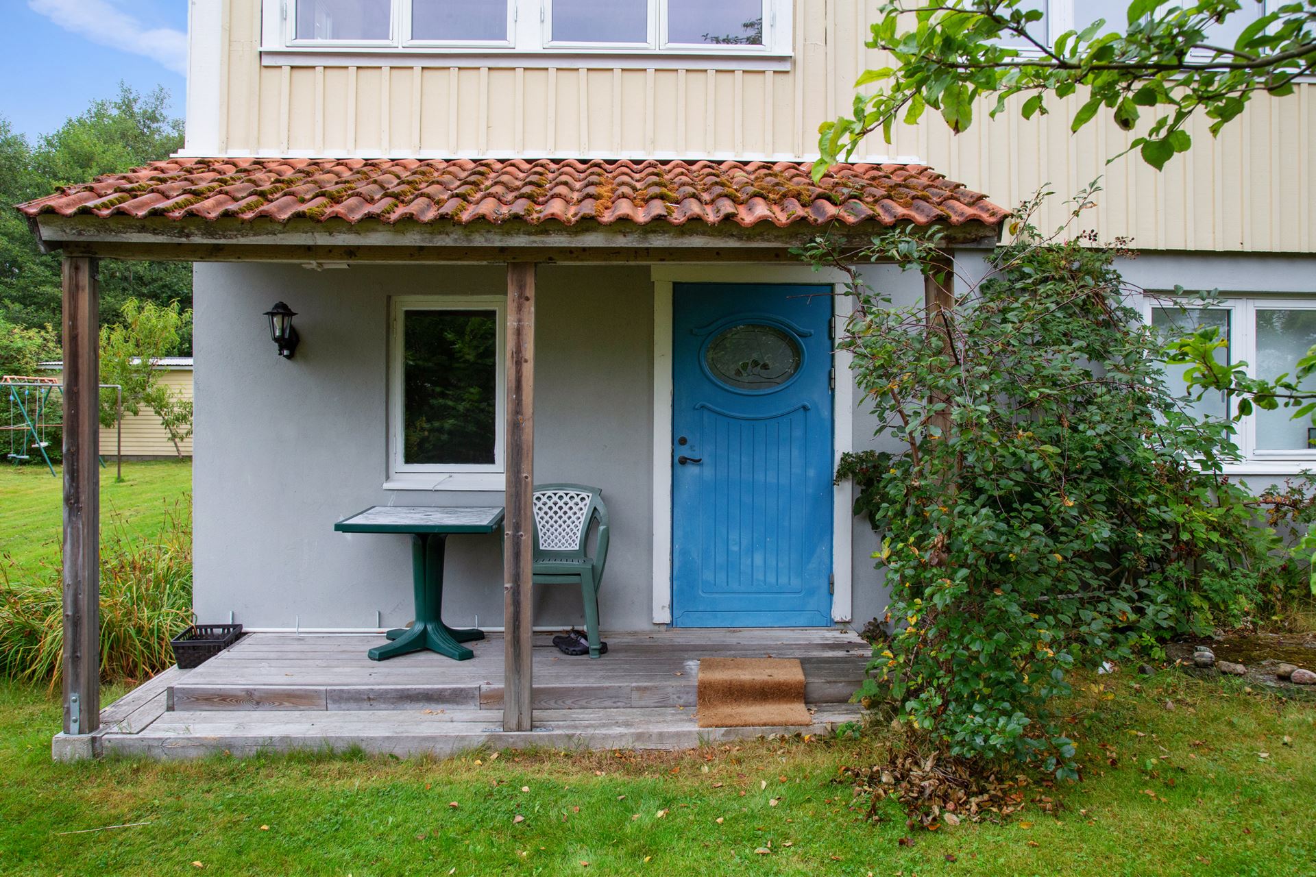 Lägenheten är belägen i suterrängplanet och har en egen ingång. Det finns även en dörr från källaren till lägenheten men den är i dagsläget igensatt så att det inte går att öppna från något av hållen. I lägenheten så finns det ett vardagsrum, kök och sovrum samt ett enklare badrum. Perfekt att ha en hyresgäst som det finns idag öppna upp dörren mot källaren och inkludera i resten av huset.