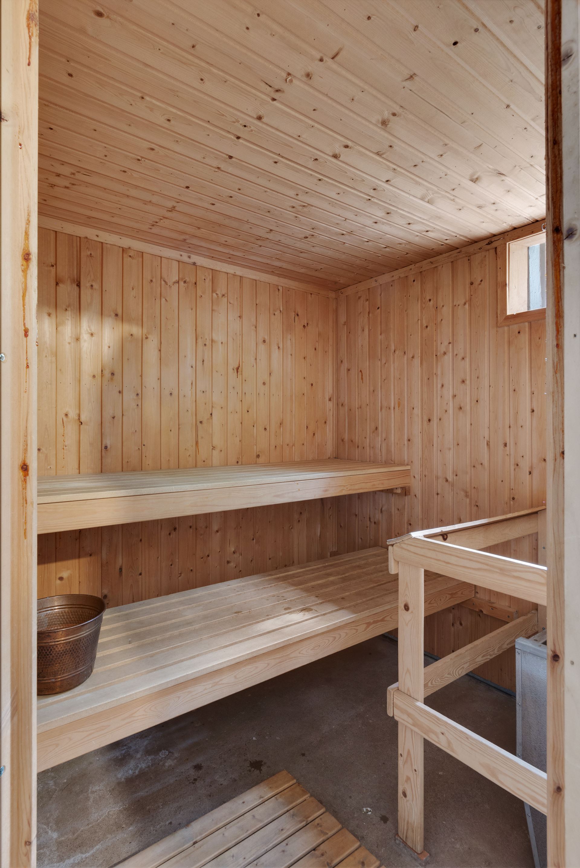 I källaren finns en mindre hall som leder till garaget, lägenheten samt tvättstugan och basturummet. Tvättstugan är både rymlig och praktisk, med goda arbetsytor och förvaring. Här finns tvättmaskin och plats för en torktumlare bredvid, en lång arbetsbänk som gör det enkelt att vika och sortera tvätt. Ett fönster släpper in dagsljus och skapar en trivsam miljö. I anslutning till tvättstugan hittar du husets bastu samt ett spa-bad från Westerberg. Det blir en avkopplande oas för både kropp och sinne. En extra lyx i vardagen.